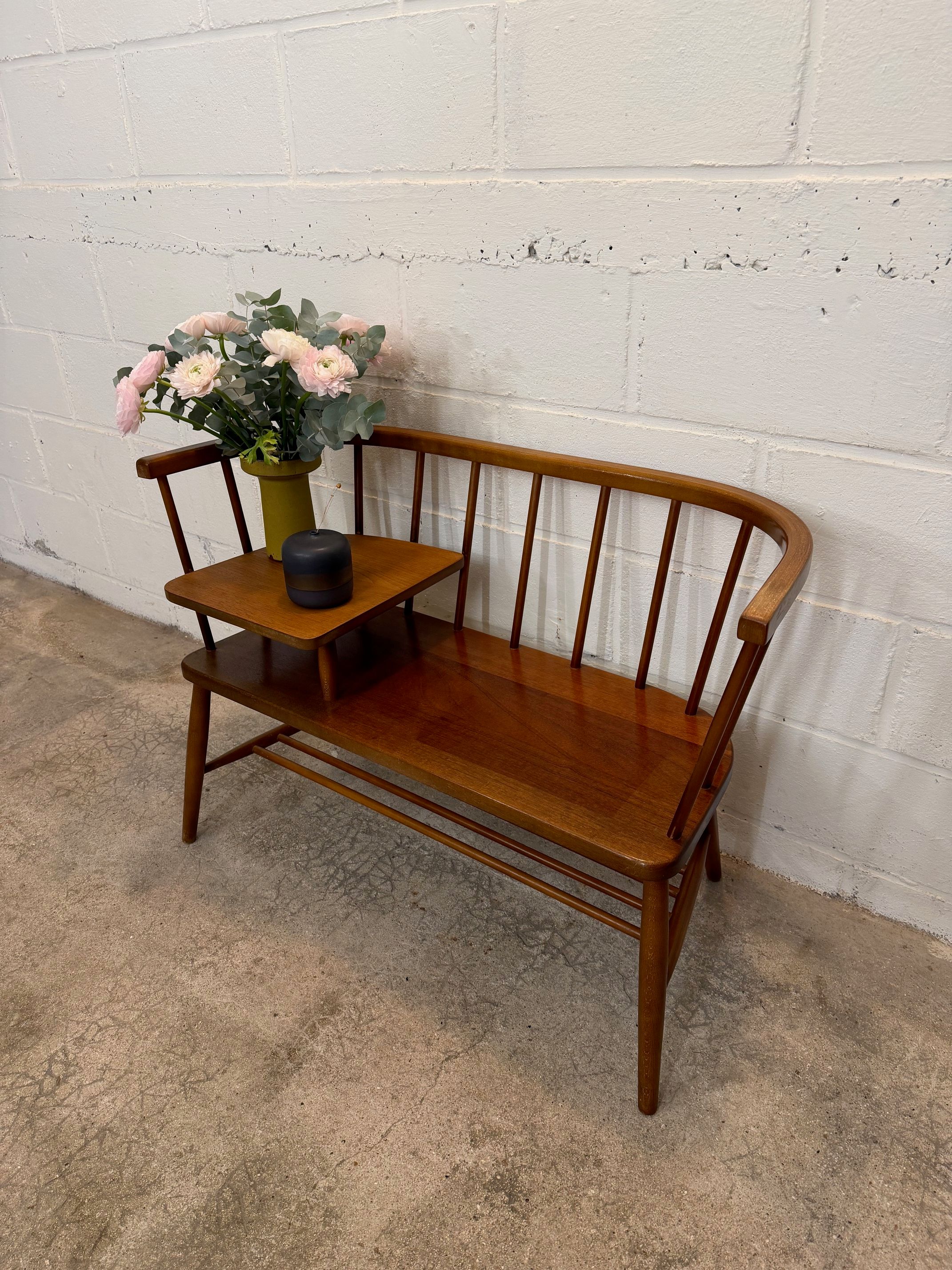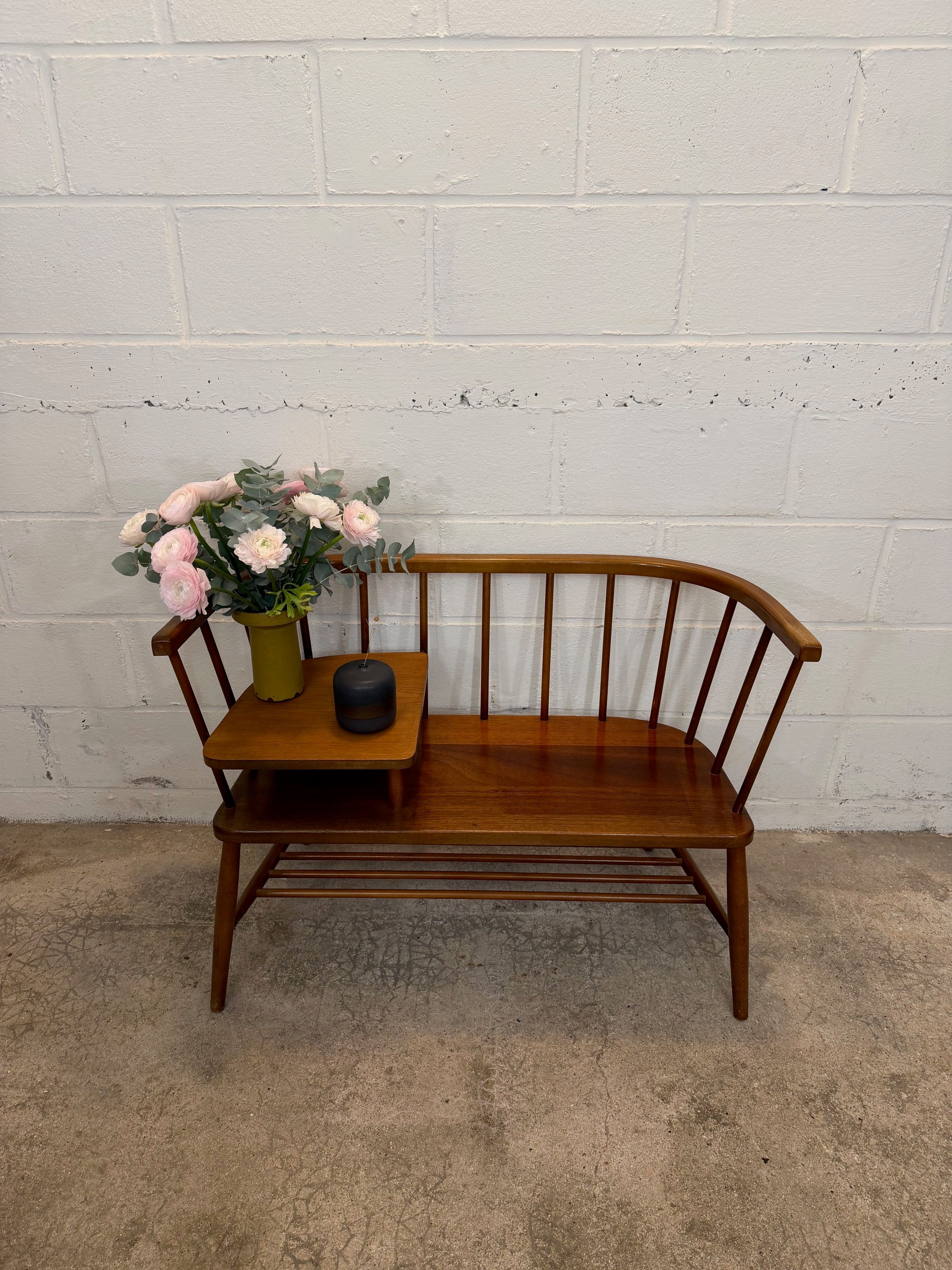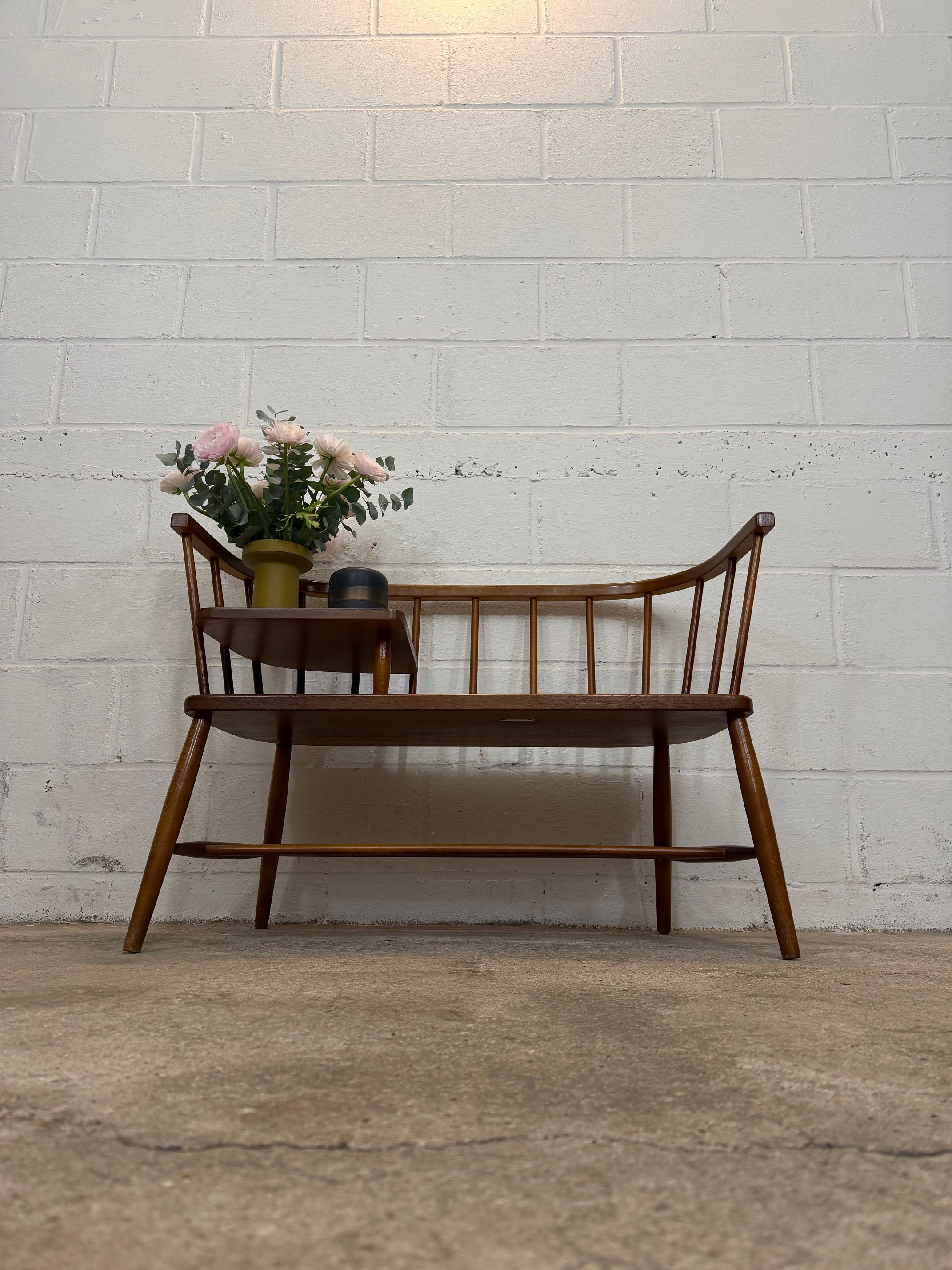 Un banc d'entrée, destiné au rangement du téléphone dans les années 60.