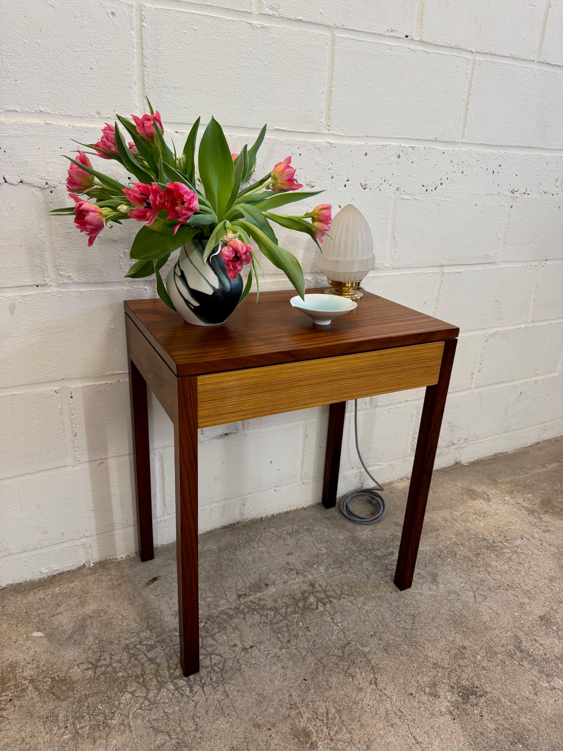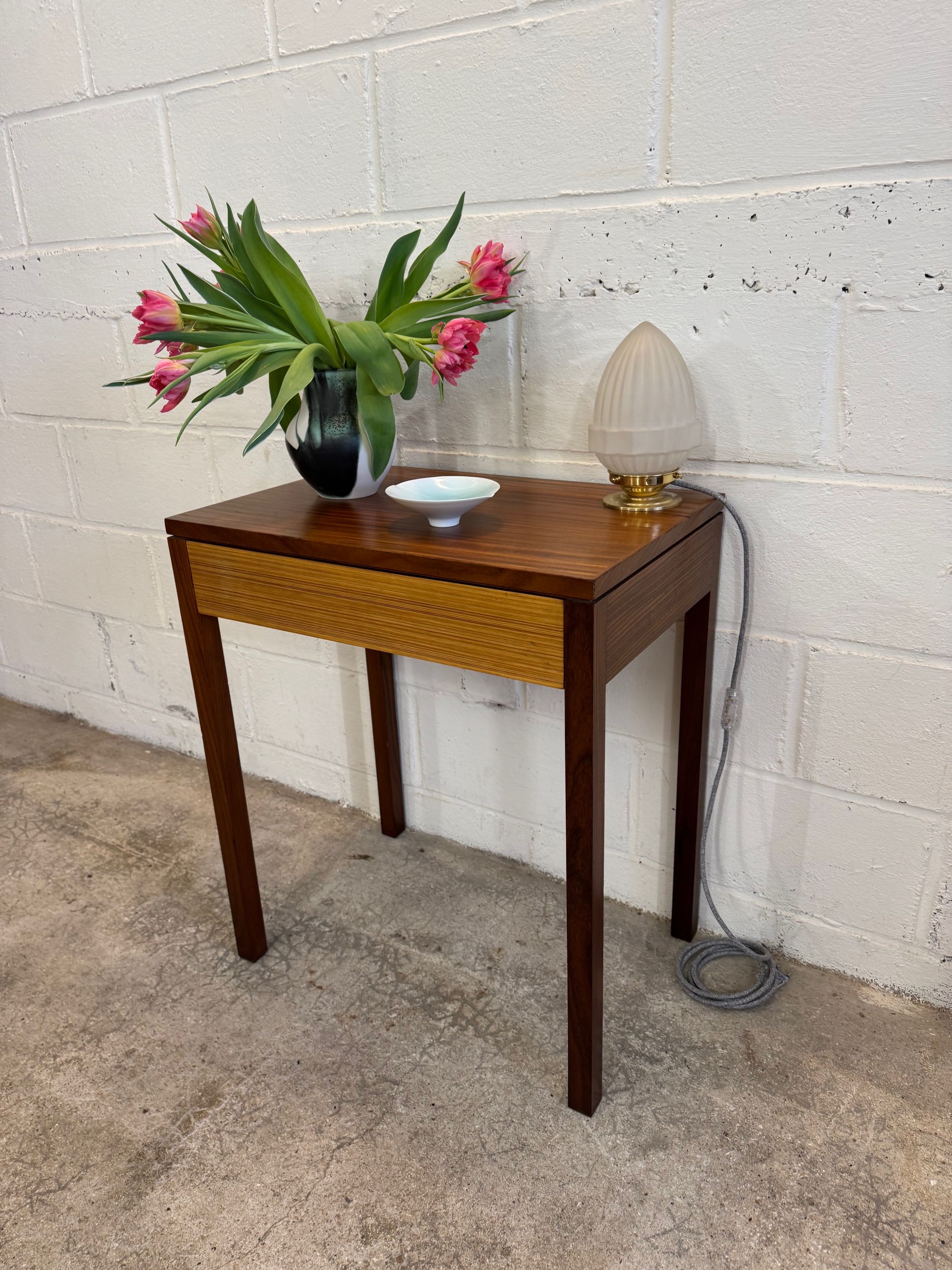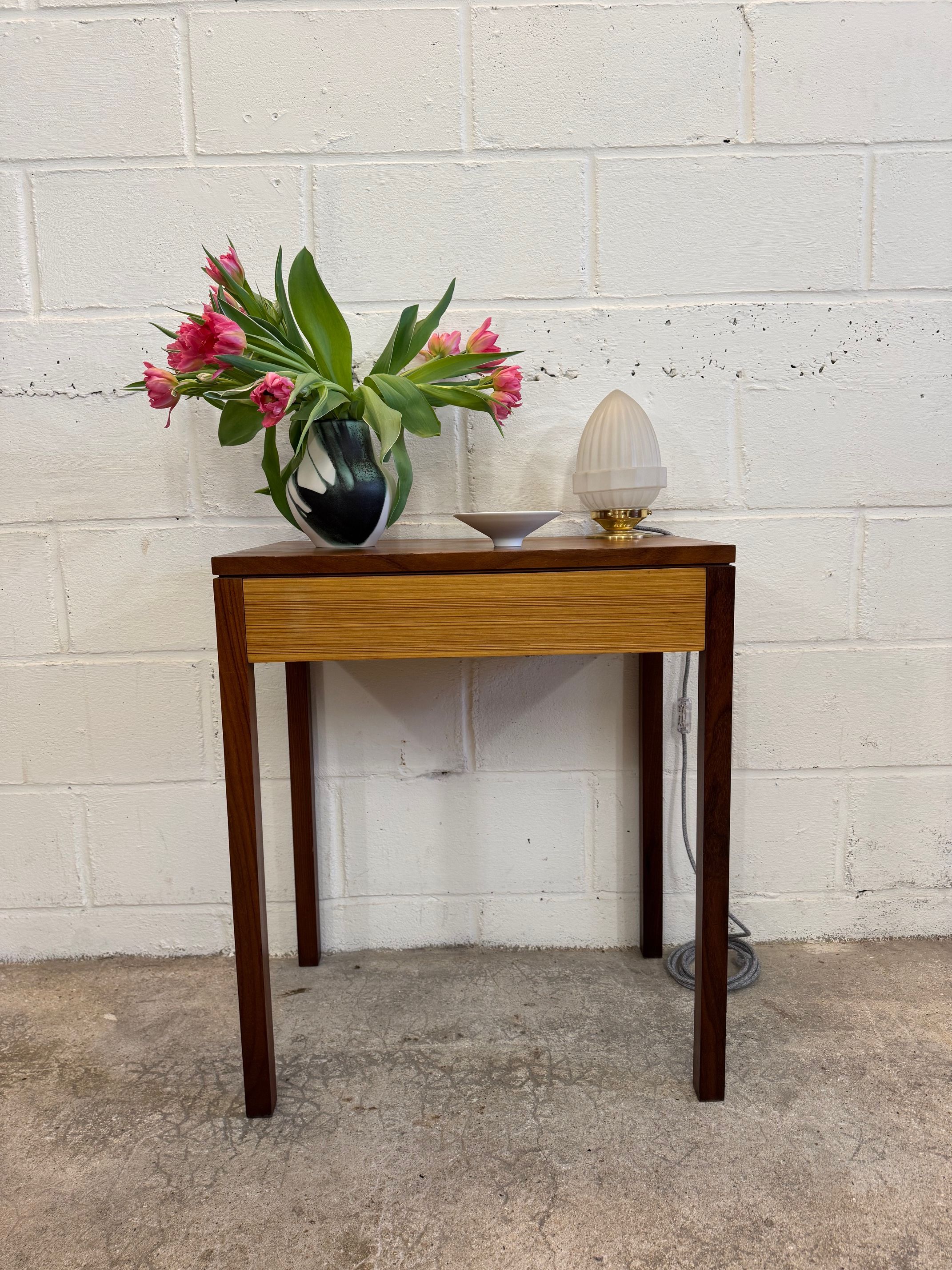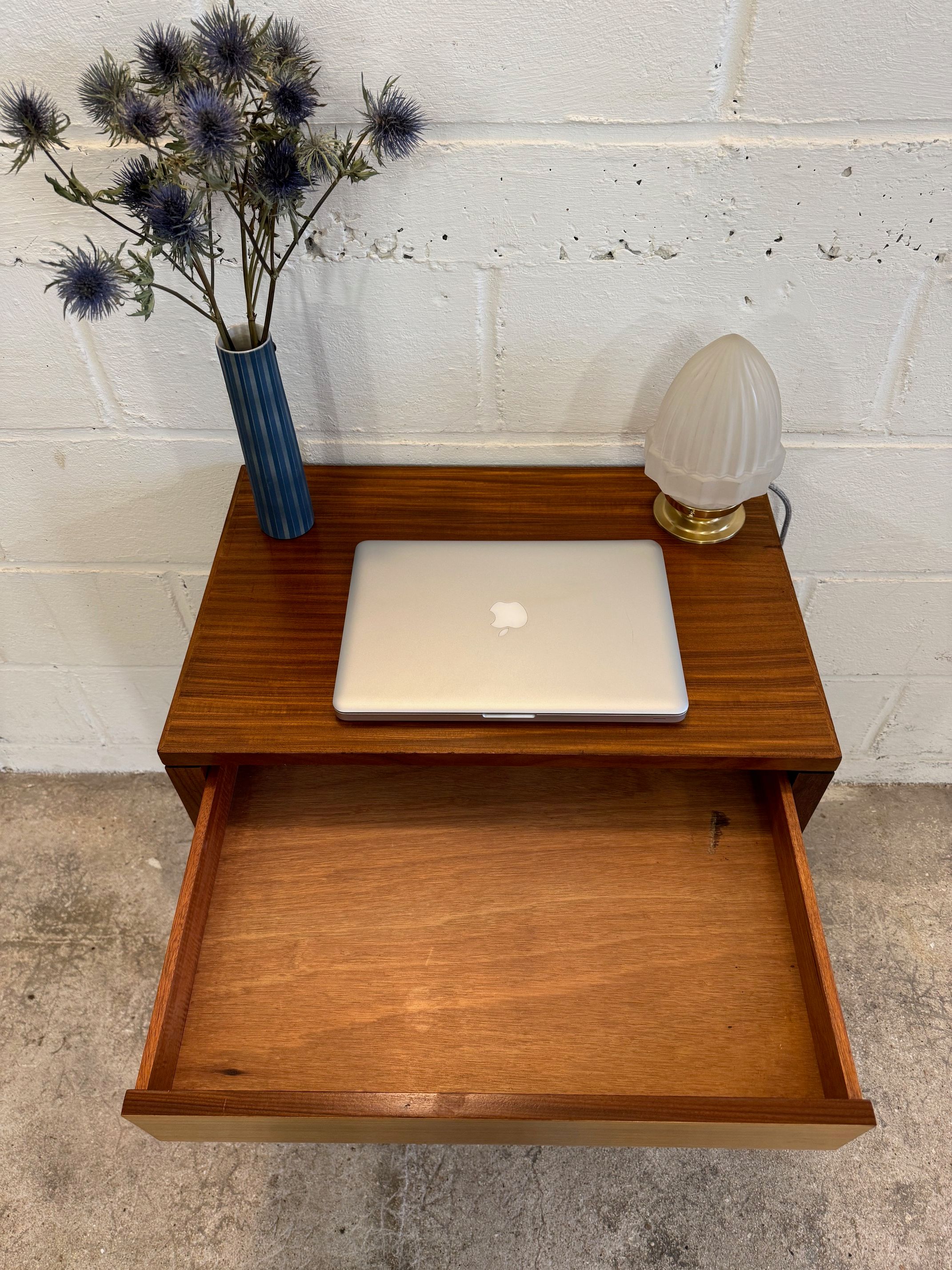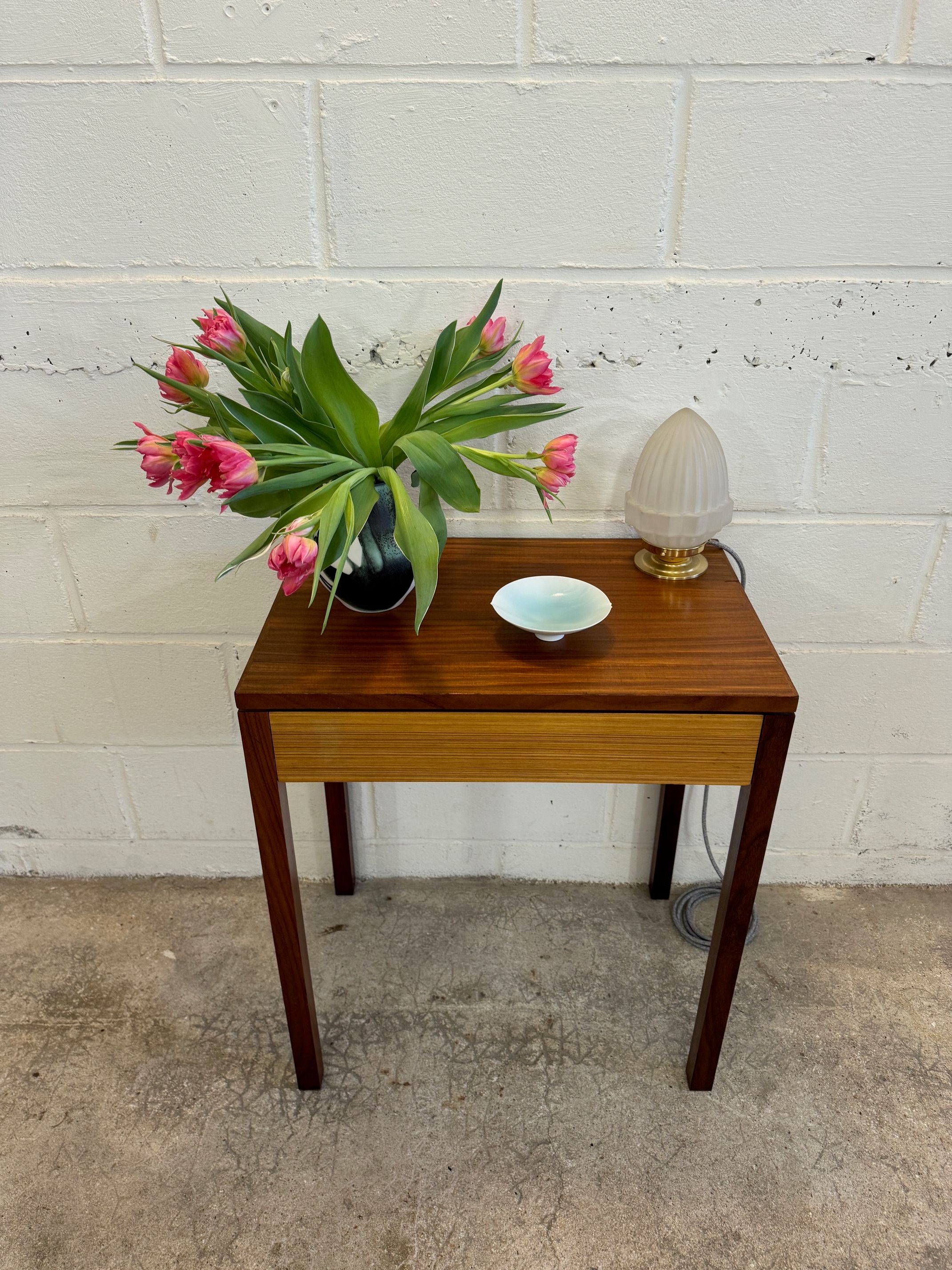 Un petit bureau en teck, disposant d'un tiroir. Il peut aussi être parfait comme console avec le tiroir vide-poche.