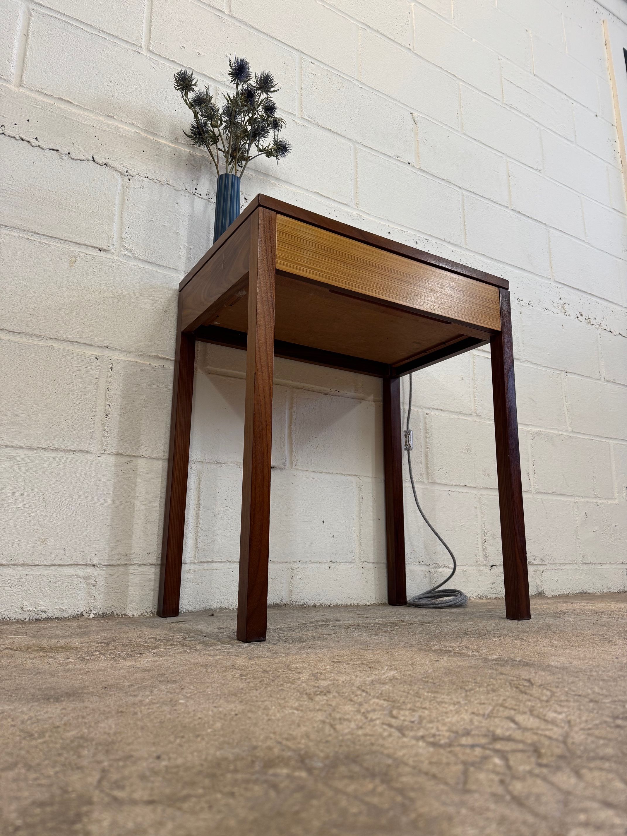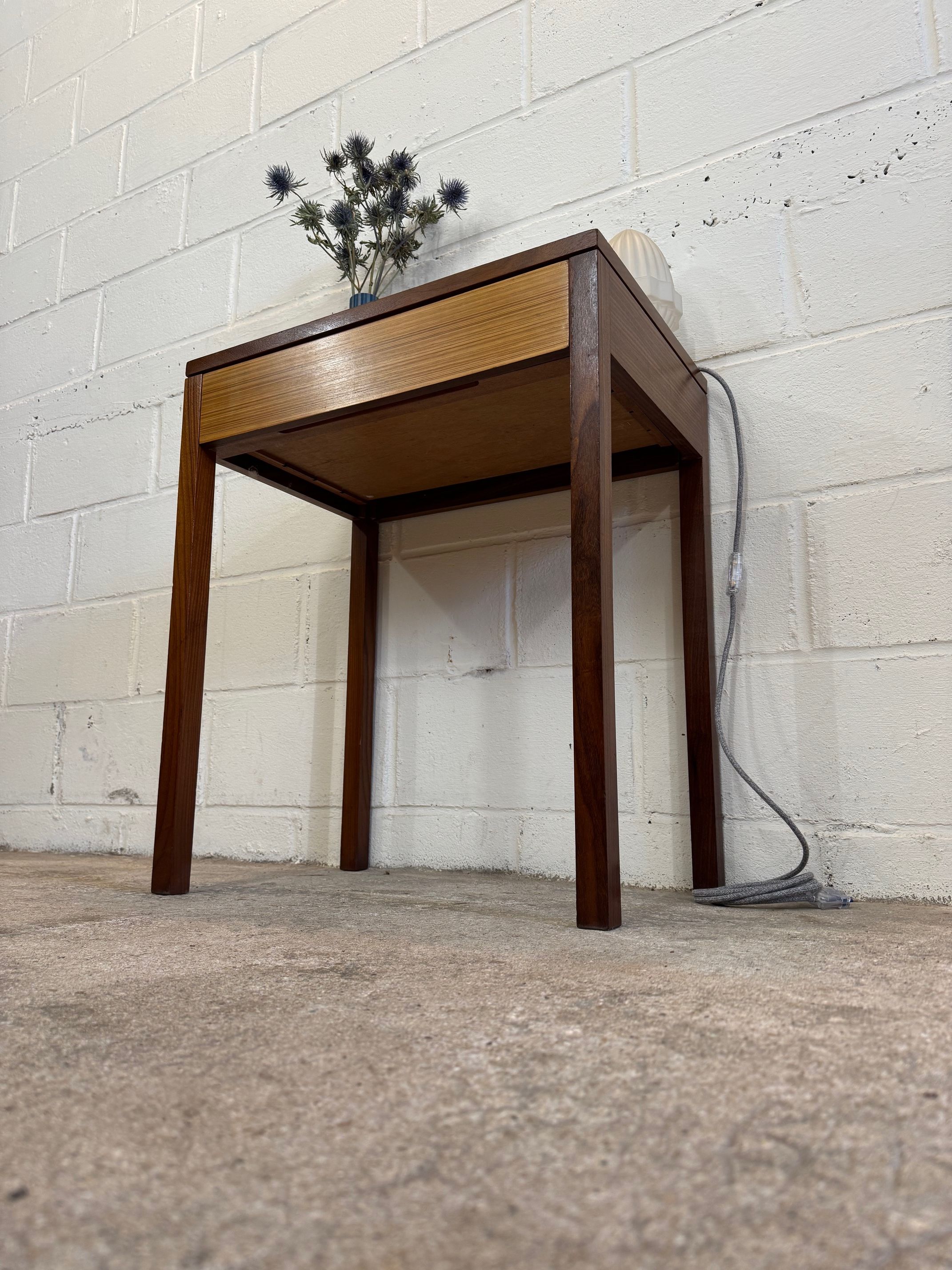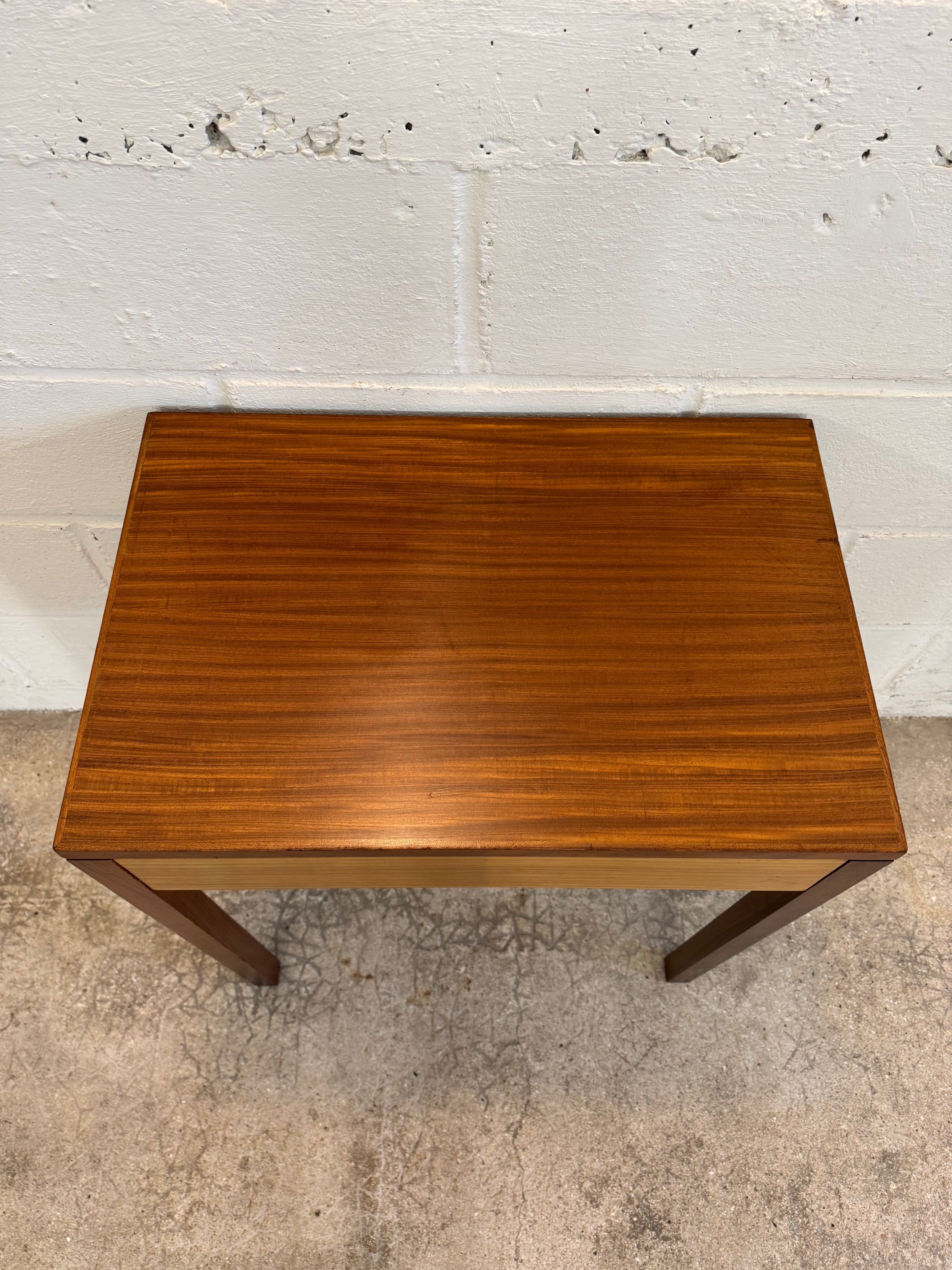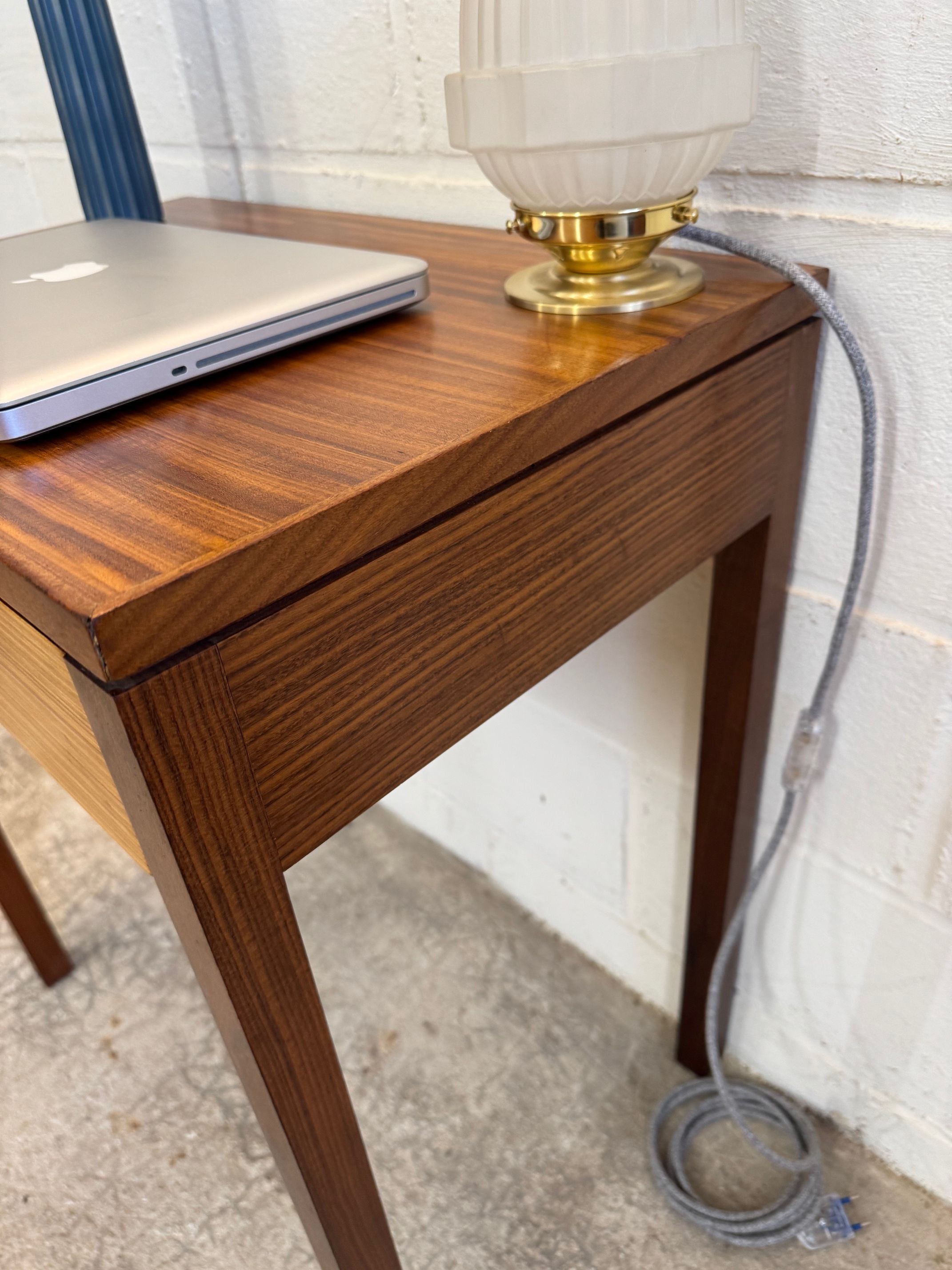 Un petit bureau en teck, disposant d'un tiroir. Il peut aussi être parfait comme console avec le tiroir vide-poche.