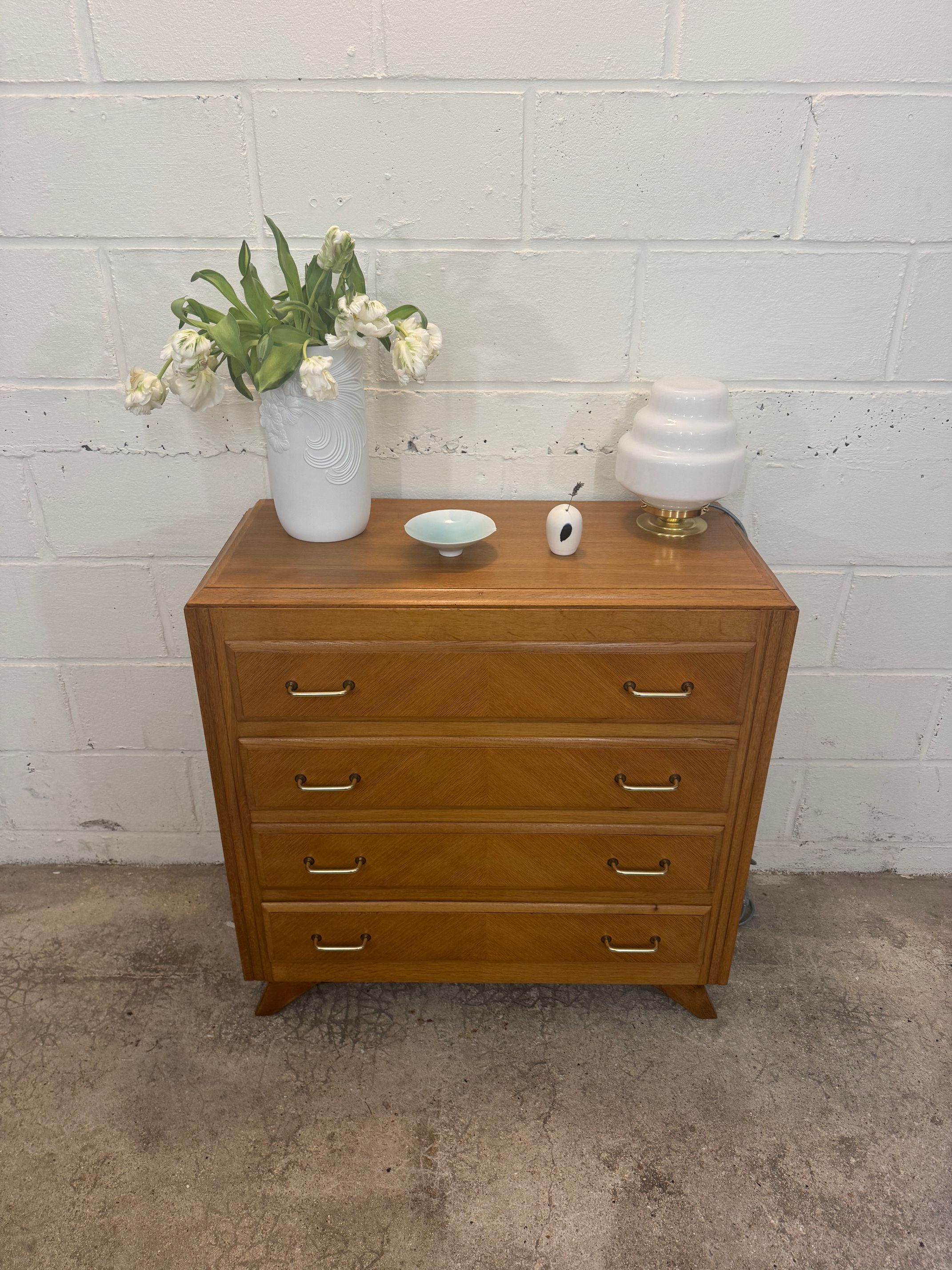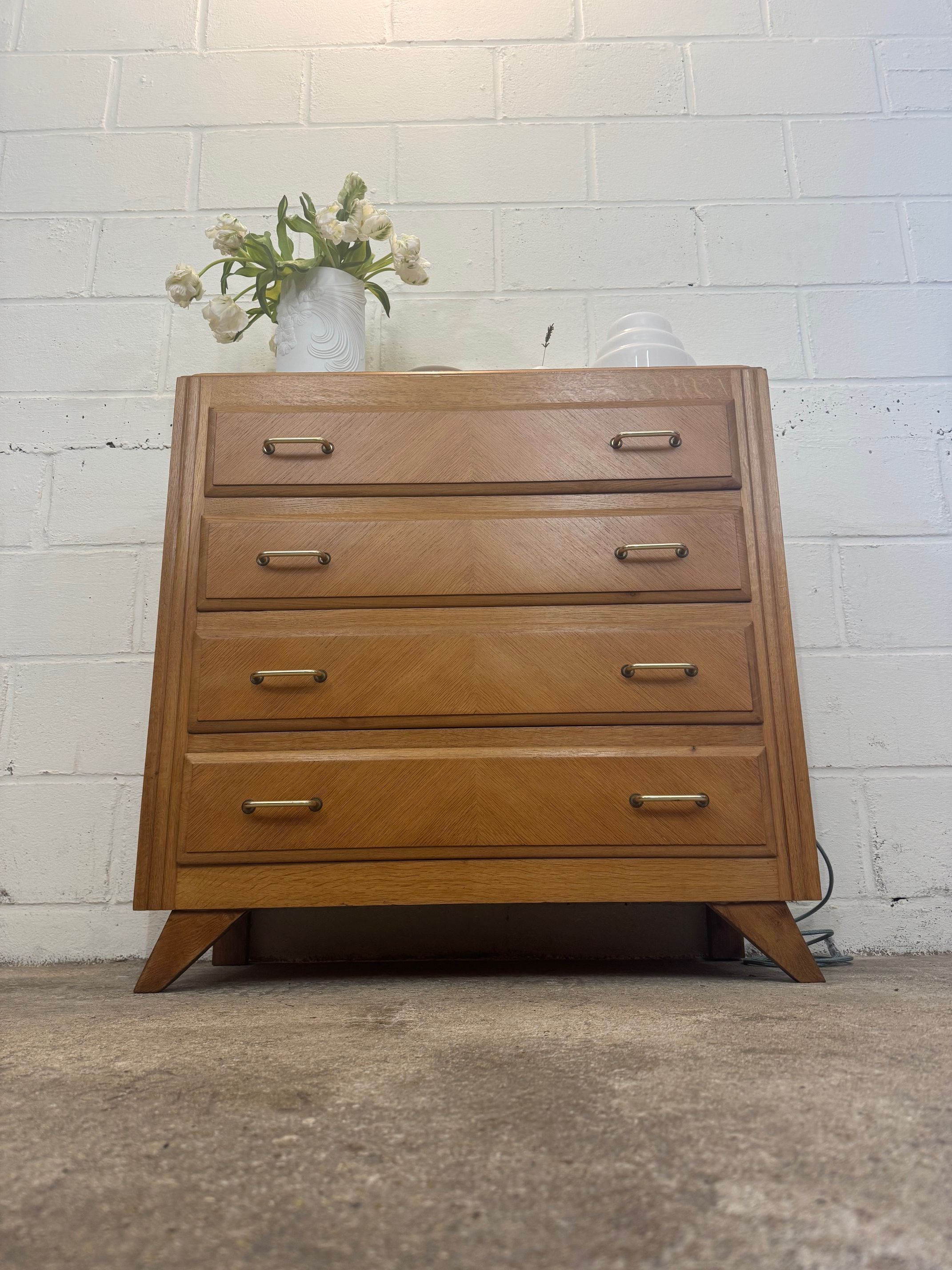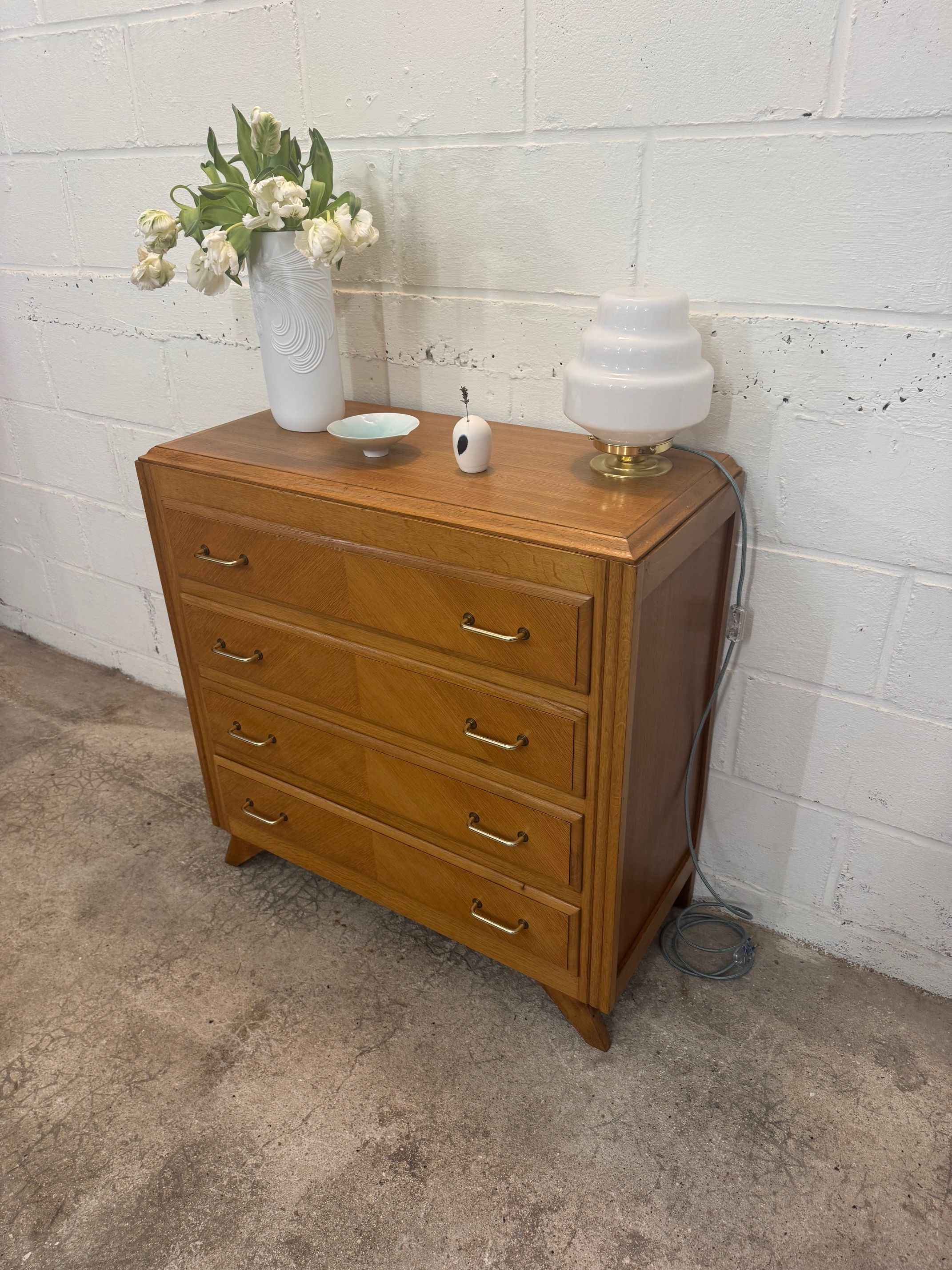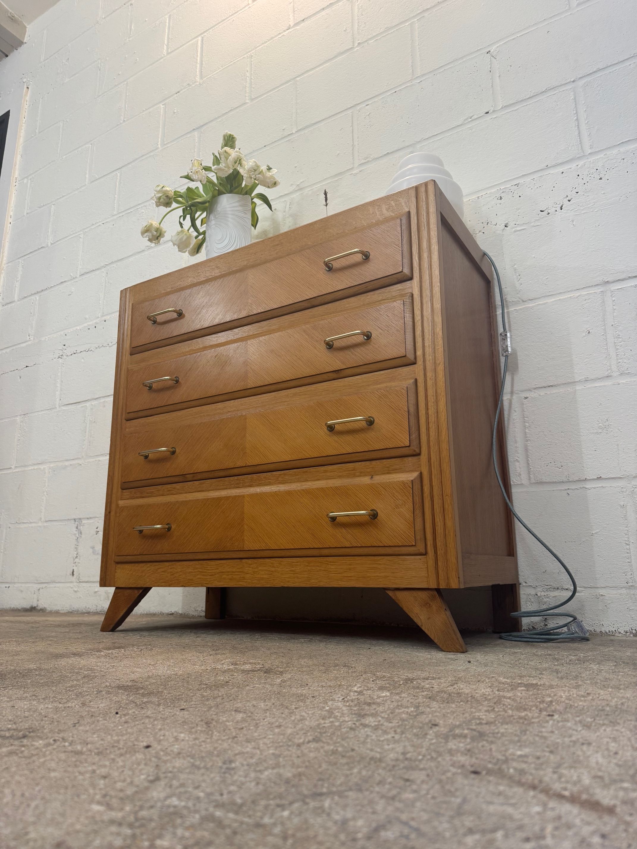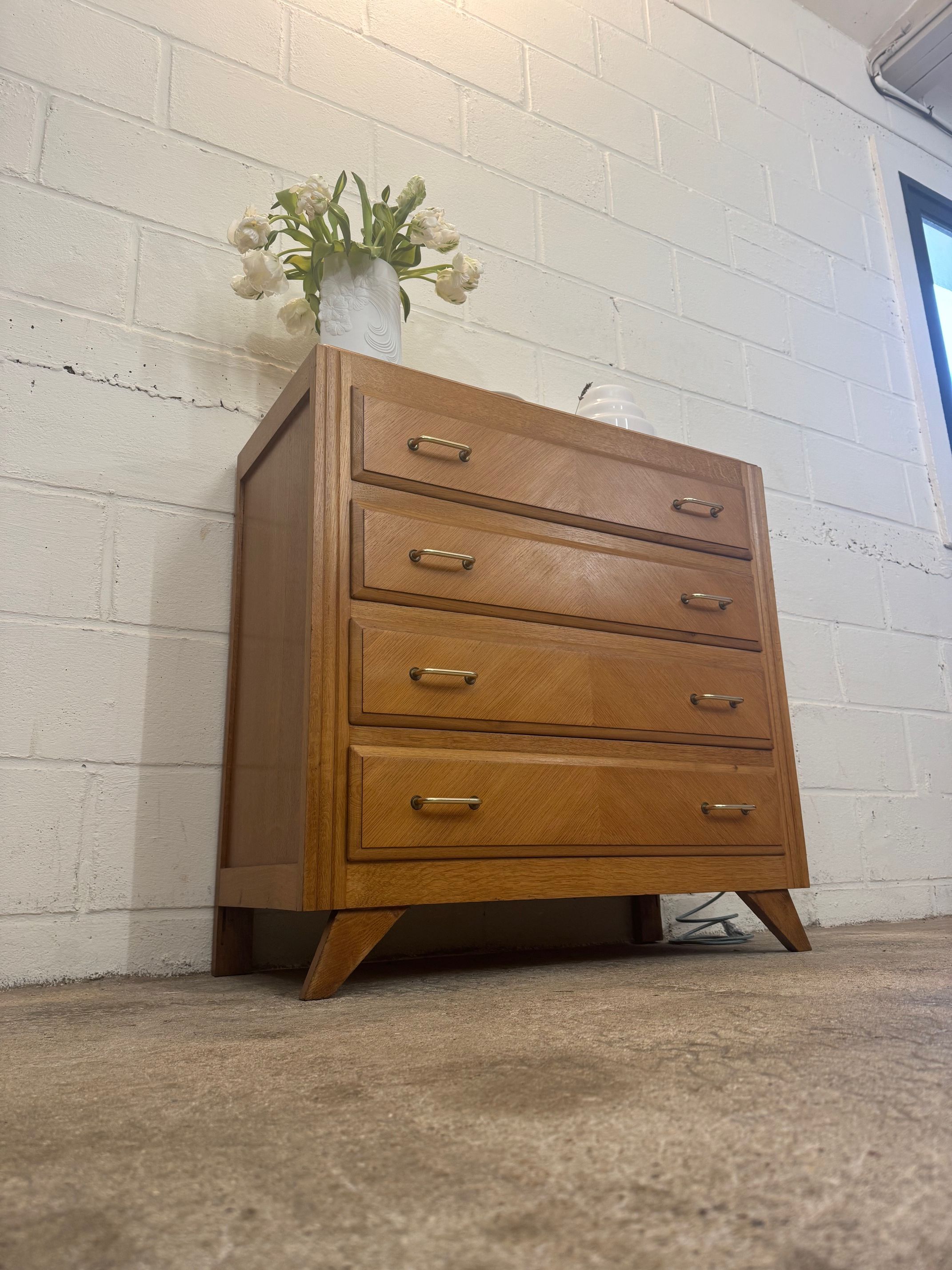 Une commode 4 tiroirs, modèle classique des années 60. Les tiroirs coulissent bien et offrent une bonne capacité de rangement.