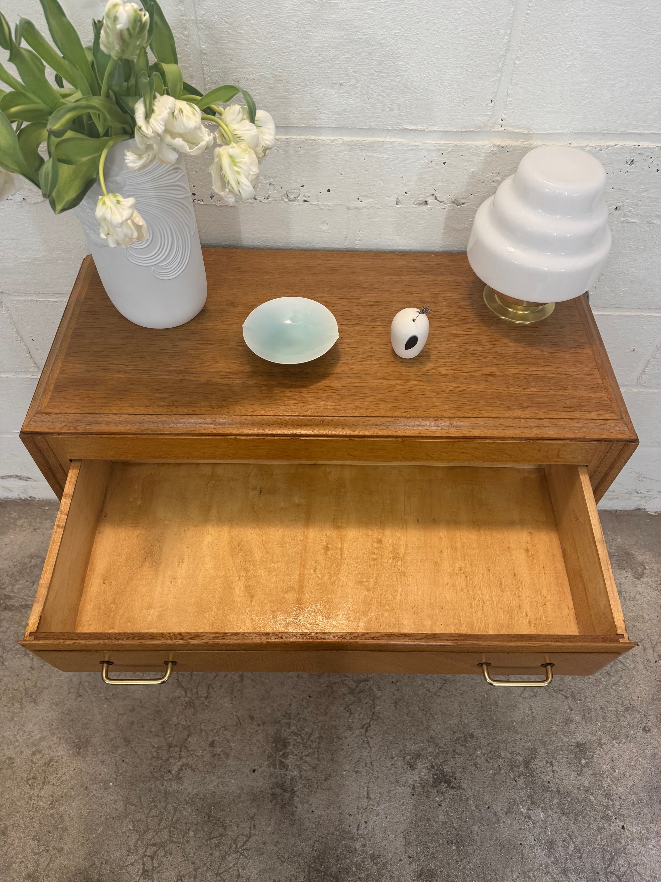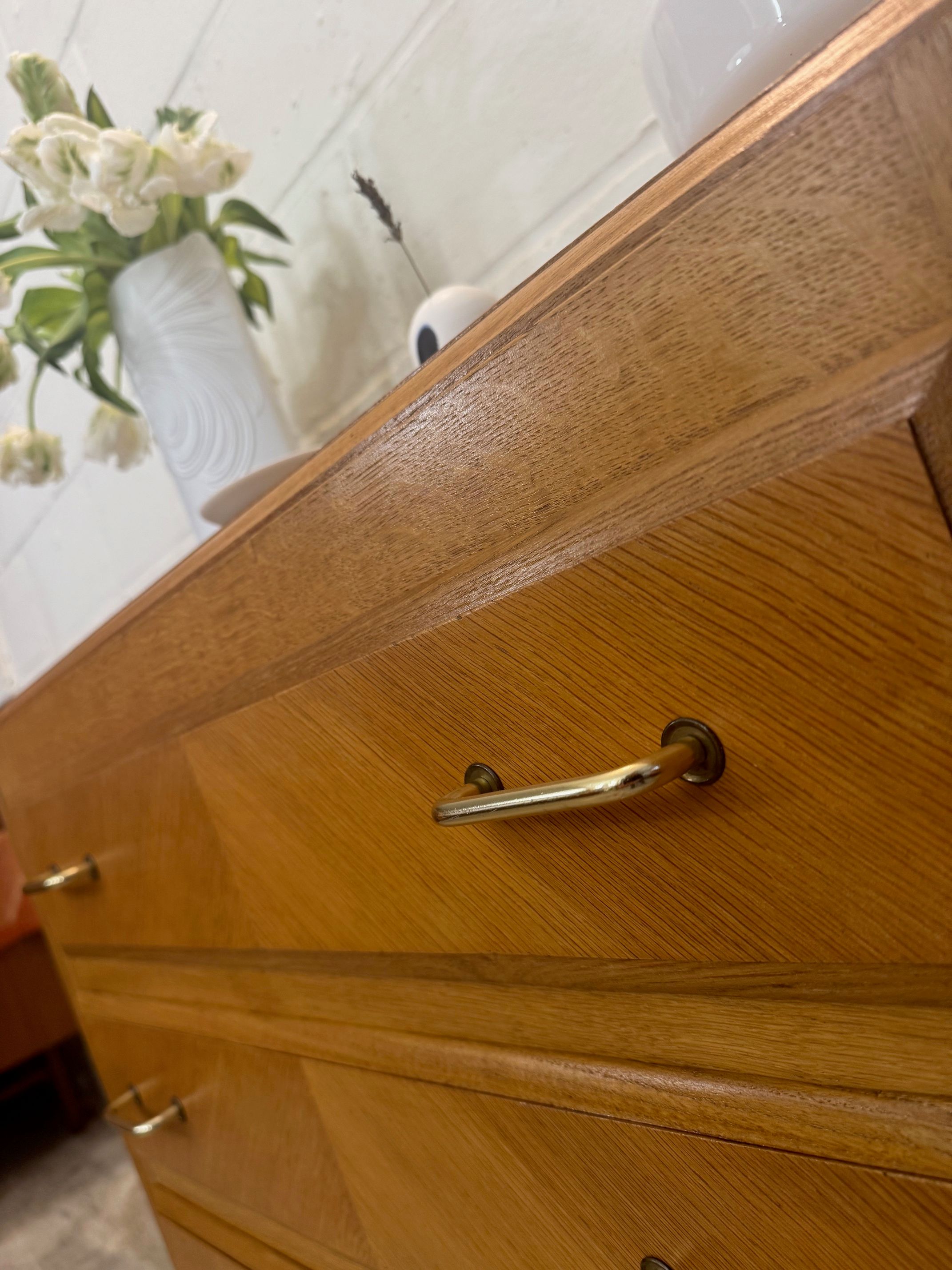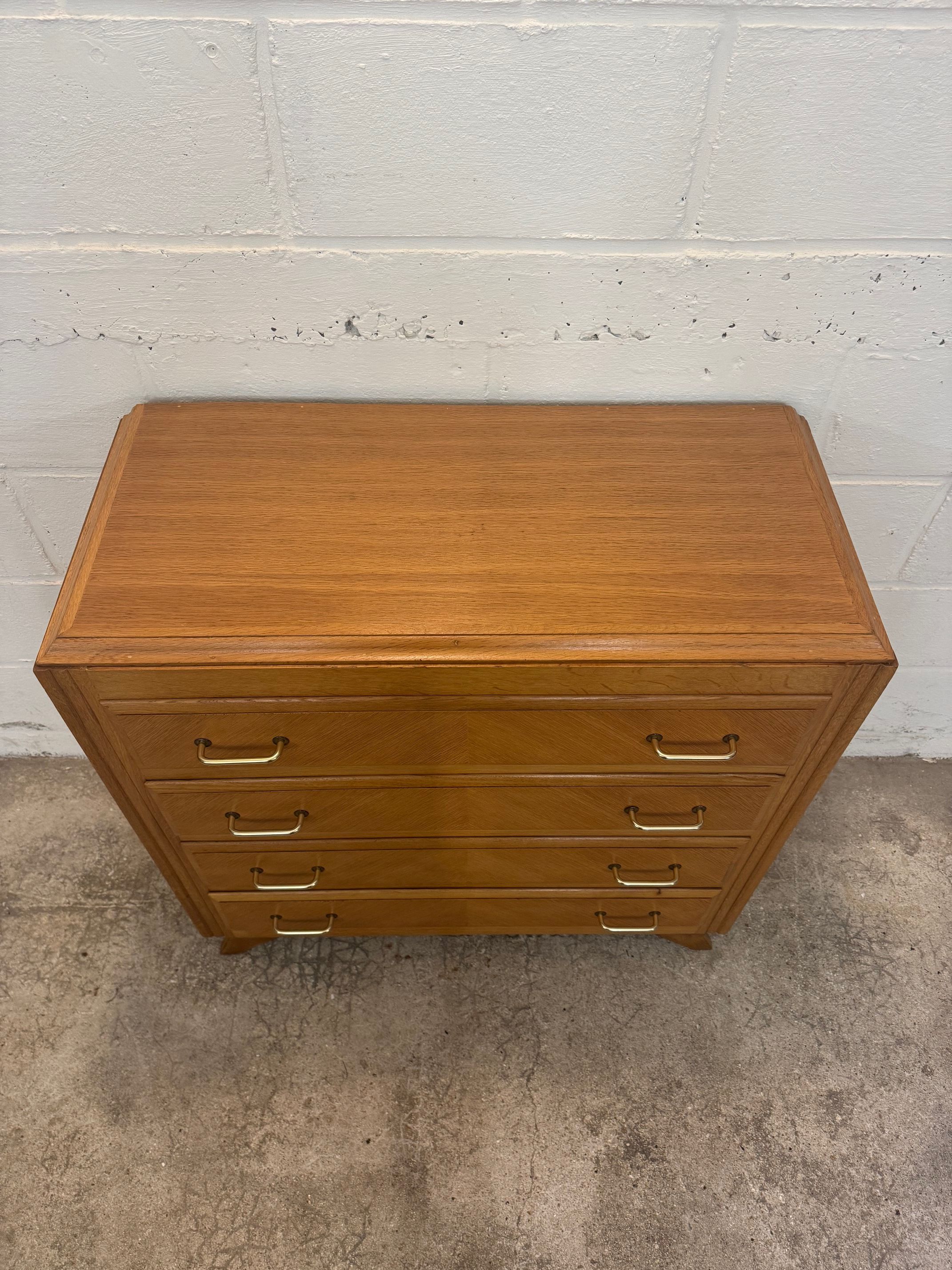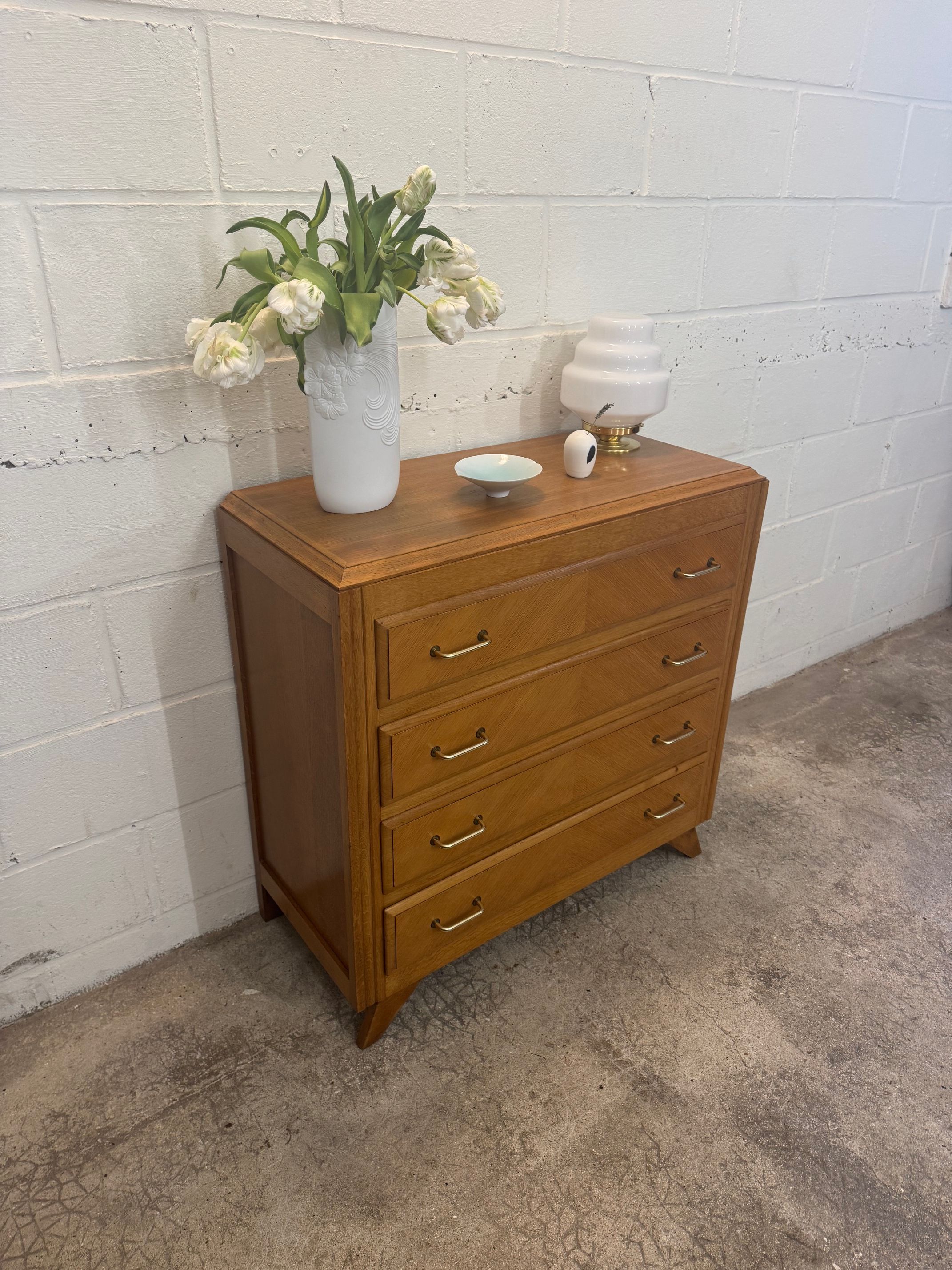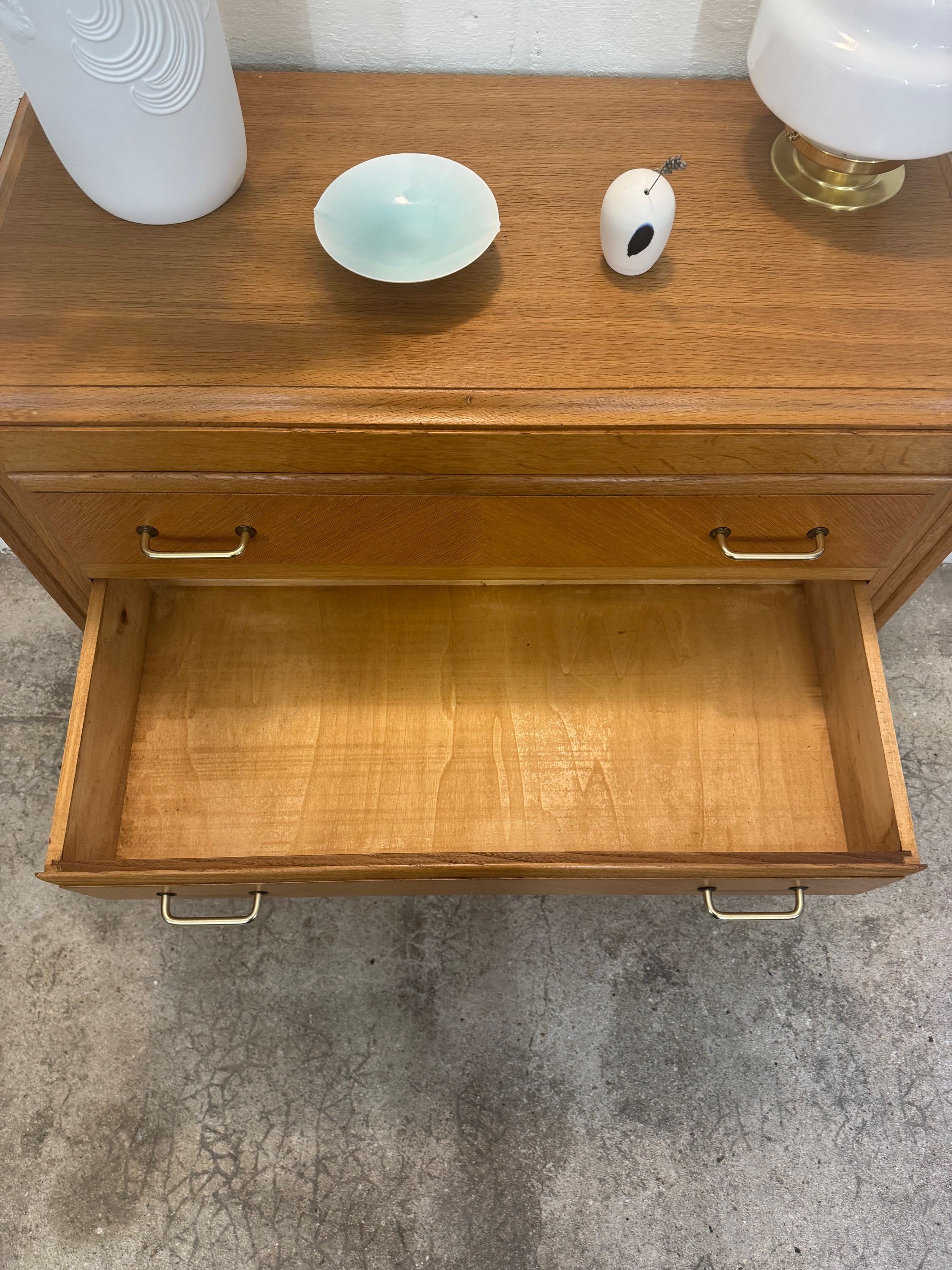 Une commode 4 tiroirs, modèle classique des années 60. Les tiroirs coulissent bien et offrent une bonne capacité de rangement.