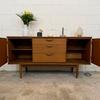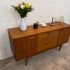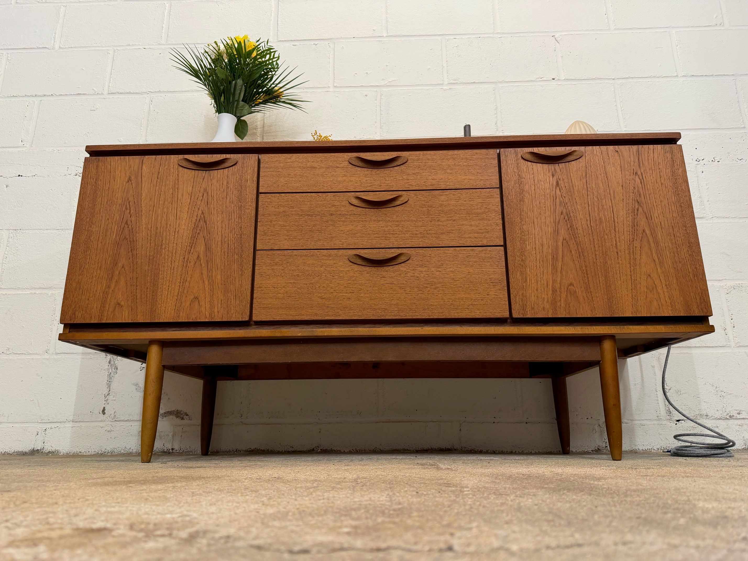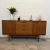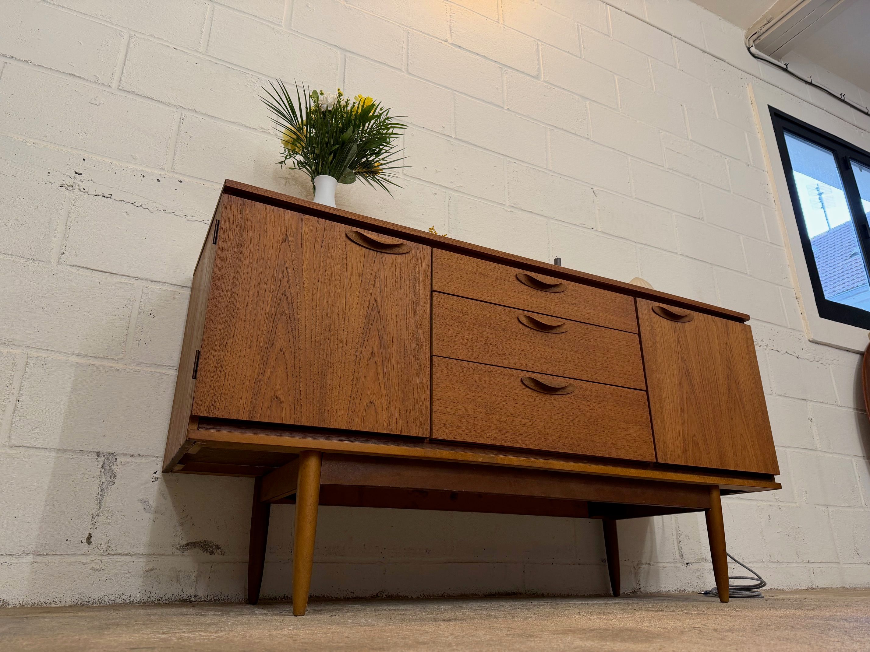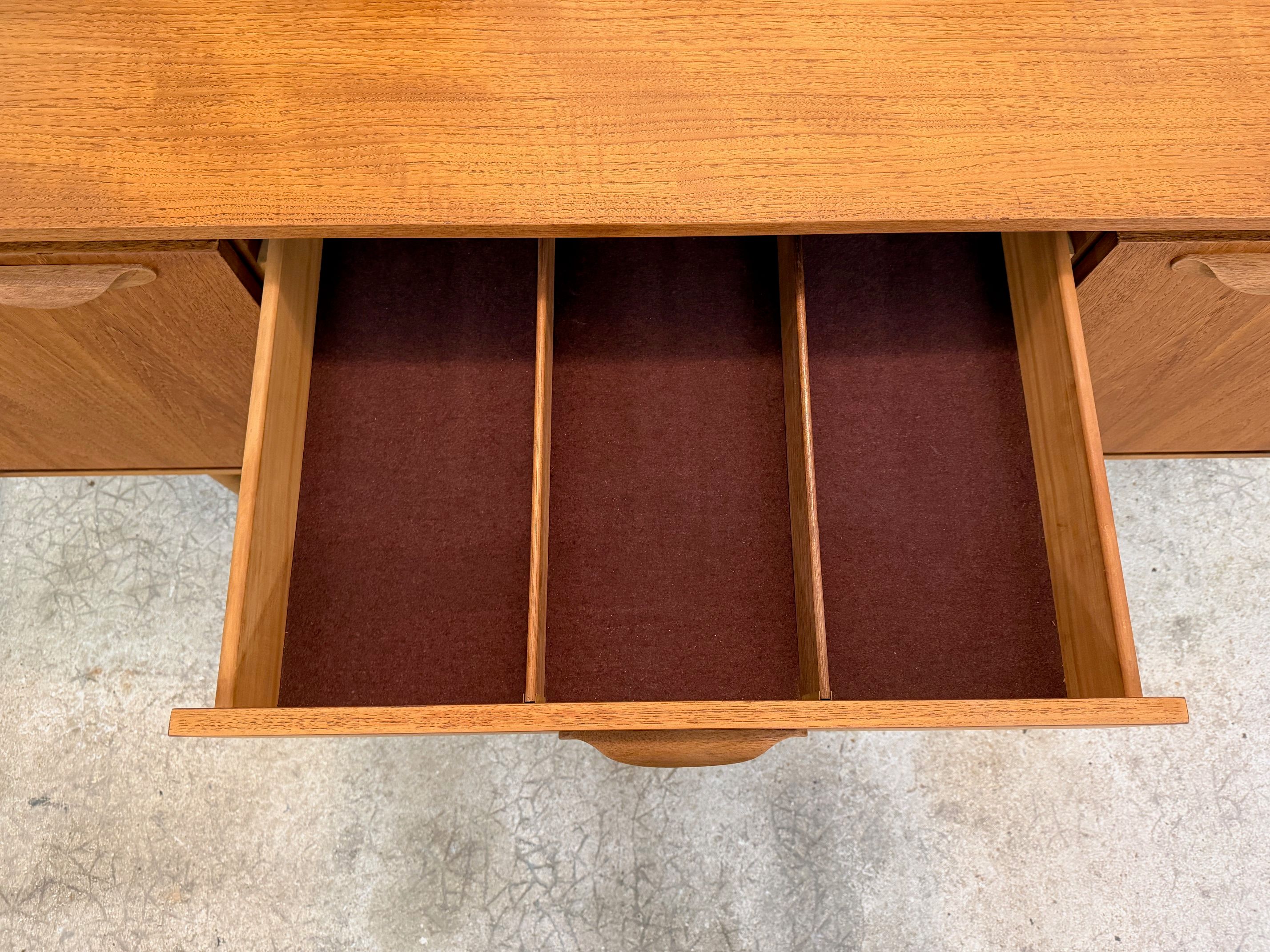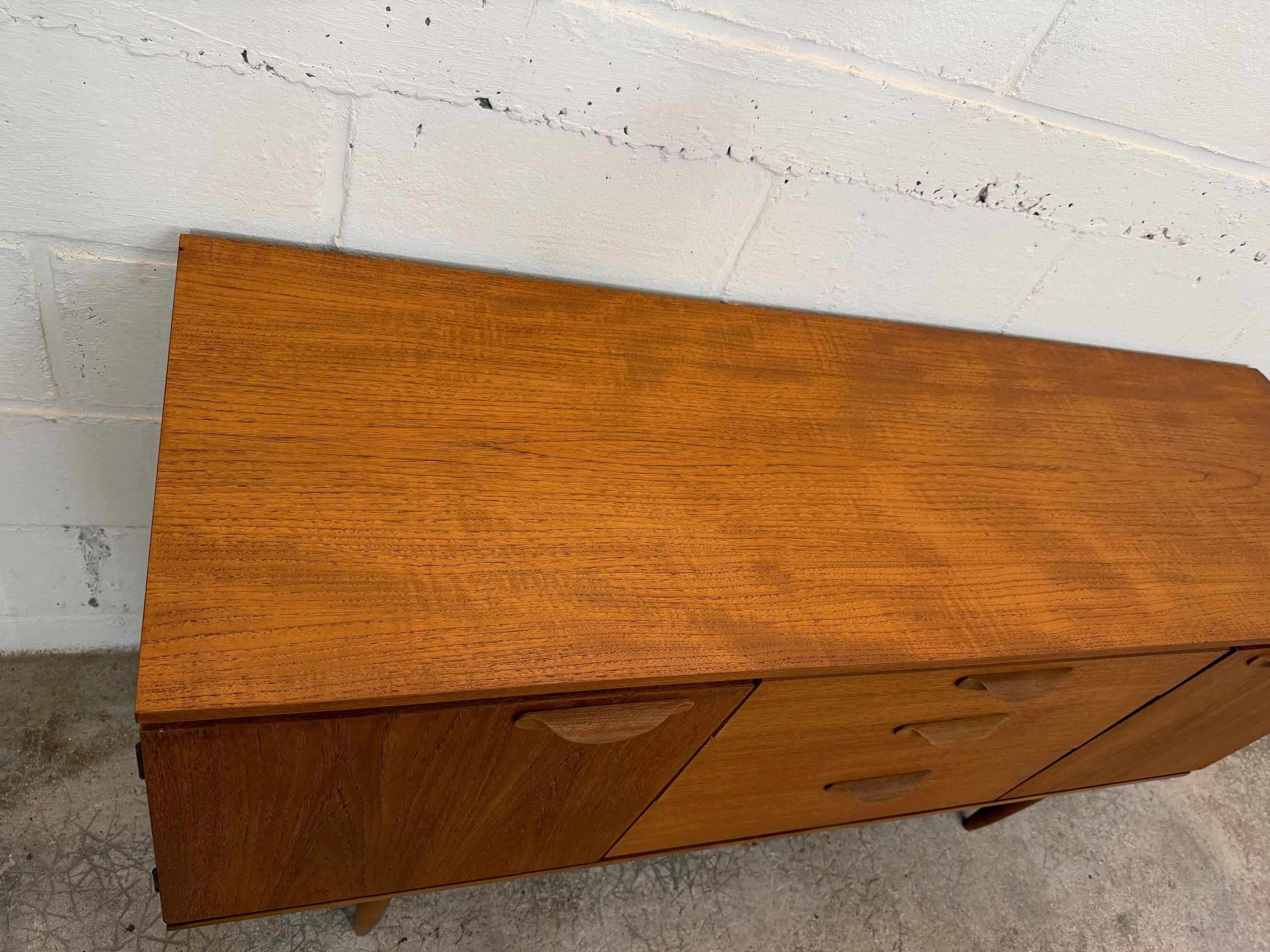Une belle enfilade scandinave en teck, éditée en Angleterre par Austinsuite dans les années 60. Elle offre une bonne capacité de rangement.