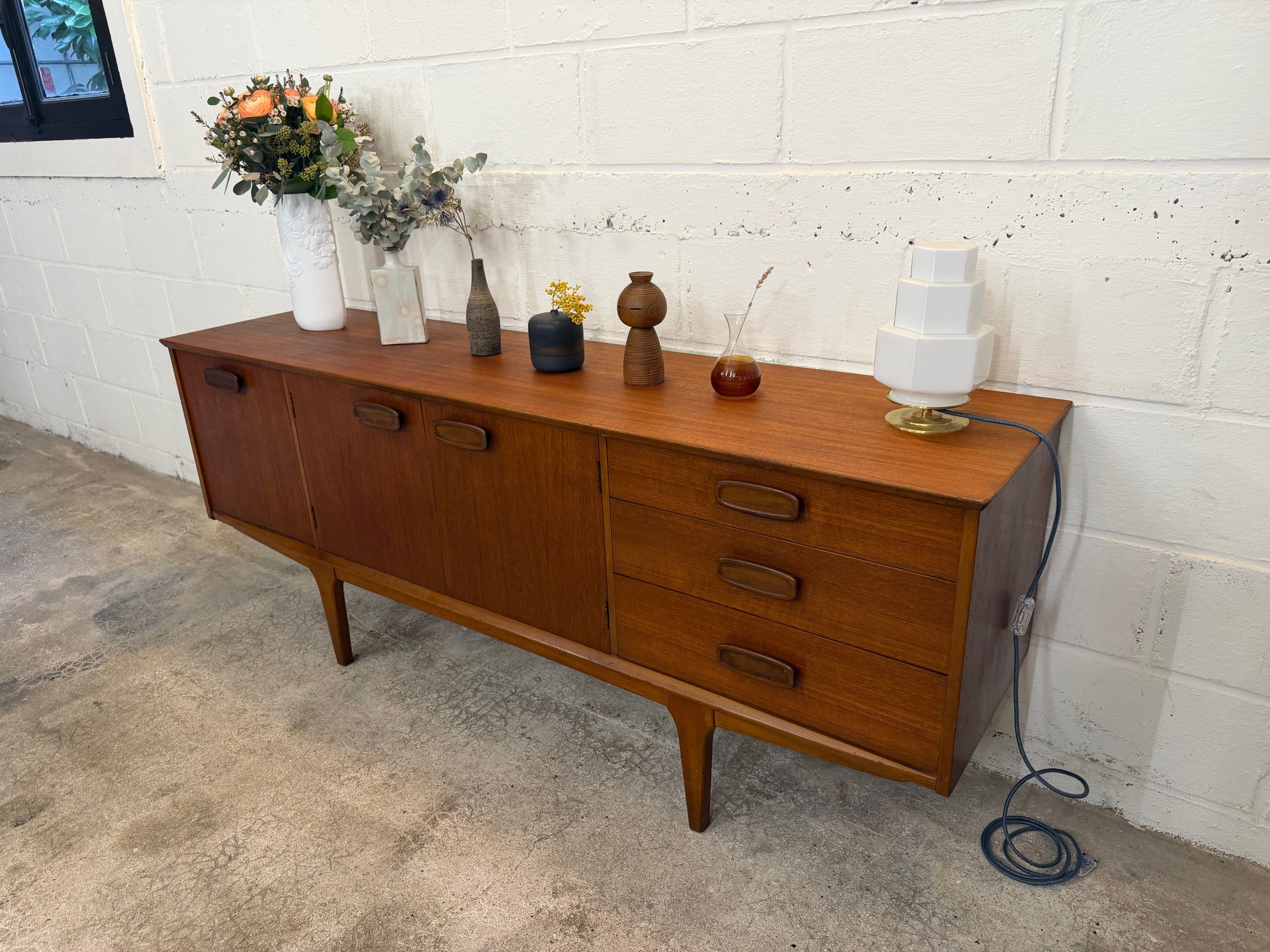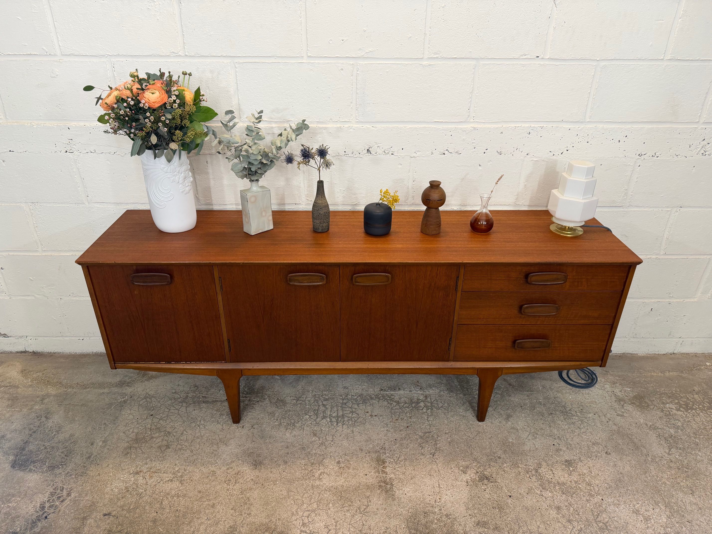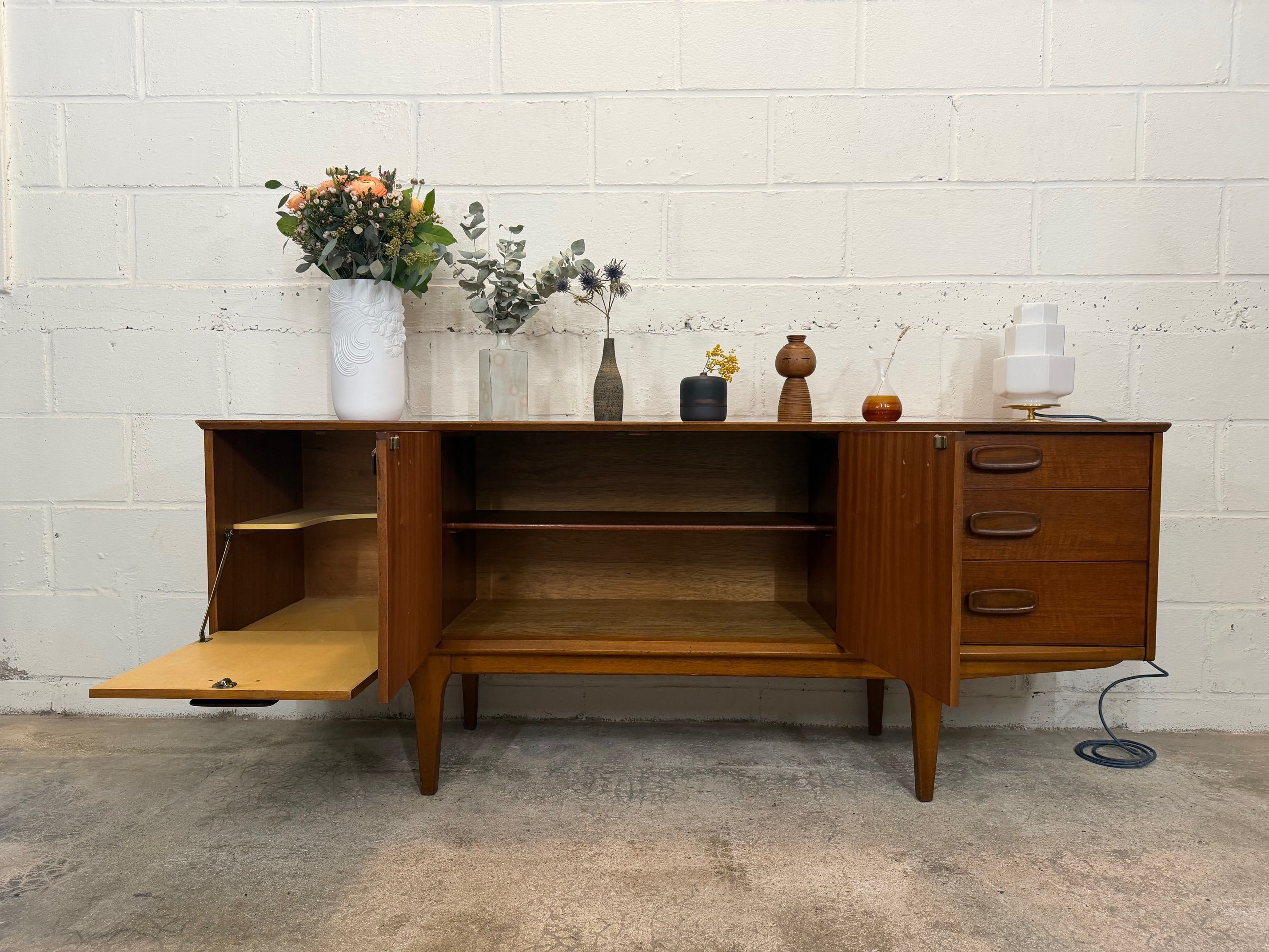 Une belle enfilade scandinave en teck, éditée dans les années 60 par Jentique en Angleterre. Elle dispose d'une bonne capacité de rangement dont un espace bar.