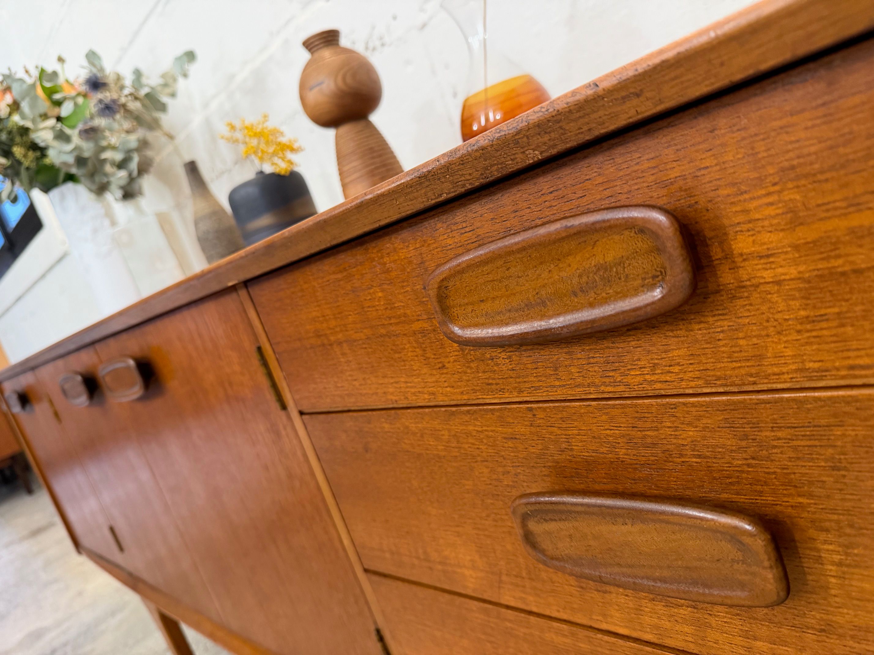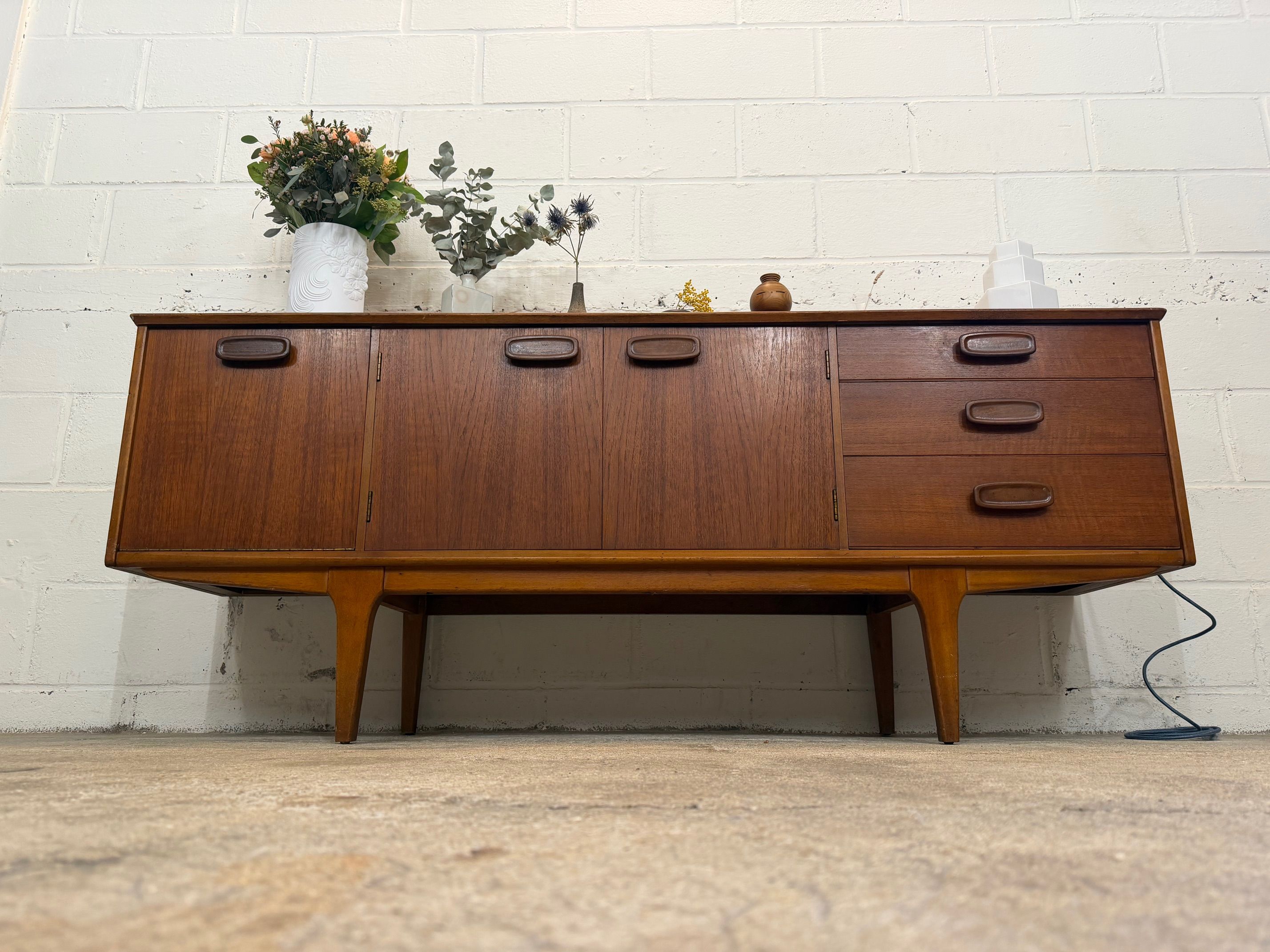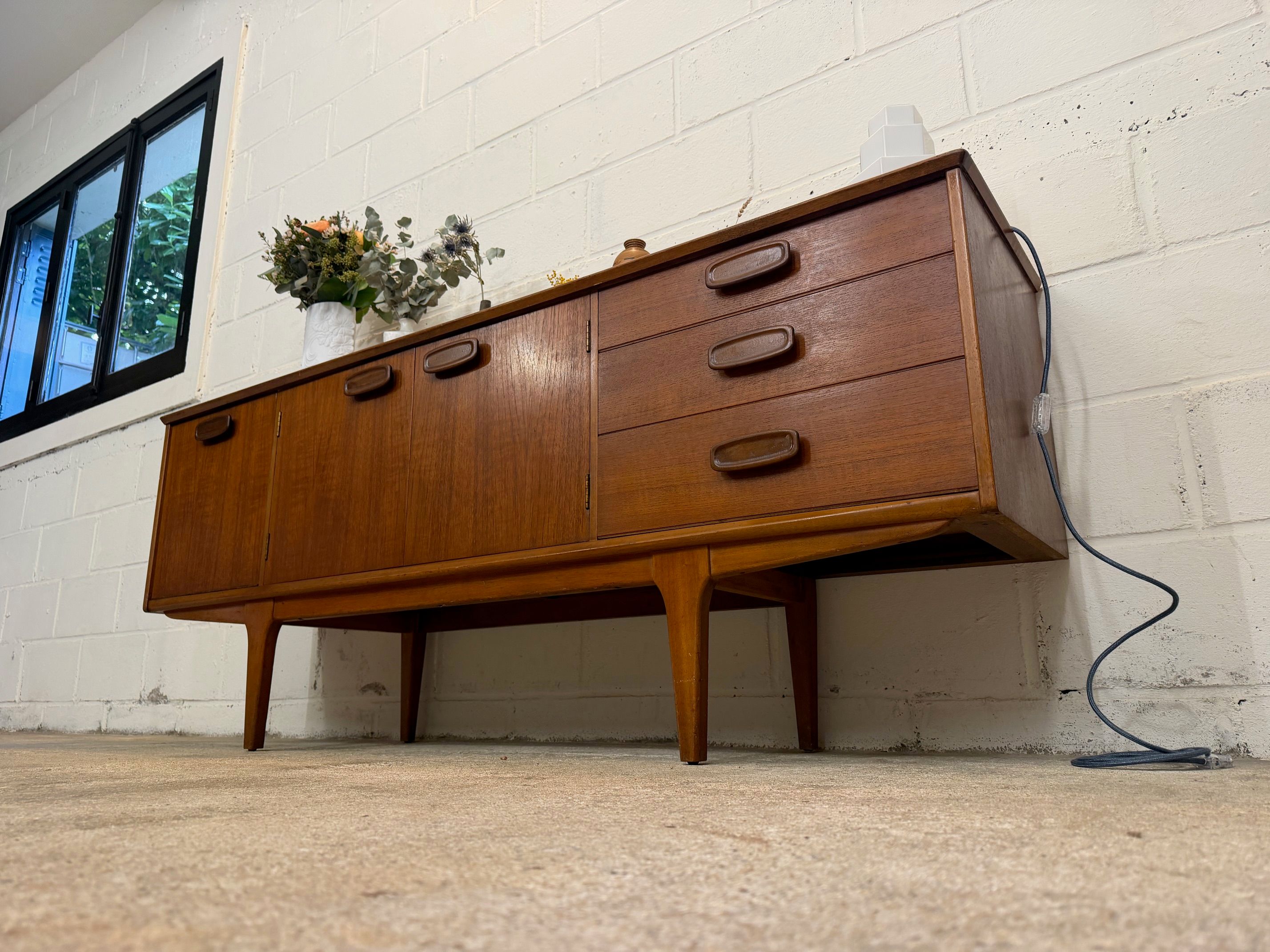 Une belle enfilade scandinave en teck, éditée dans les années 60 par Jentique en Angleterre. Elle dispose d'une bonne capacité de rangement dont un espace bar.
