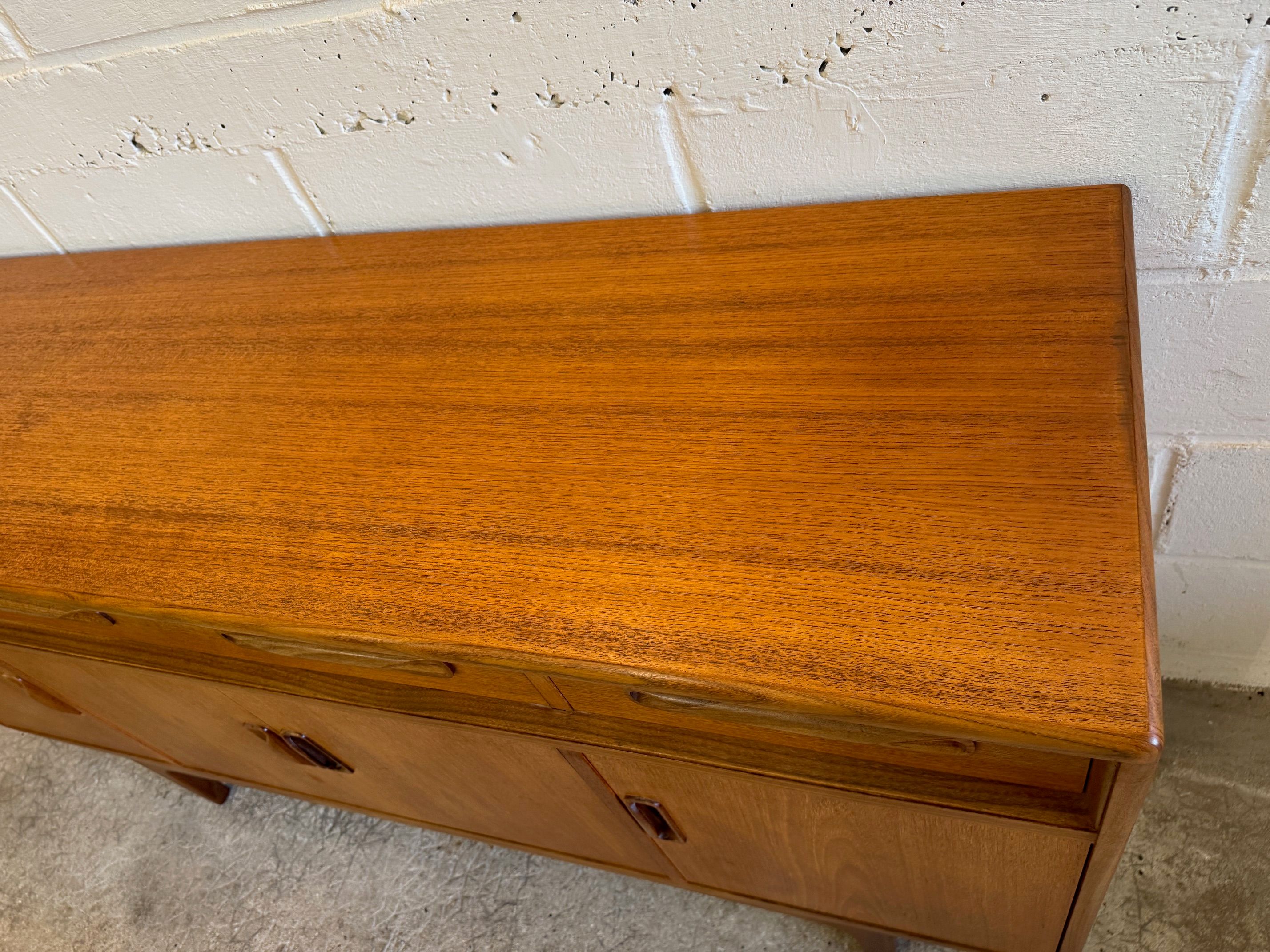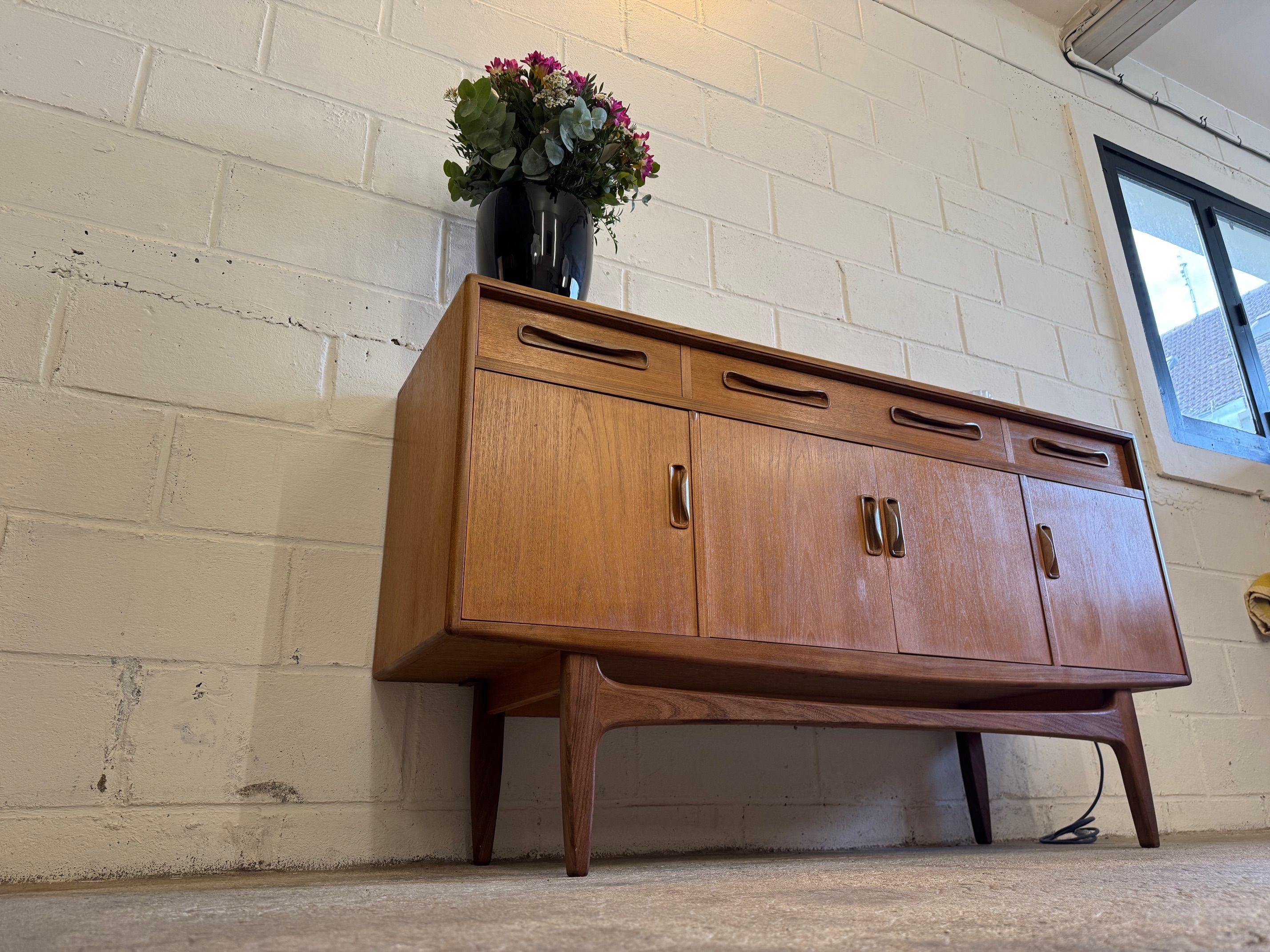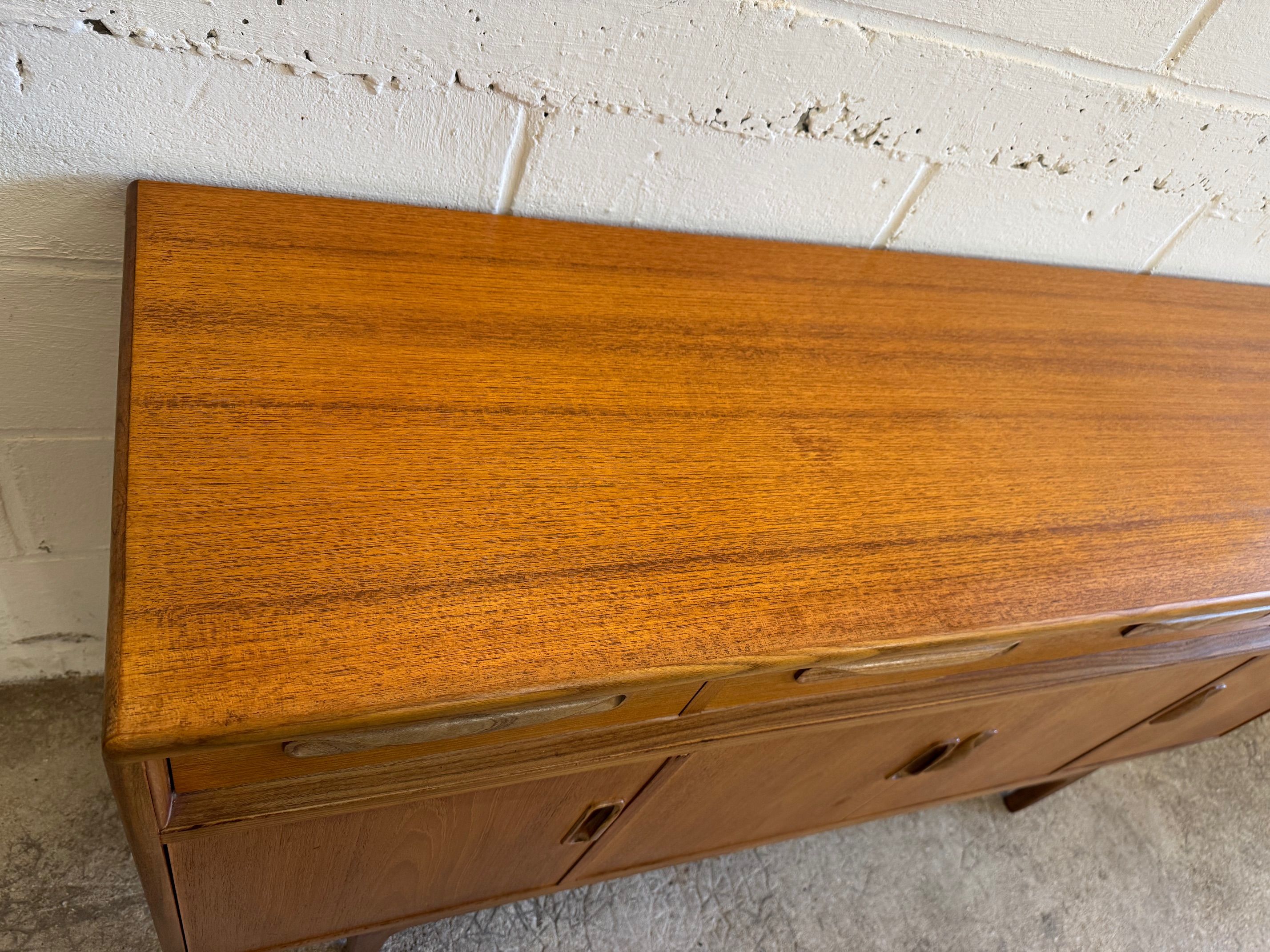 Une belle enfilade scandinave en teck, éditée en Angleterre dans les années 60 par G-Plan. Modèle Fresco de Victor Wilkins. Elle offre une bonne capacité de rangement.