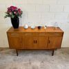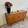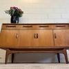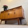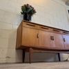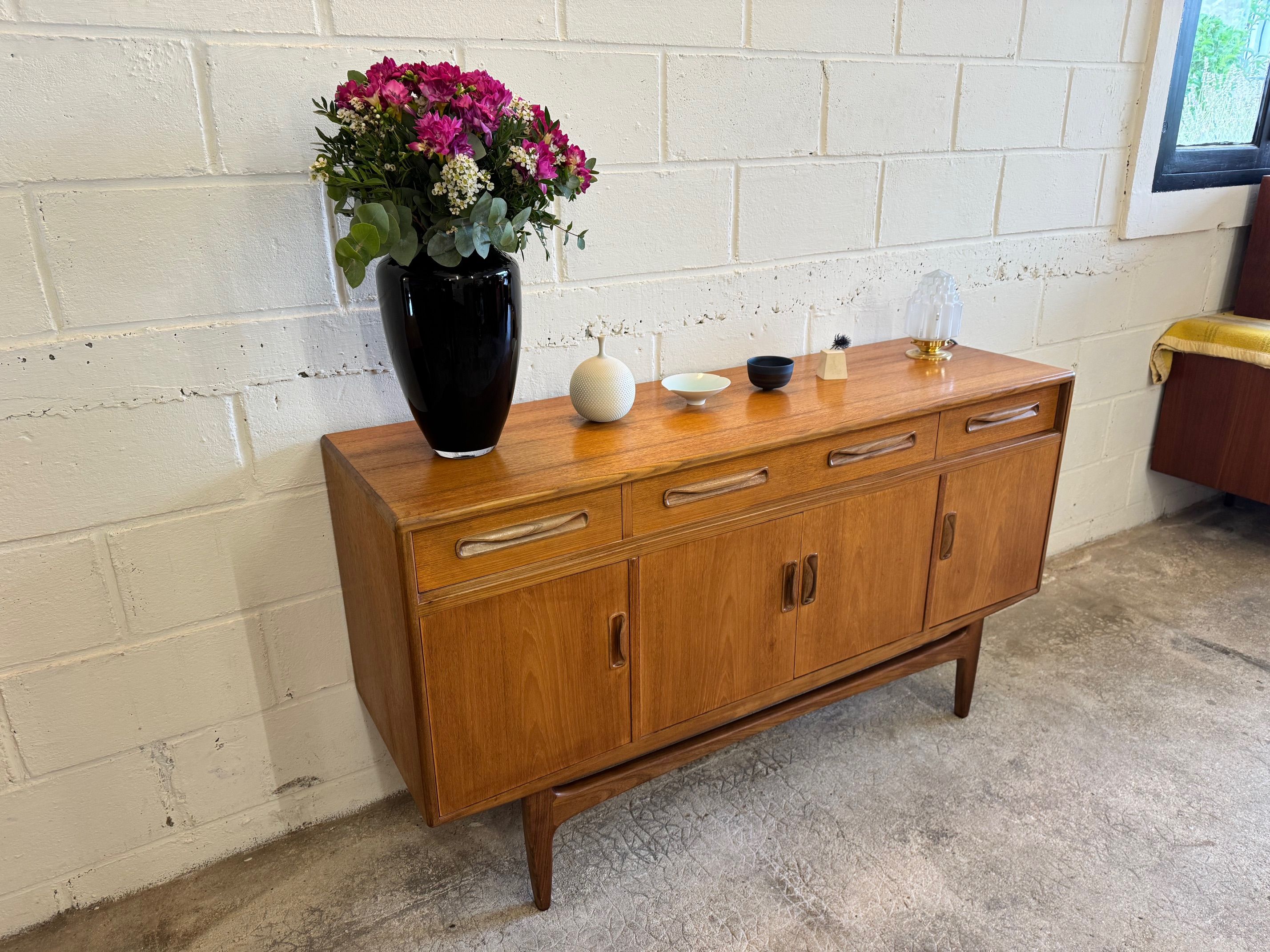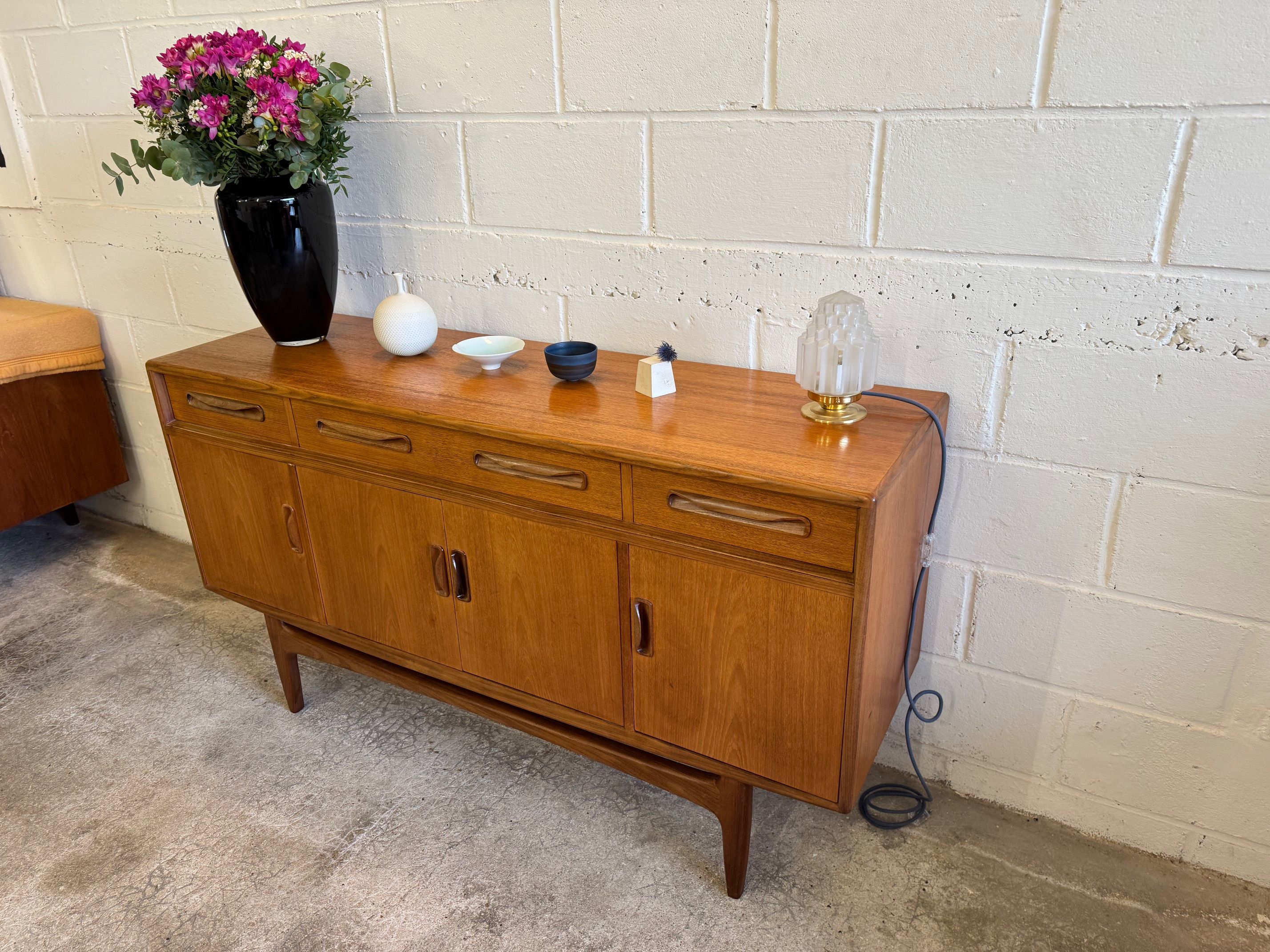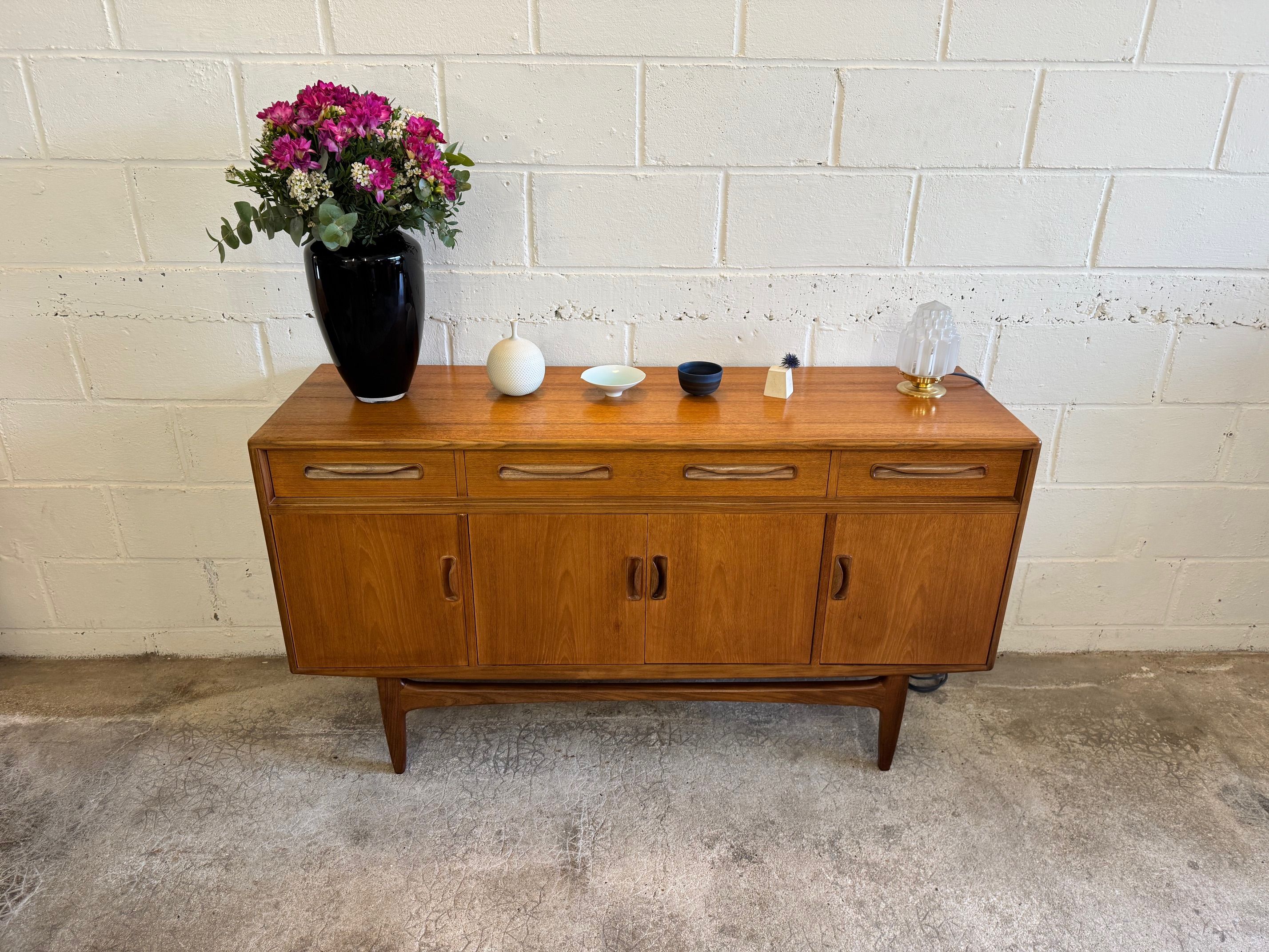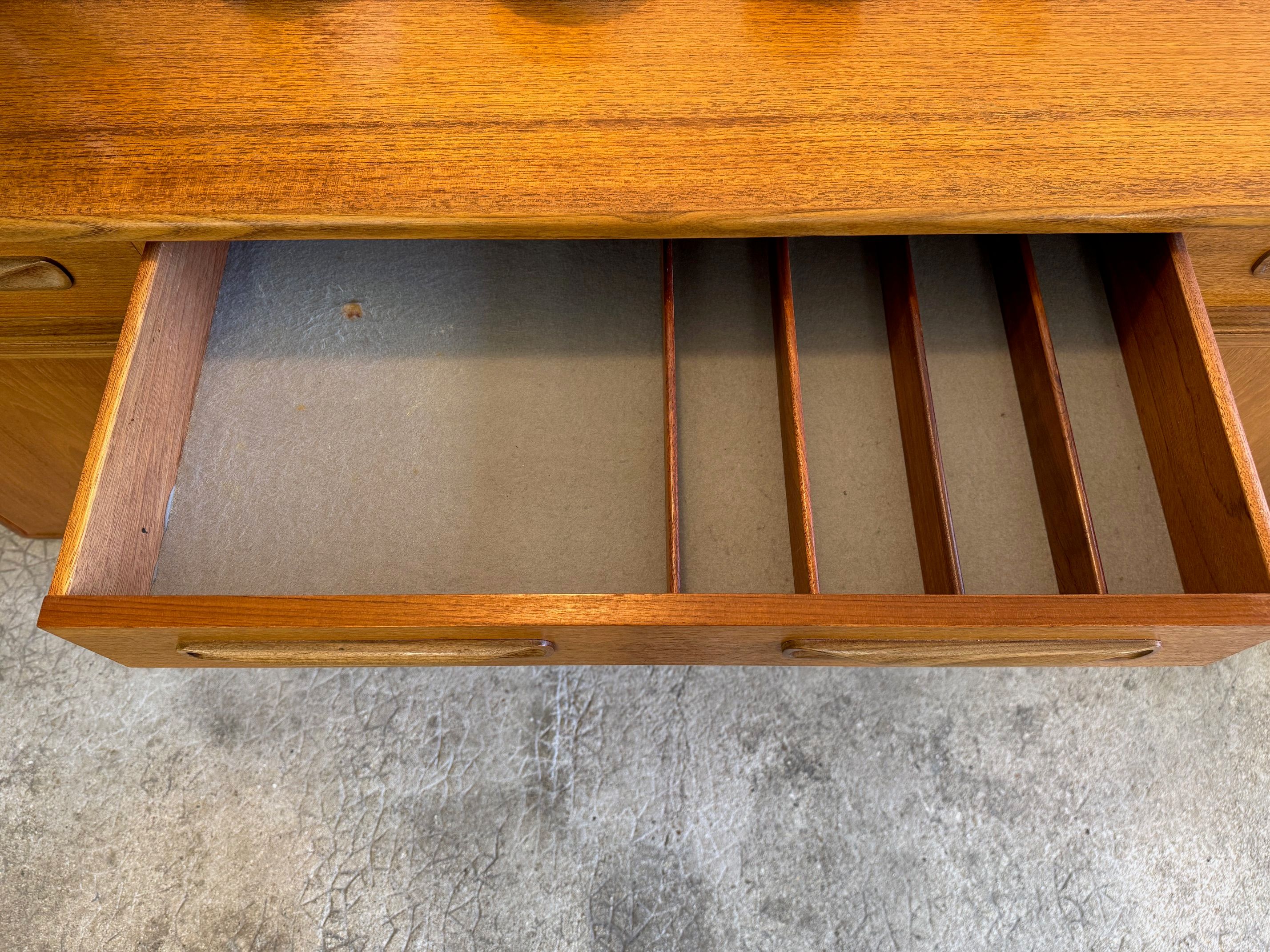 Une belle enfilade scandinave en teck, éditée en Angleterre dans les années 60 par G-Plan. Modèle Fresco de Victor Wilkins. Elle offre une bonne capacité de rangement.