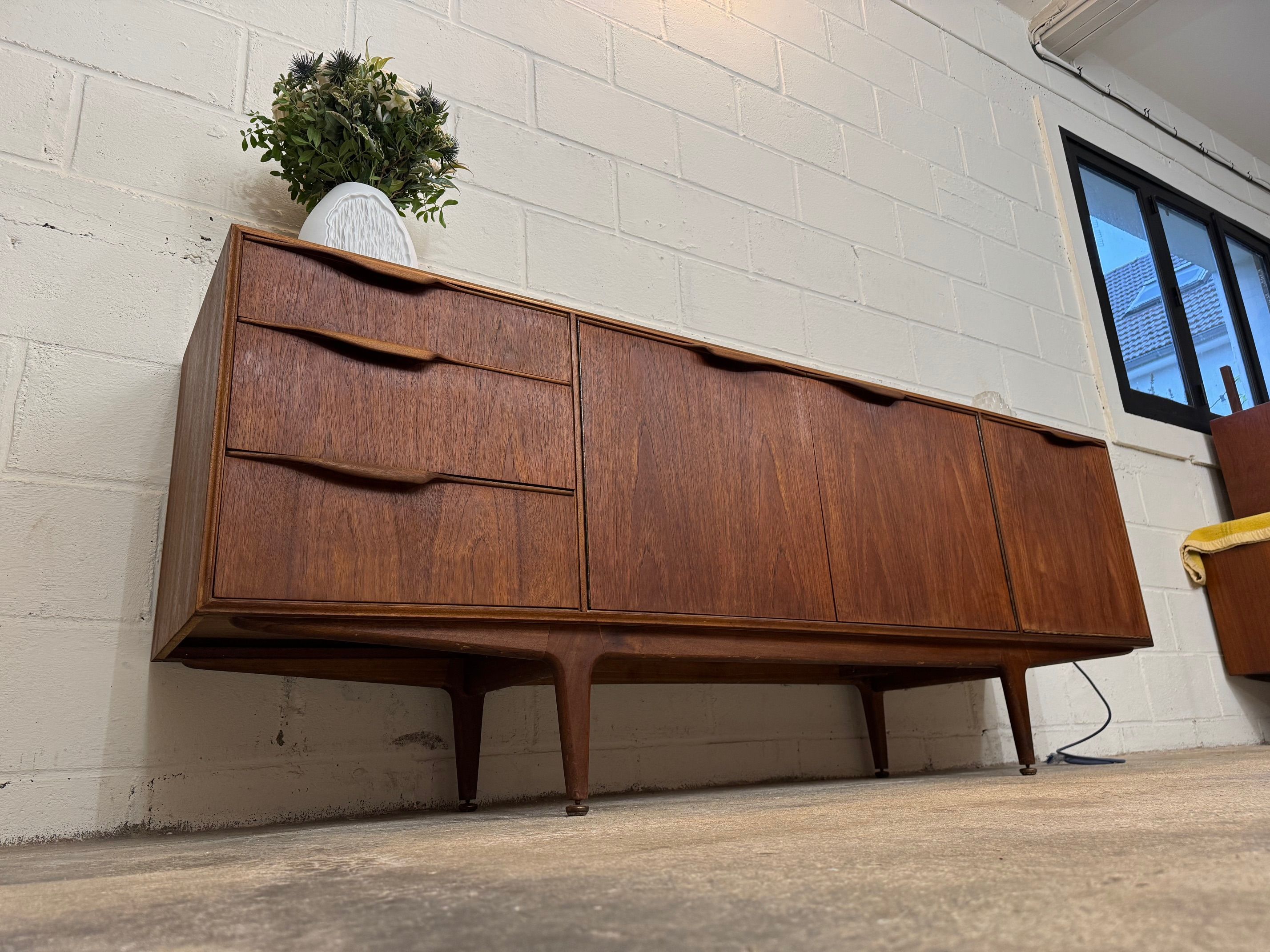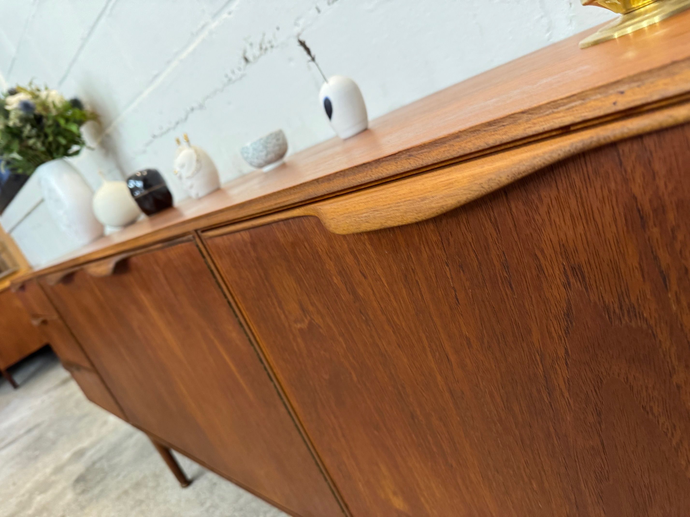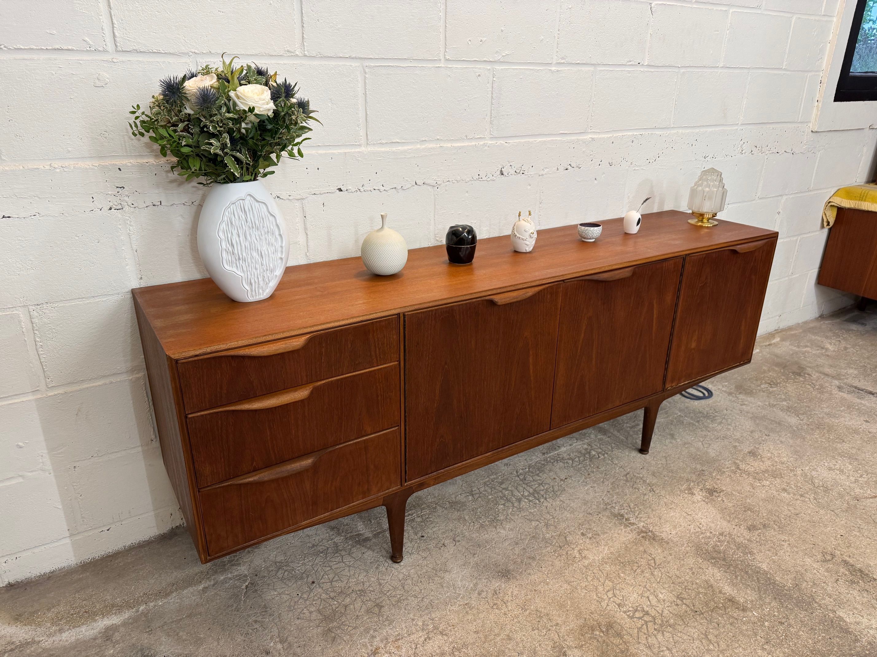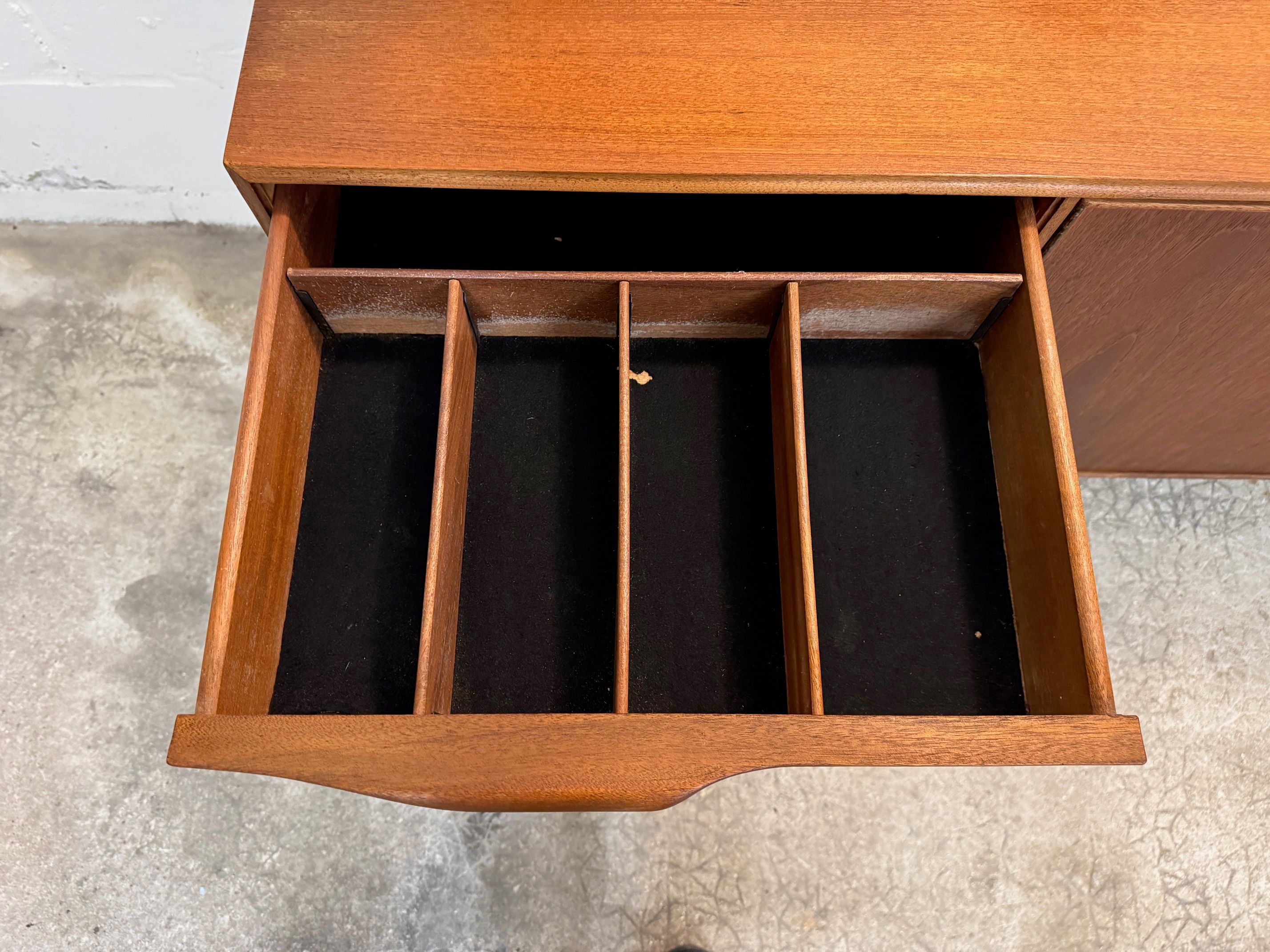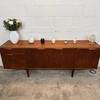 Une belle enfilade scandinave en teck, éditée par McIntosh au Royaume-Uni dans les années 60. Modèle Dunvegan disposant d'un espace bar avec une tablette de service coulissante. (Estampillée)