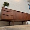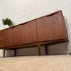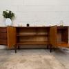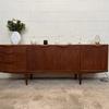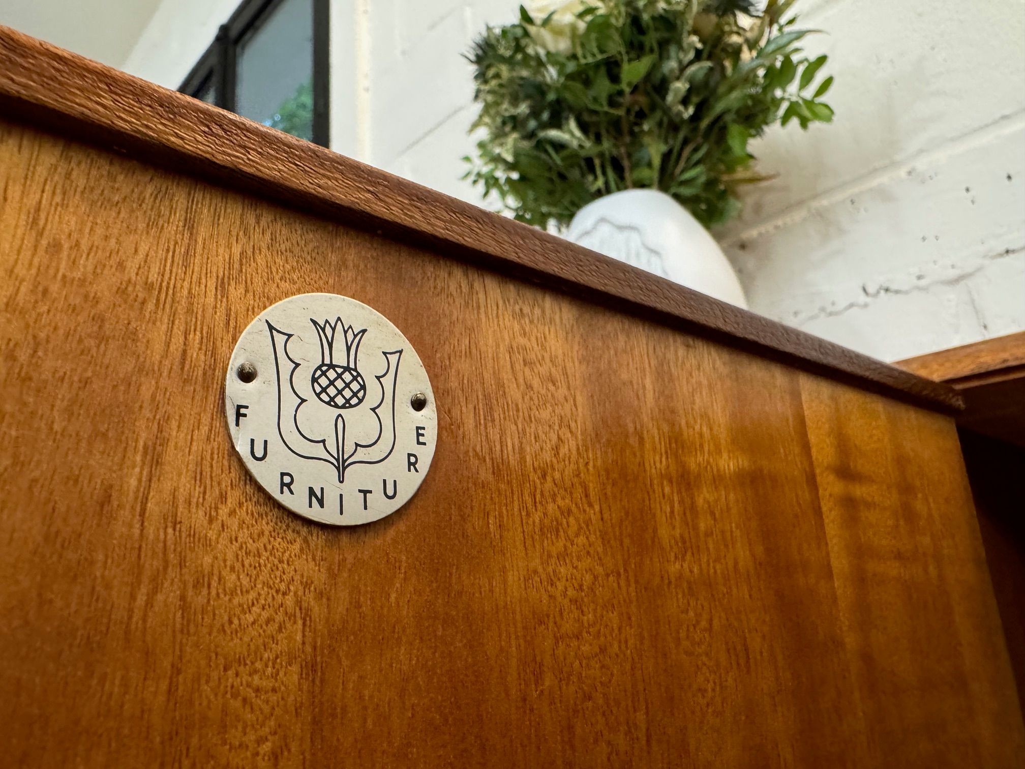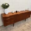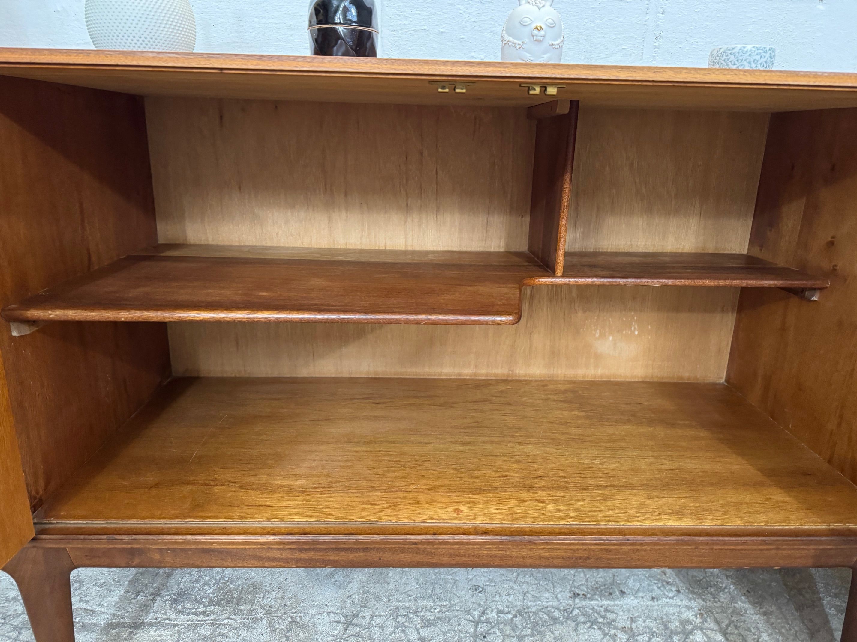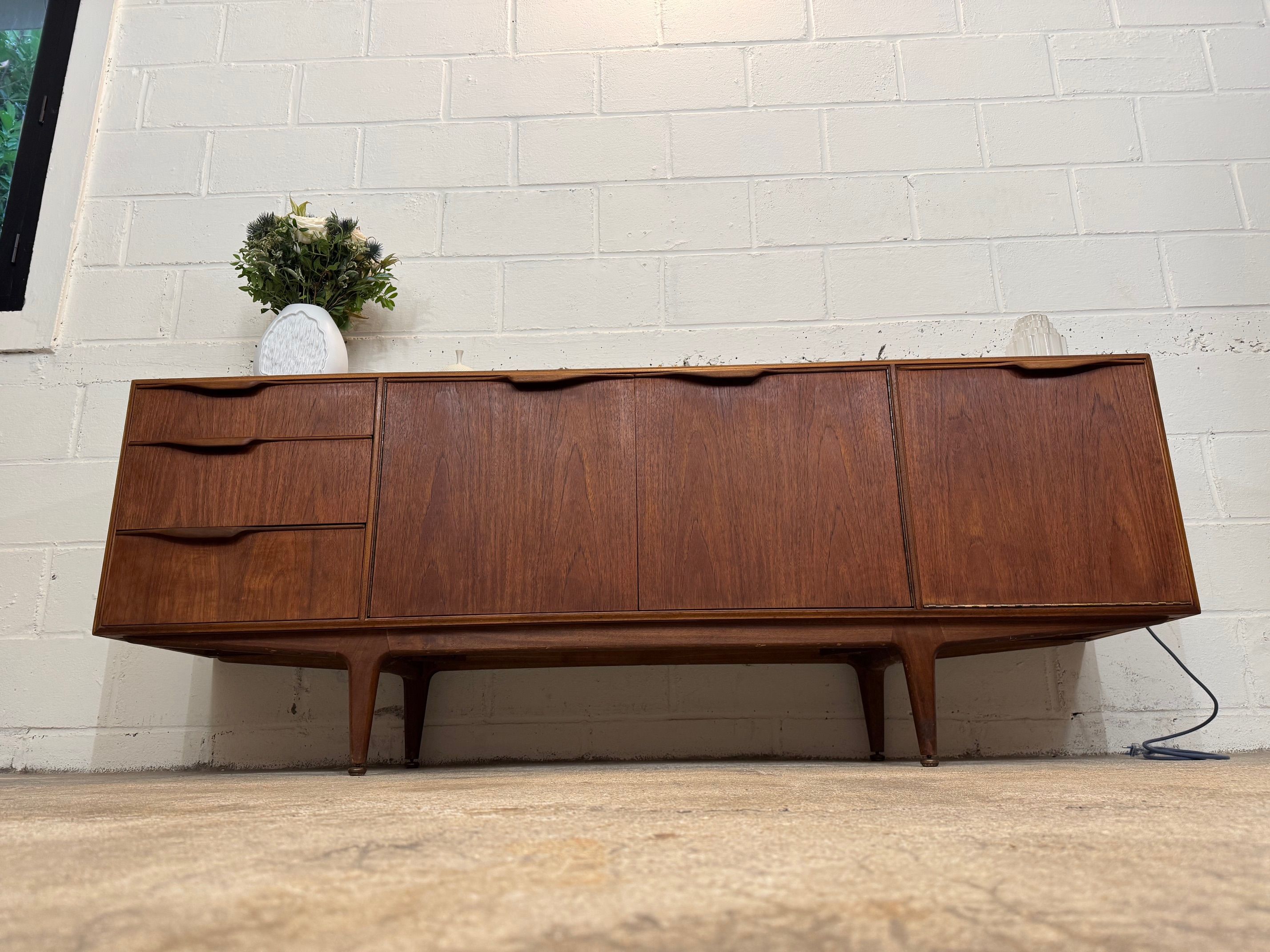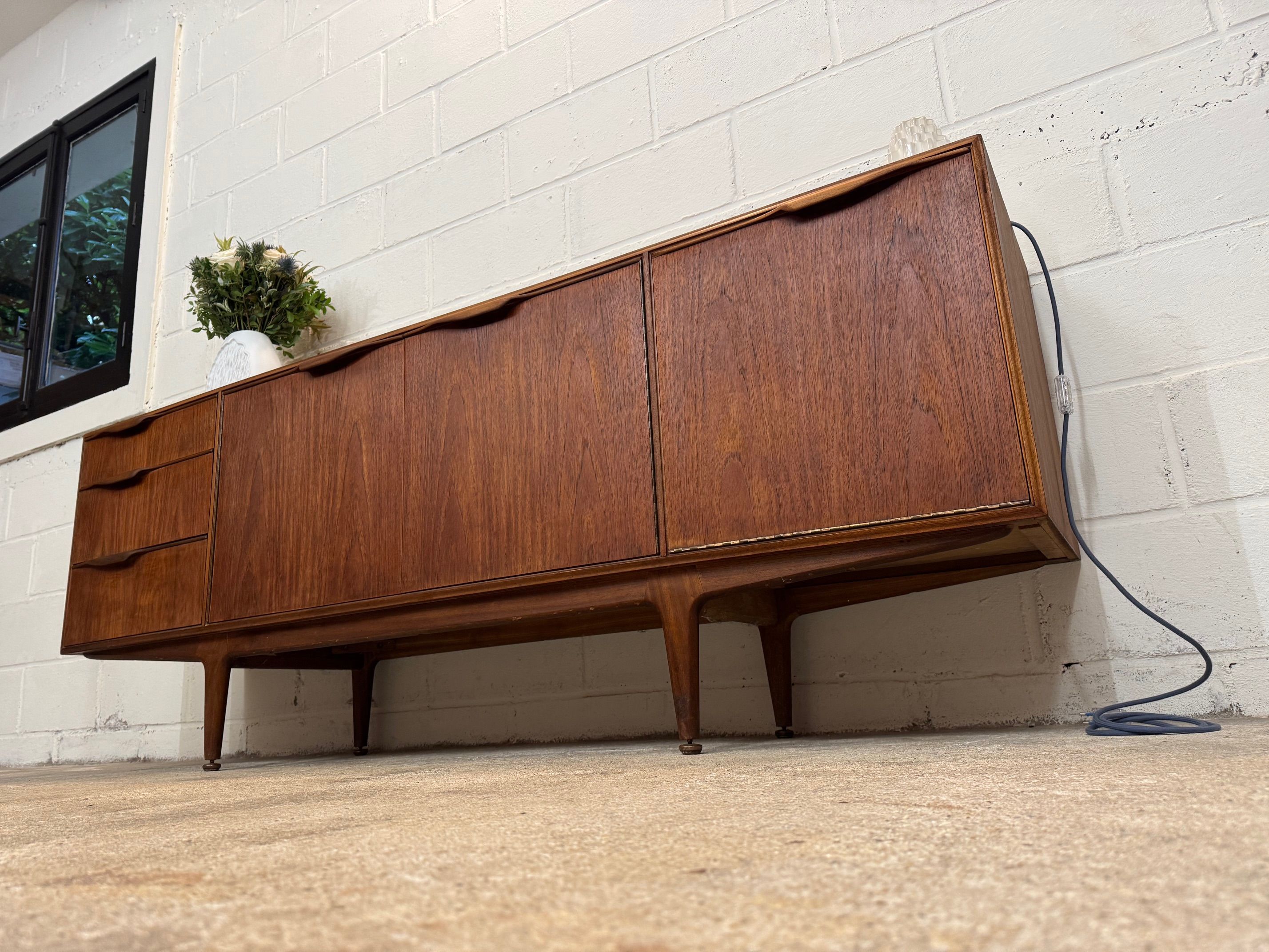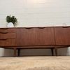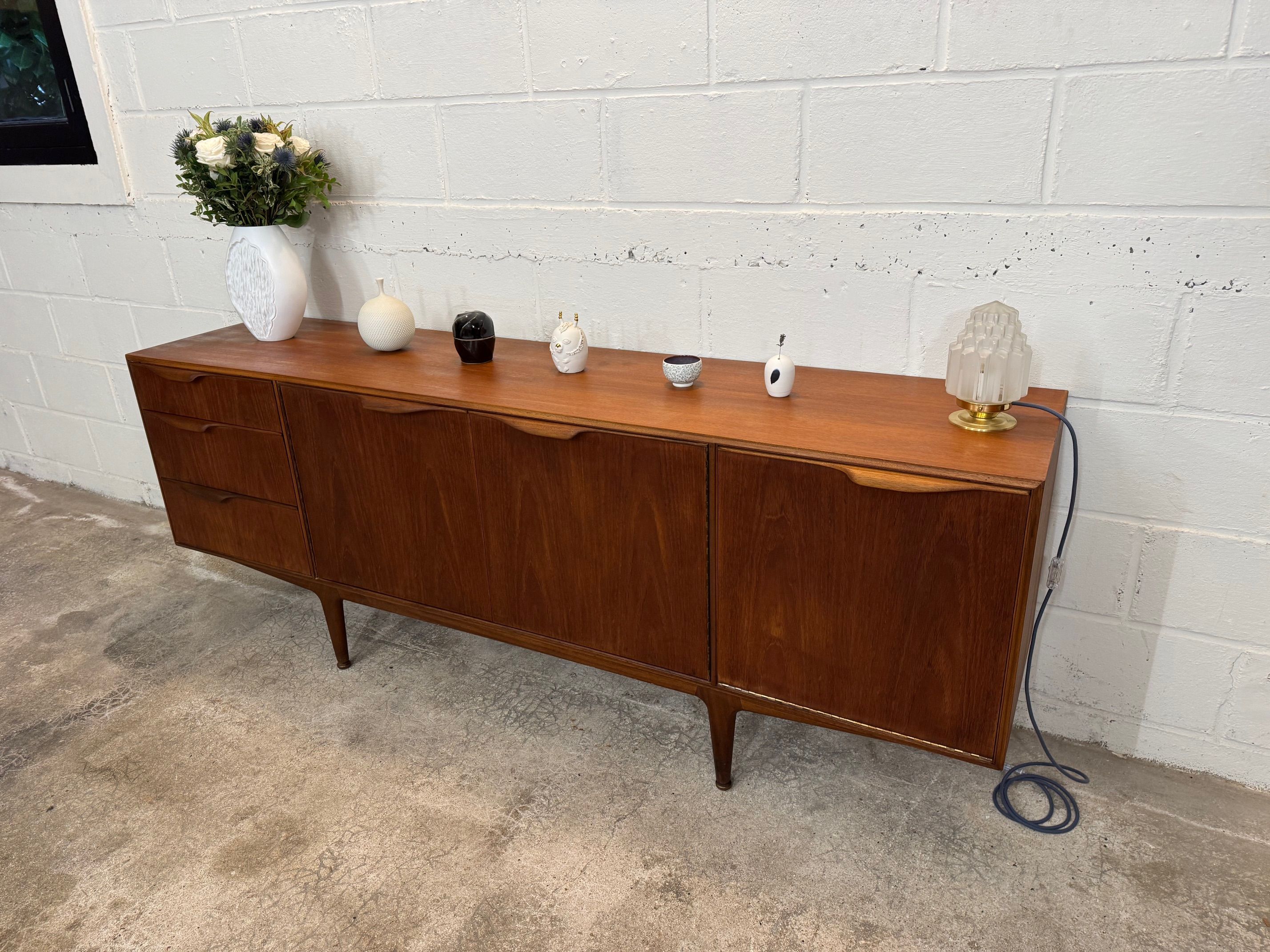 Une belle enfilade scandinave en teck, éditée par McIntosh au Royaume-Uni dans les années 60. Modèle Dunvegan disposant d'un espace bar avec une tablette de service coulissante. (Estampillée)
