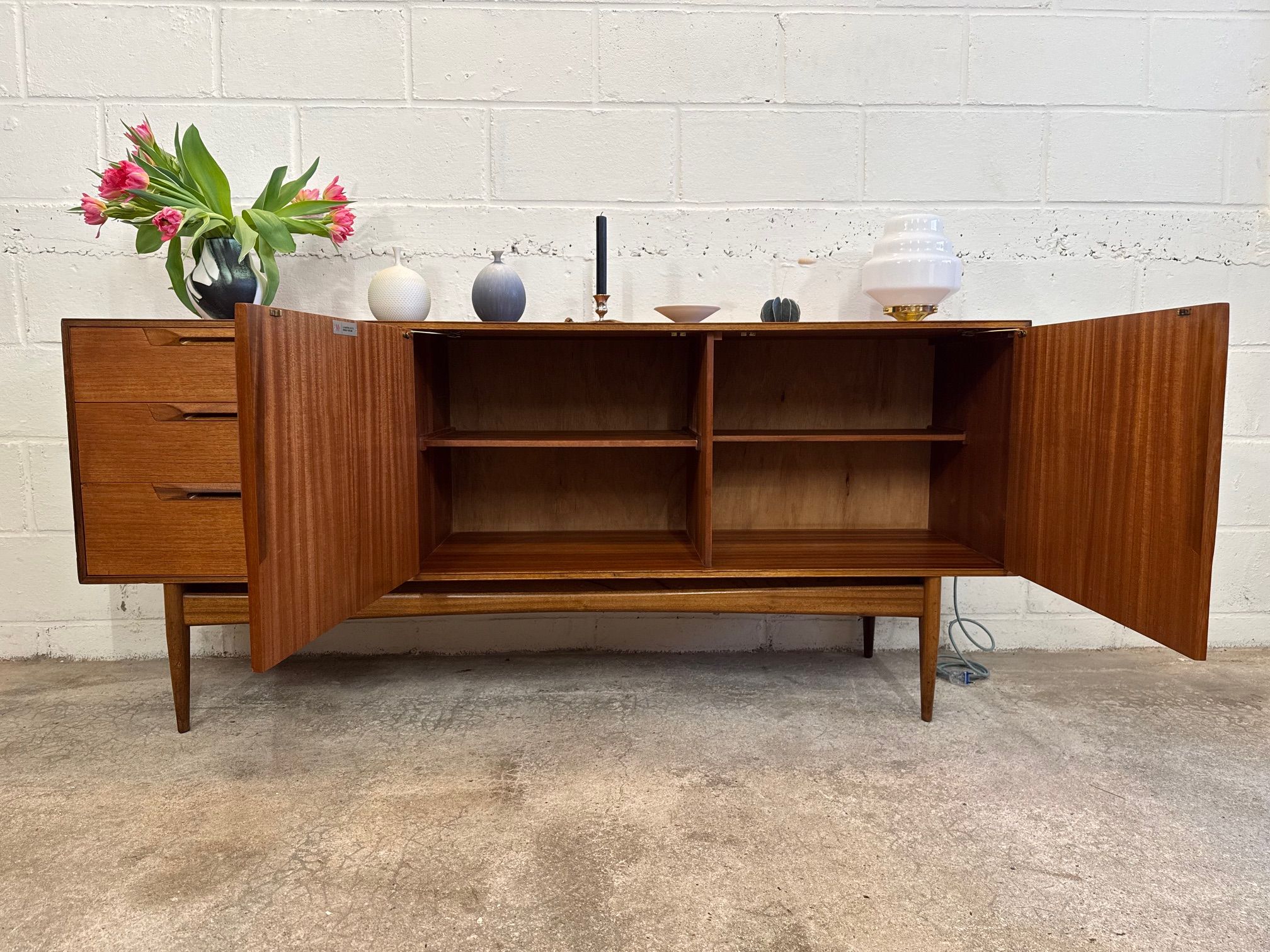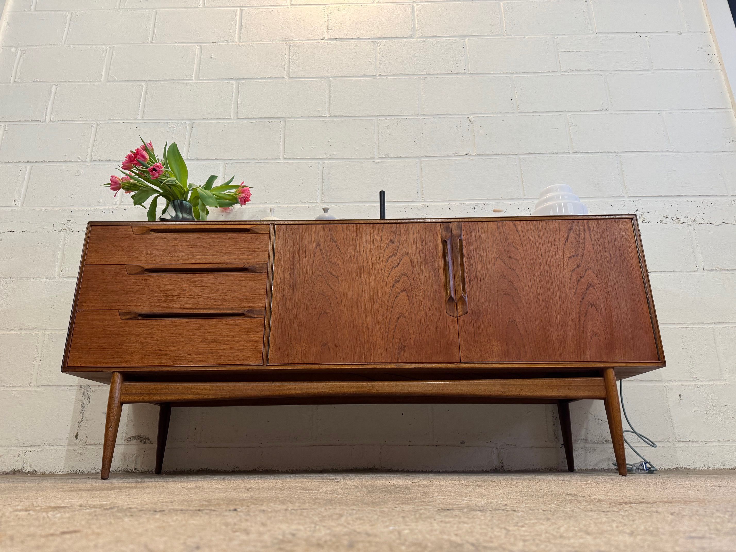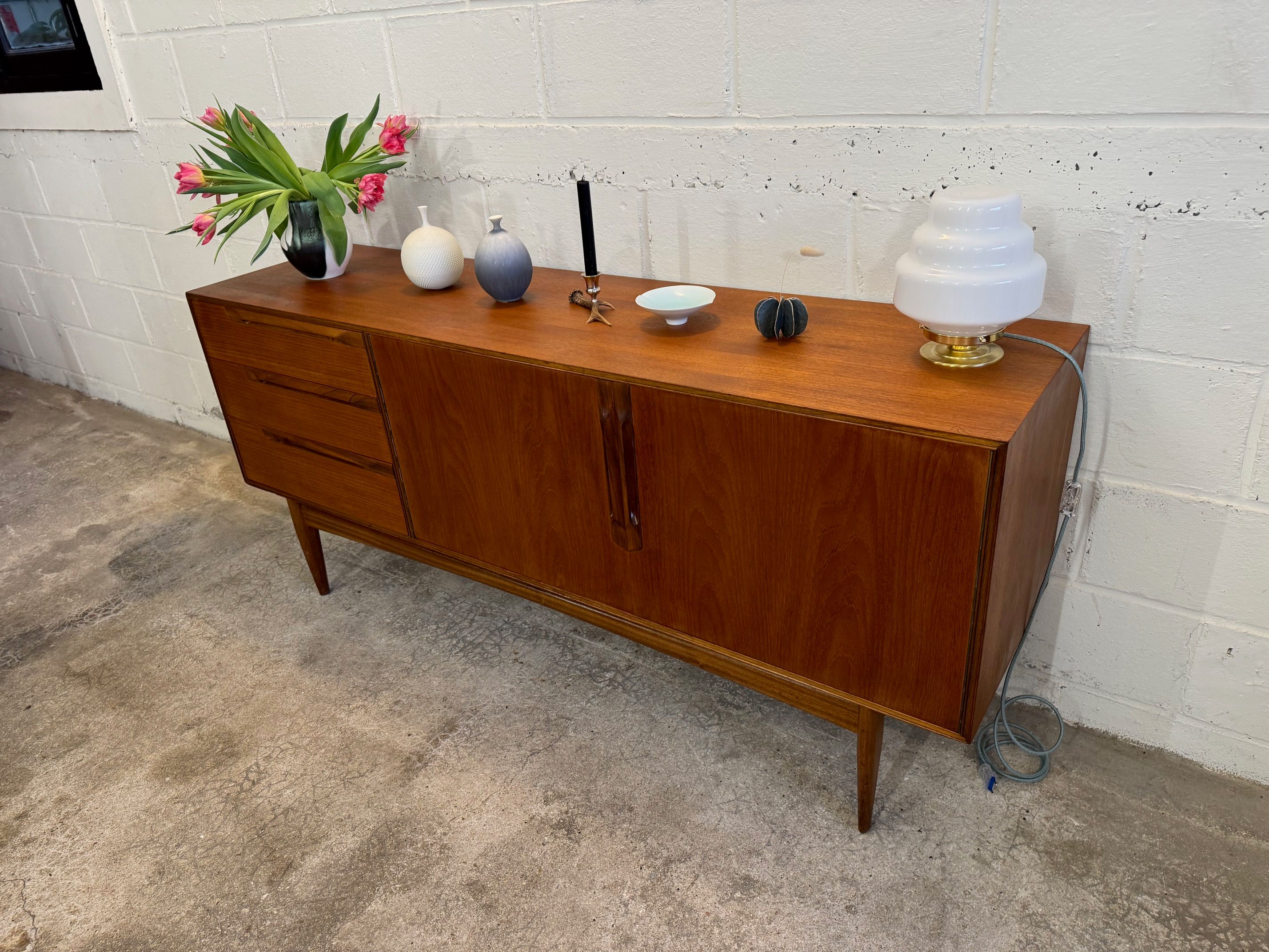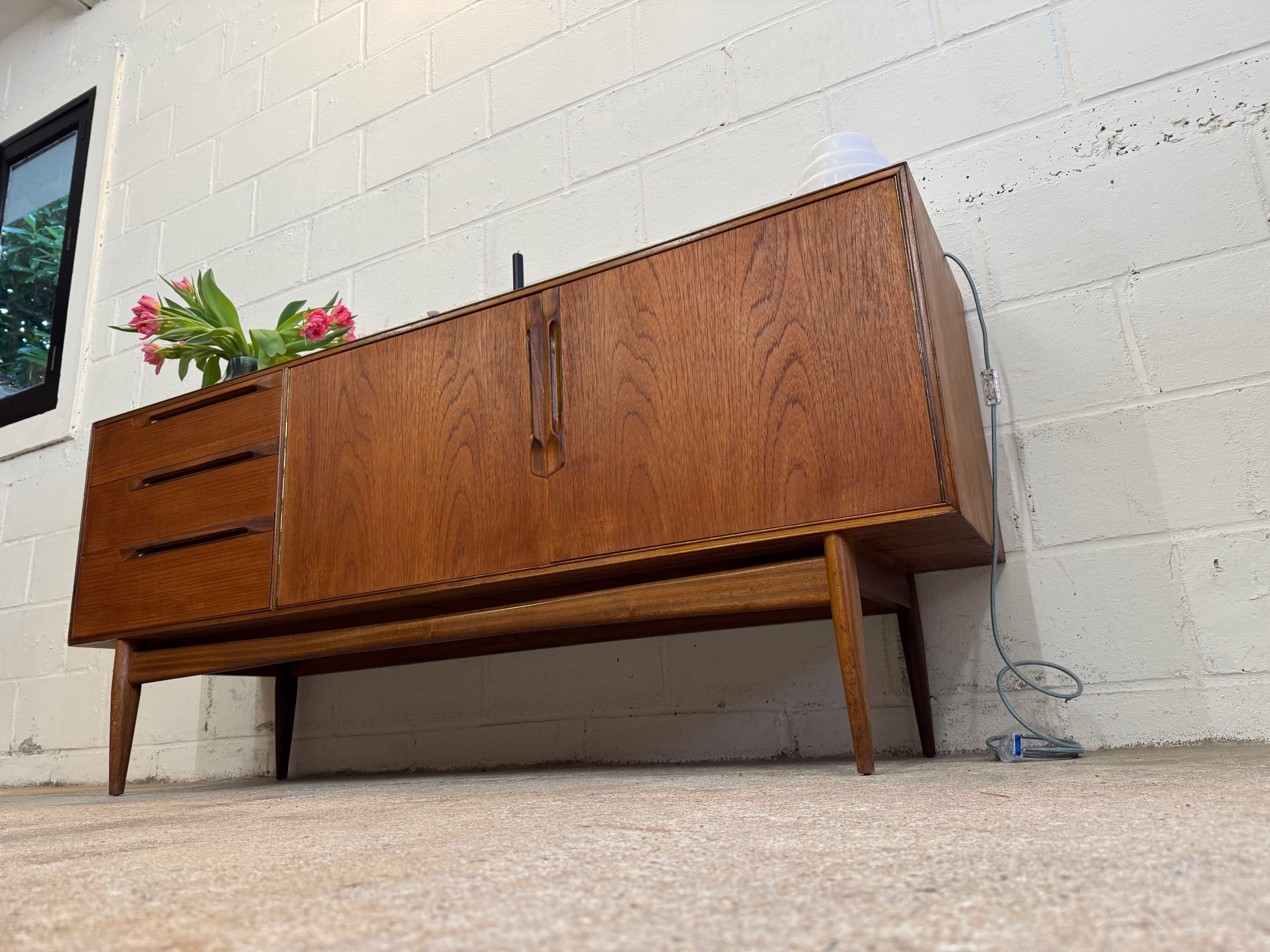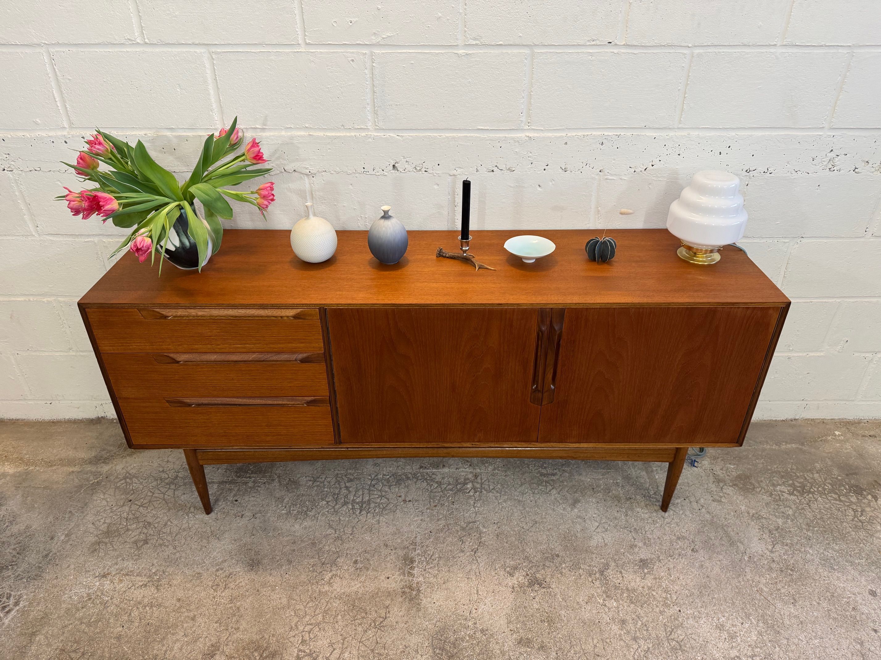 Une belle enfilade minimaliste, éditée par McIntosh au Royaume-Uni dans les années 60. Piétement élégant, bonne capacité de rangement.