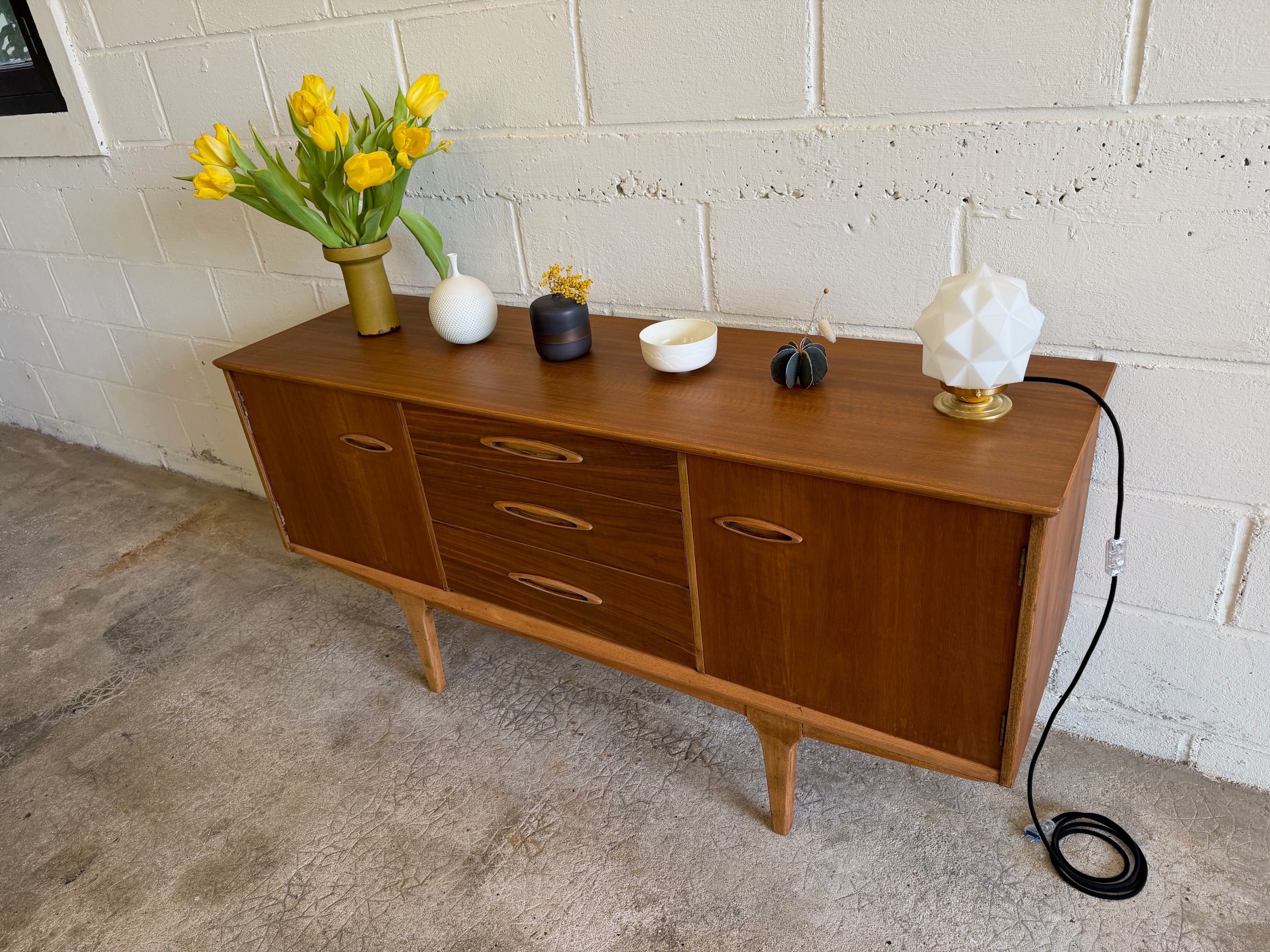 Ce mobilier est en très bon état pour son âge mais comme tout mobilier vintage il peut conserver quelques traces de vie et d'usage. Il sera parfaitement à sa place avec du mobilier scandinave, rétro années 50/60/70 ou industriel.