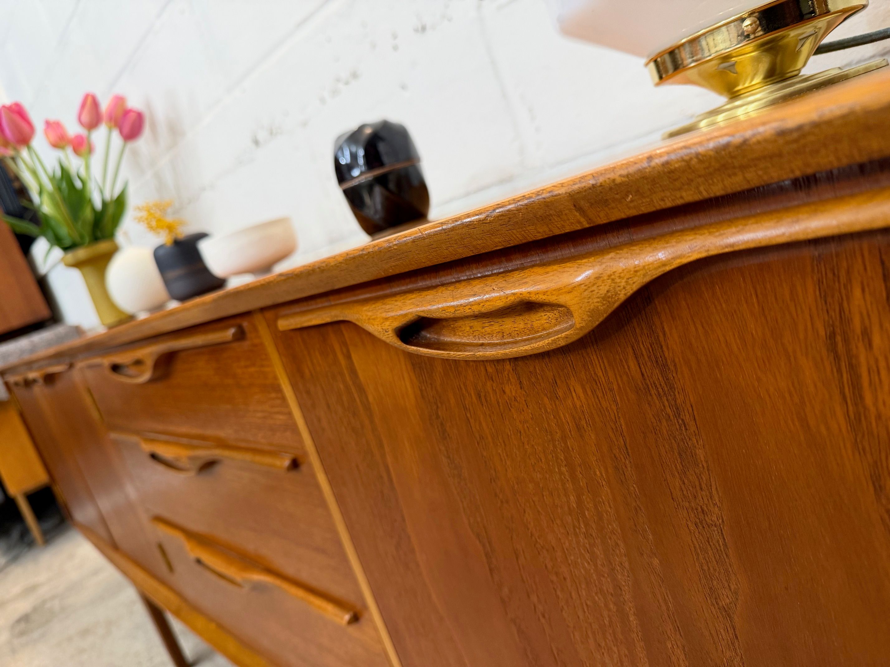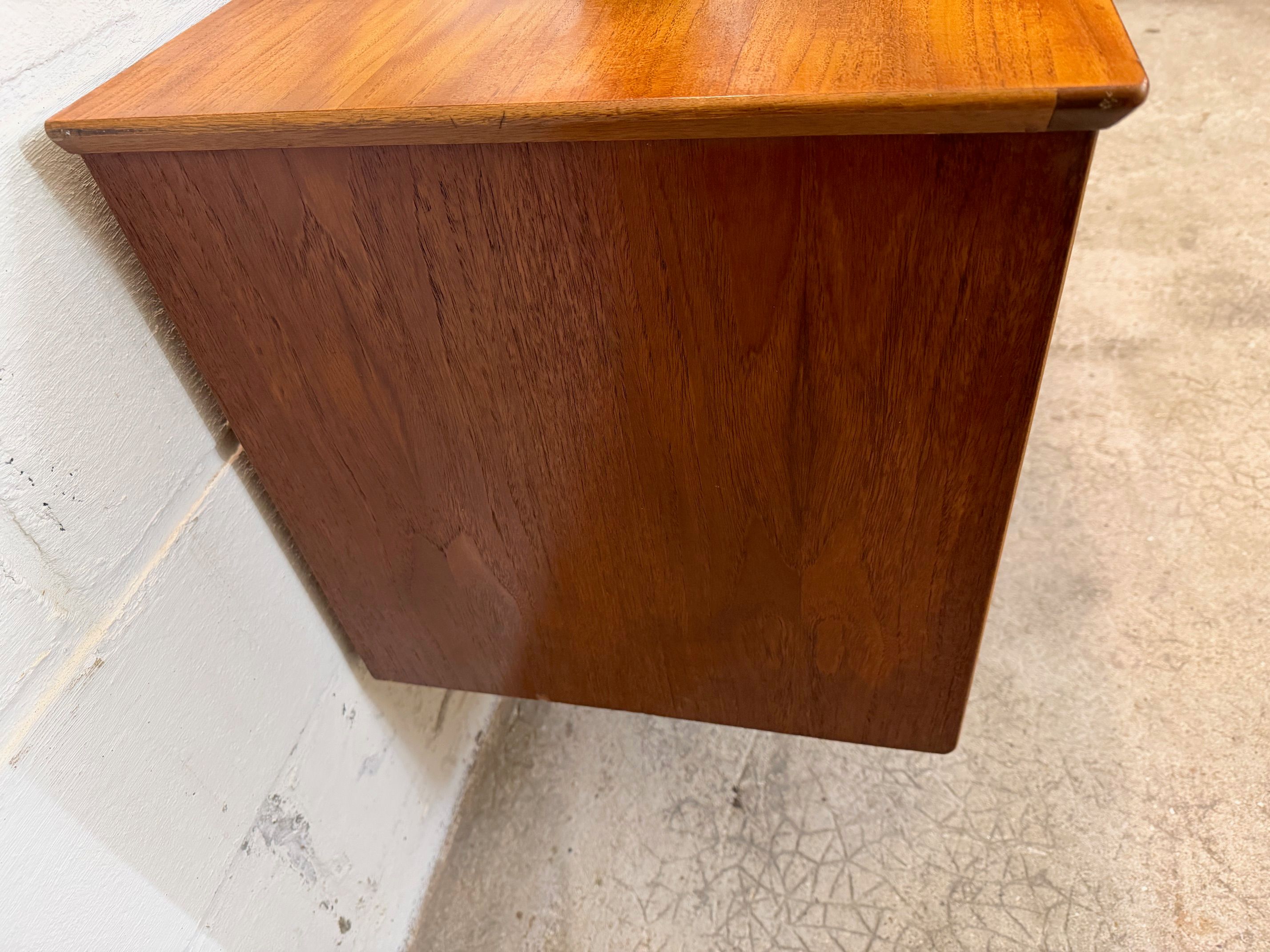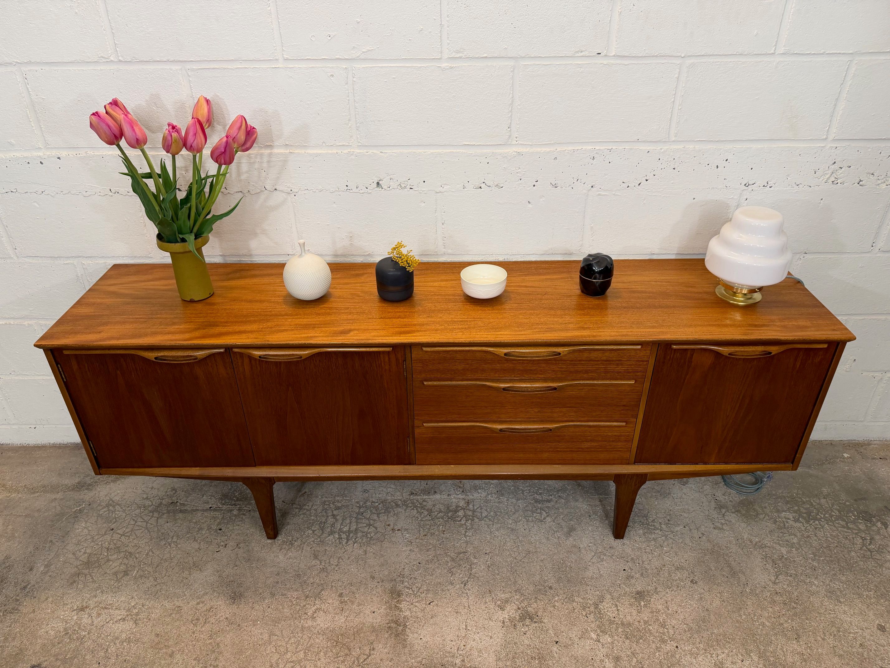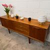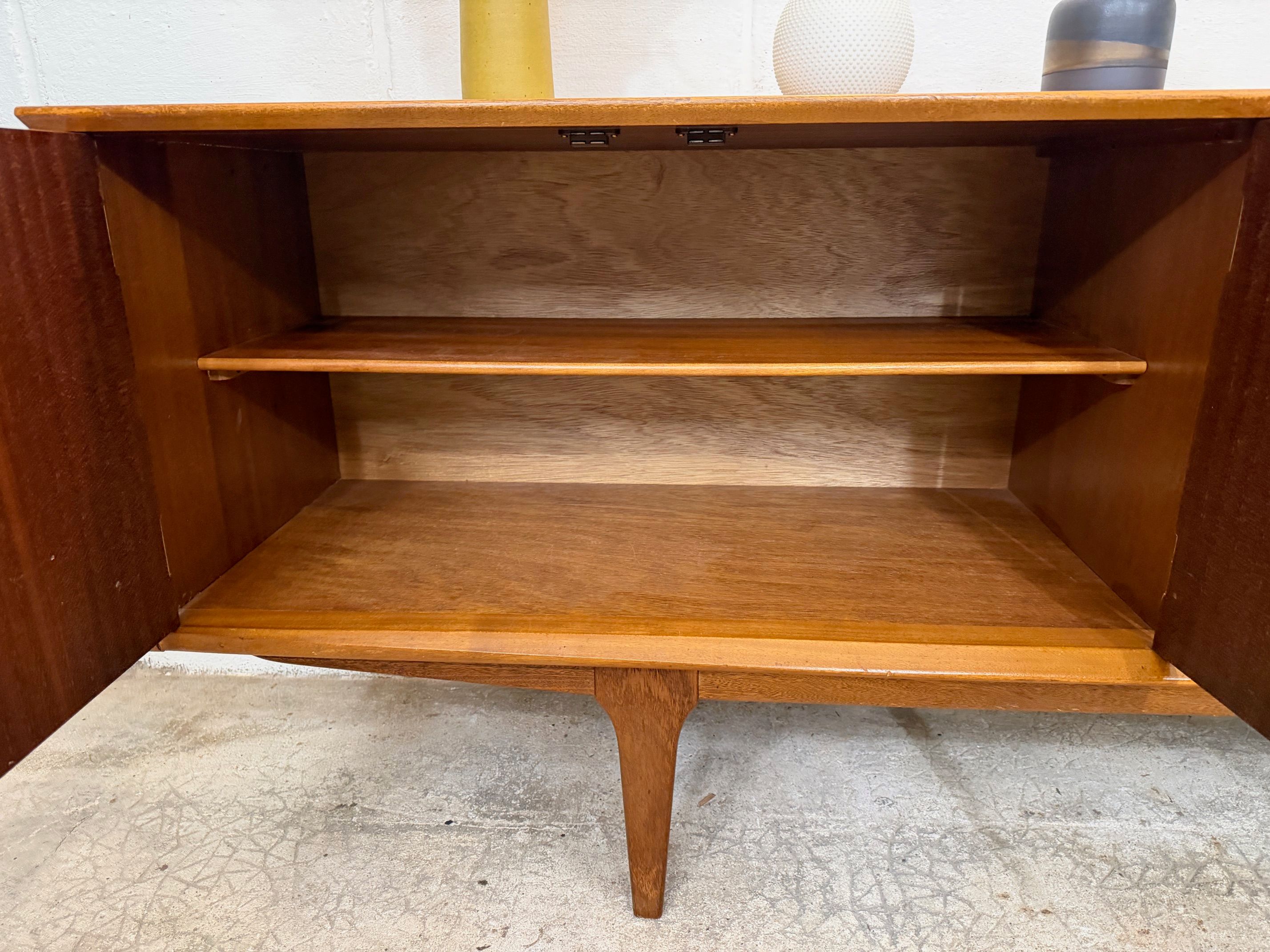 Une grande et belle enfilade scandinave en teck, éditée en Angleterre par Jentique dans les années 60. Elle offre une bonne capacité de rangement, dont un espace bar.