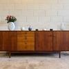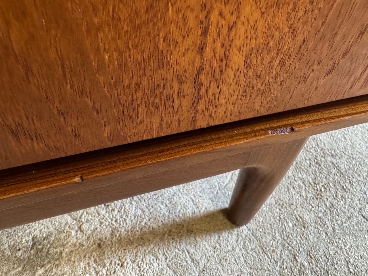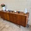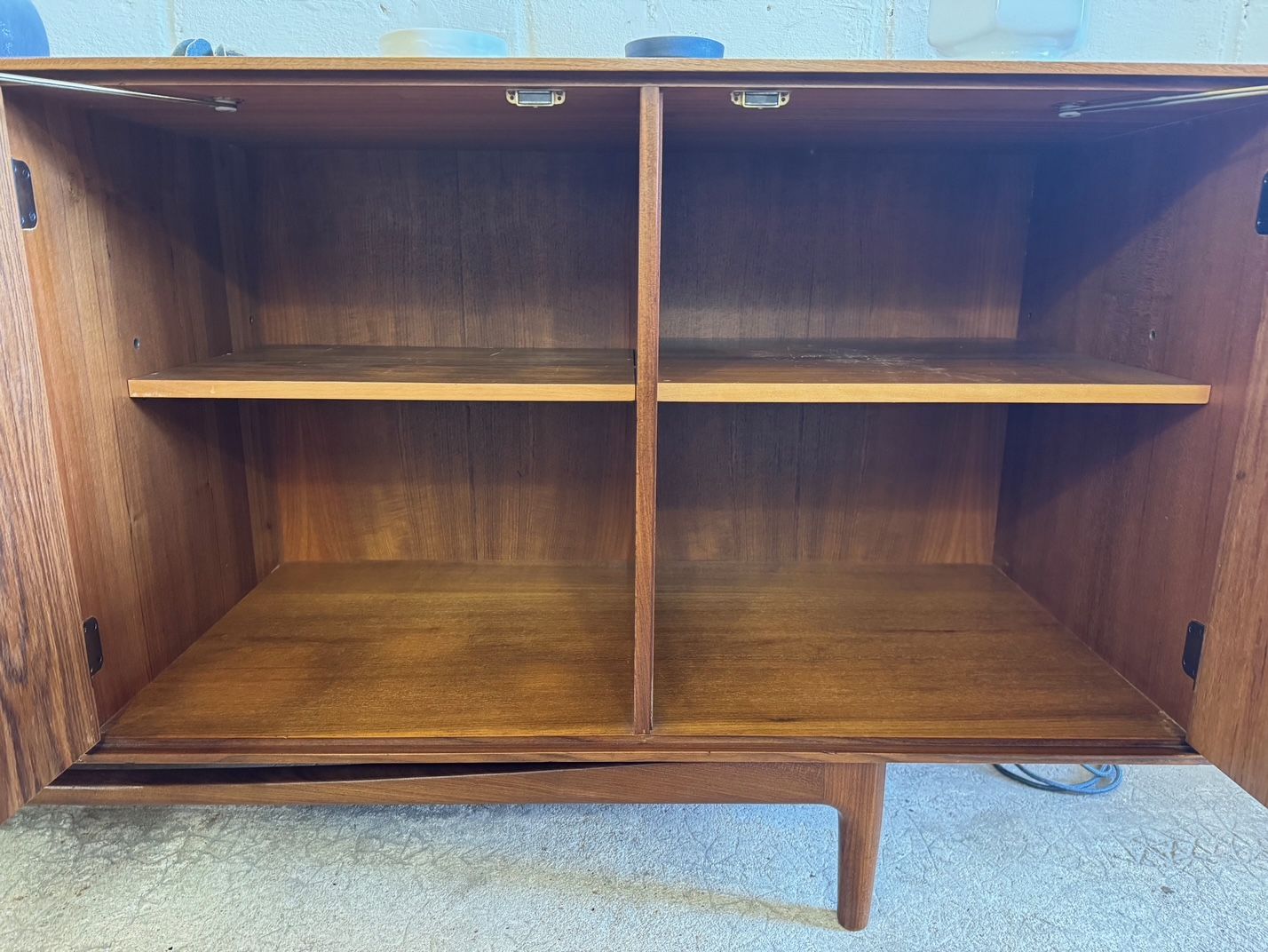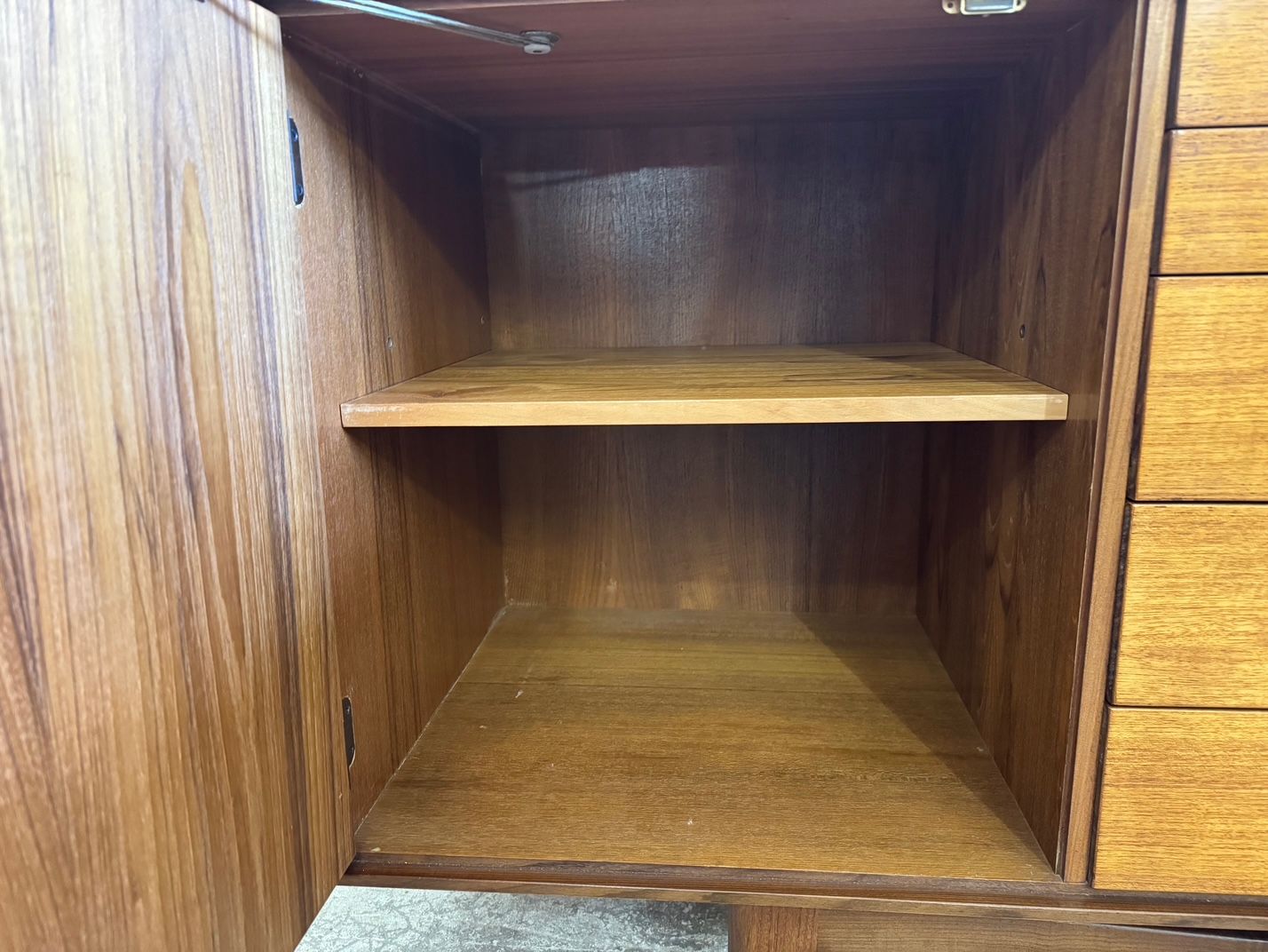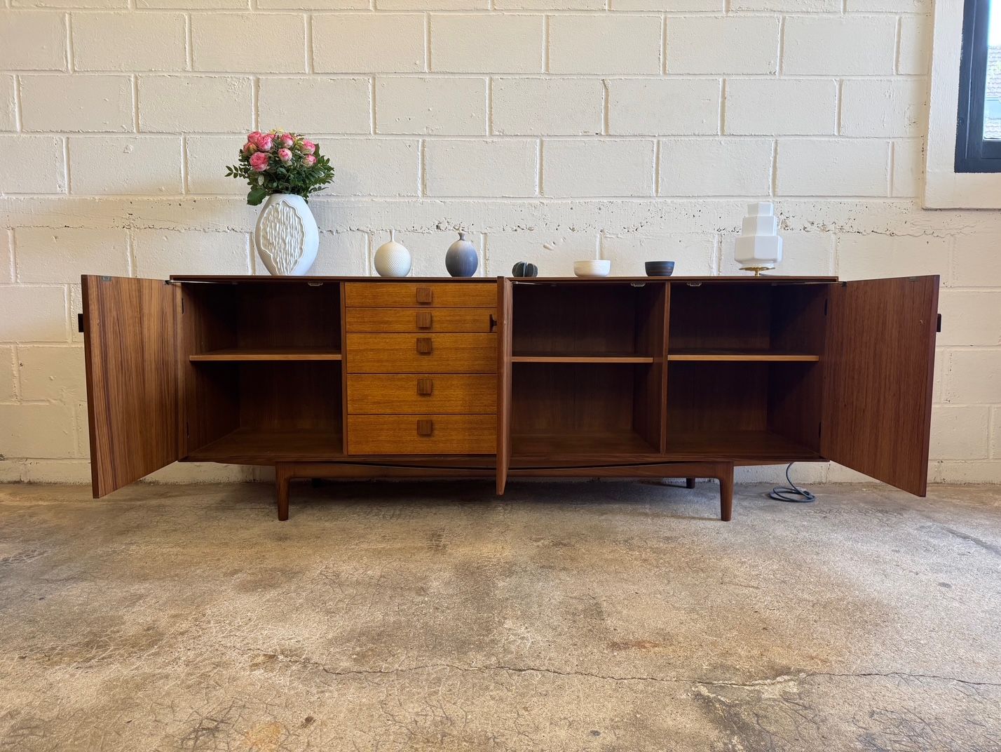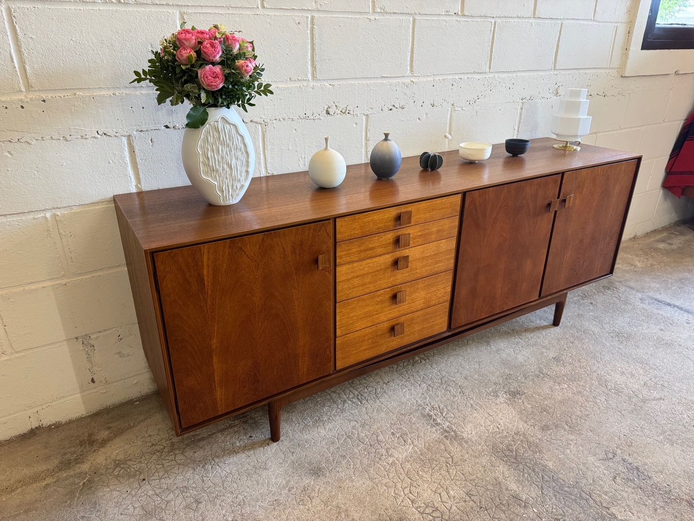 Une très belle enfilade en teck, pour G-Plan par Kofod Larsen dans les années 60. Elle offre une bonne capacité de rangement.