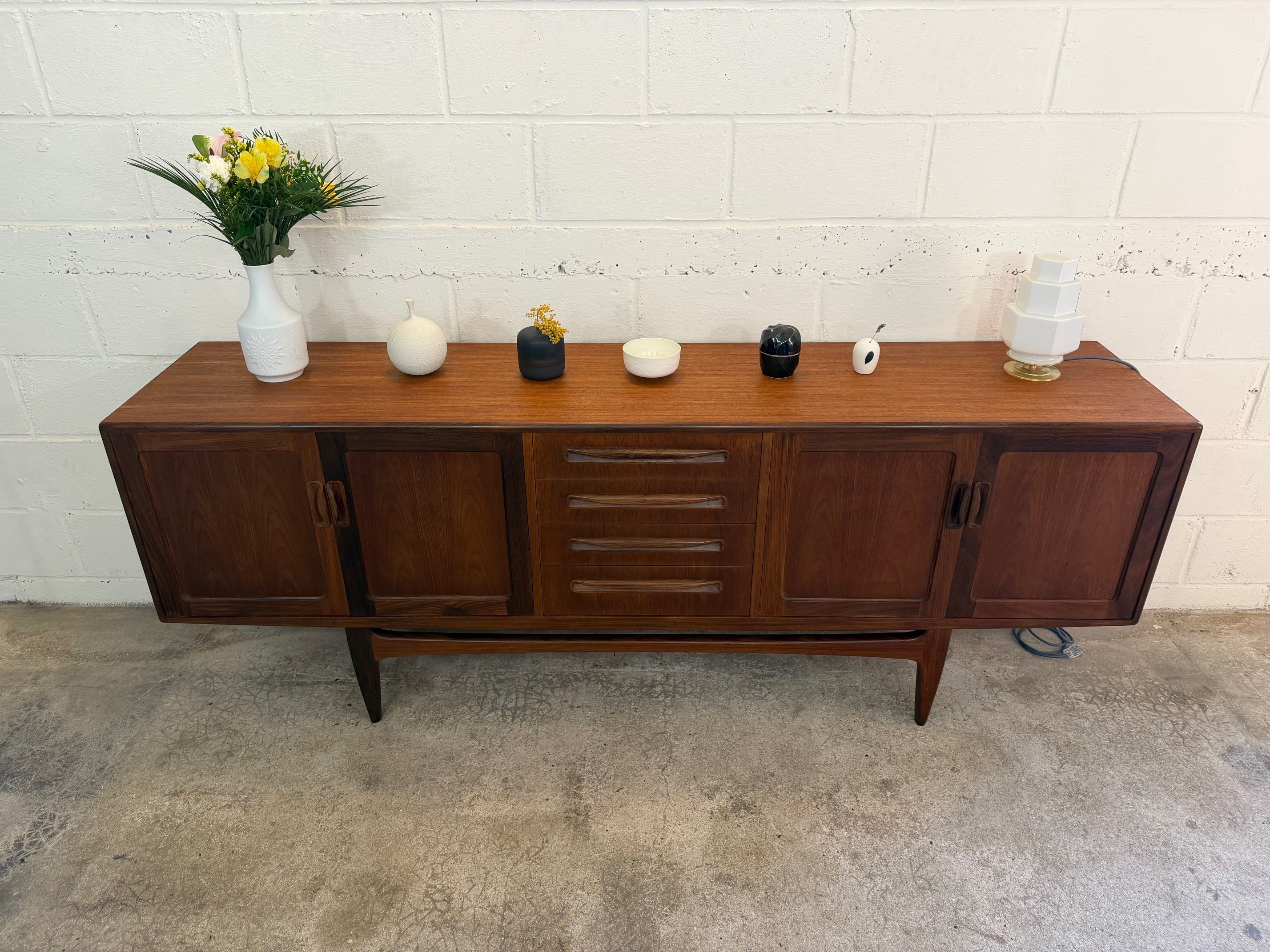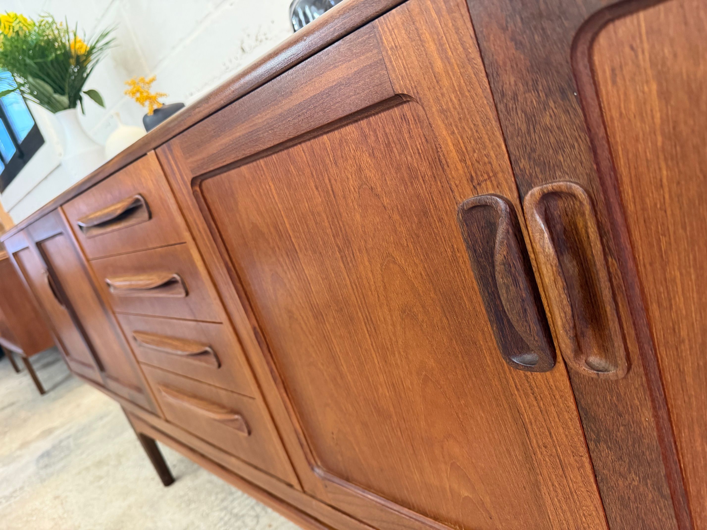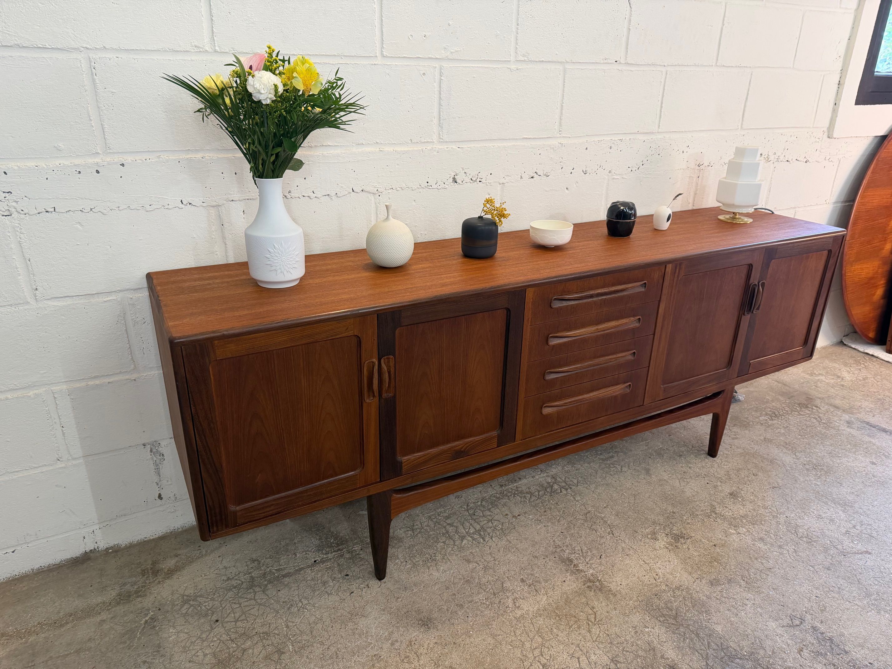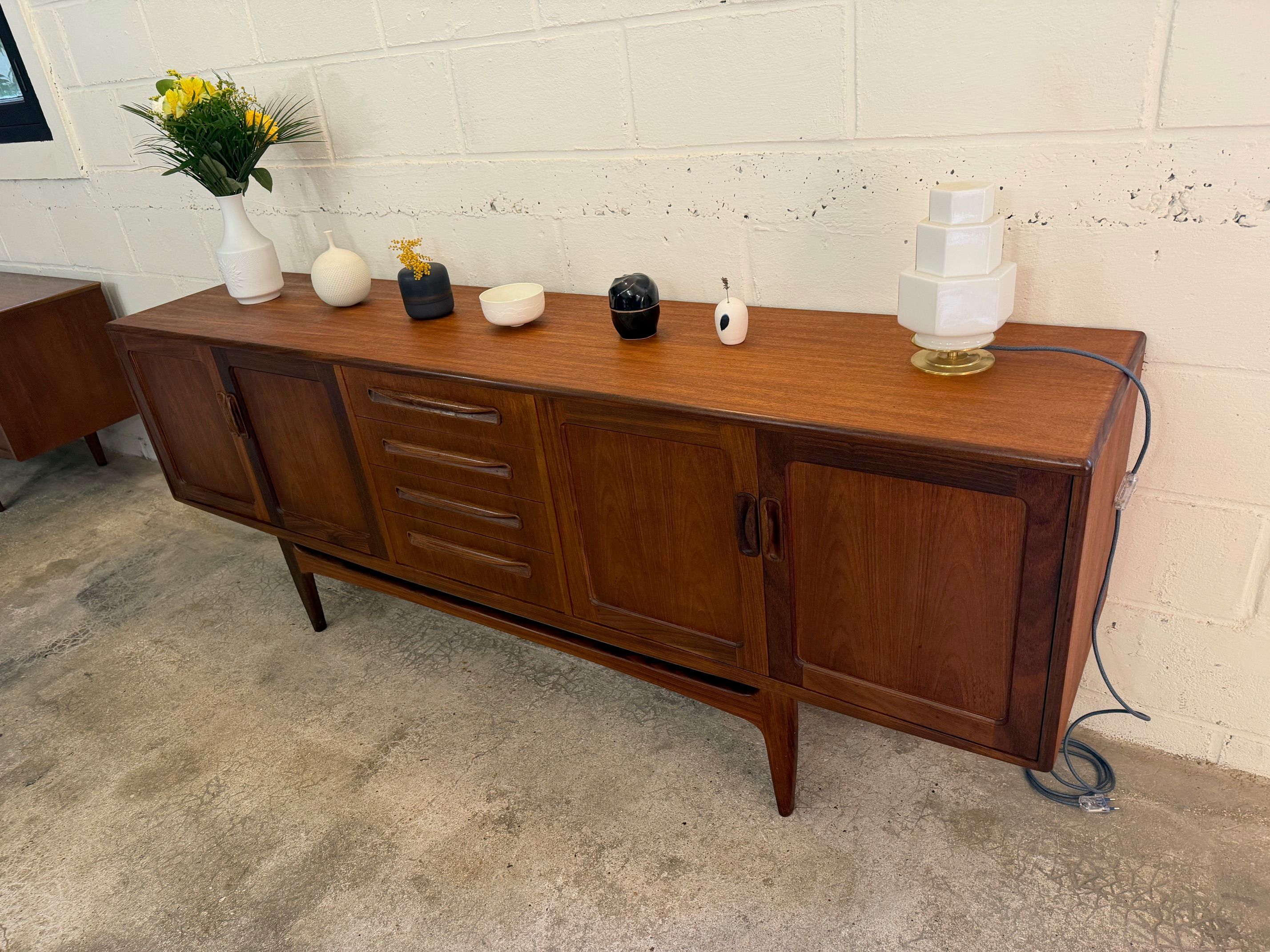 Une belle enfilade en teck, éditée par G-Plan au Royaume-Uni dans les années 60. Il s'agit du grand modèle Fresco par Victor Wilkins.