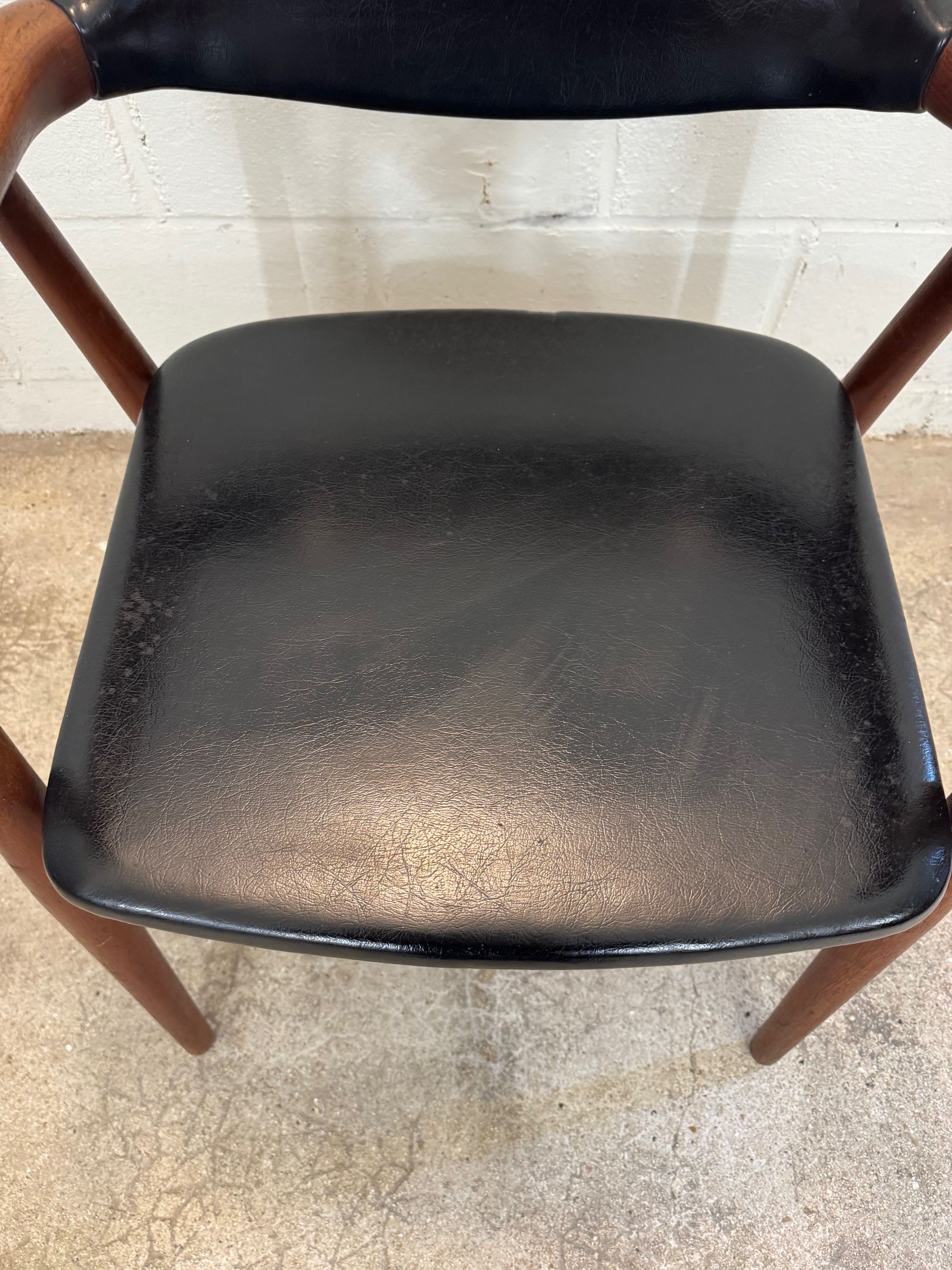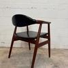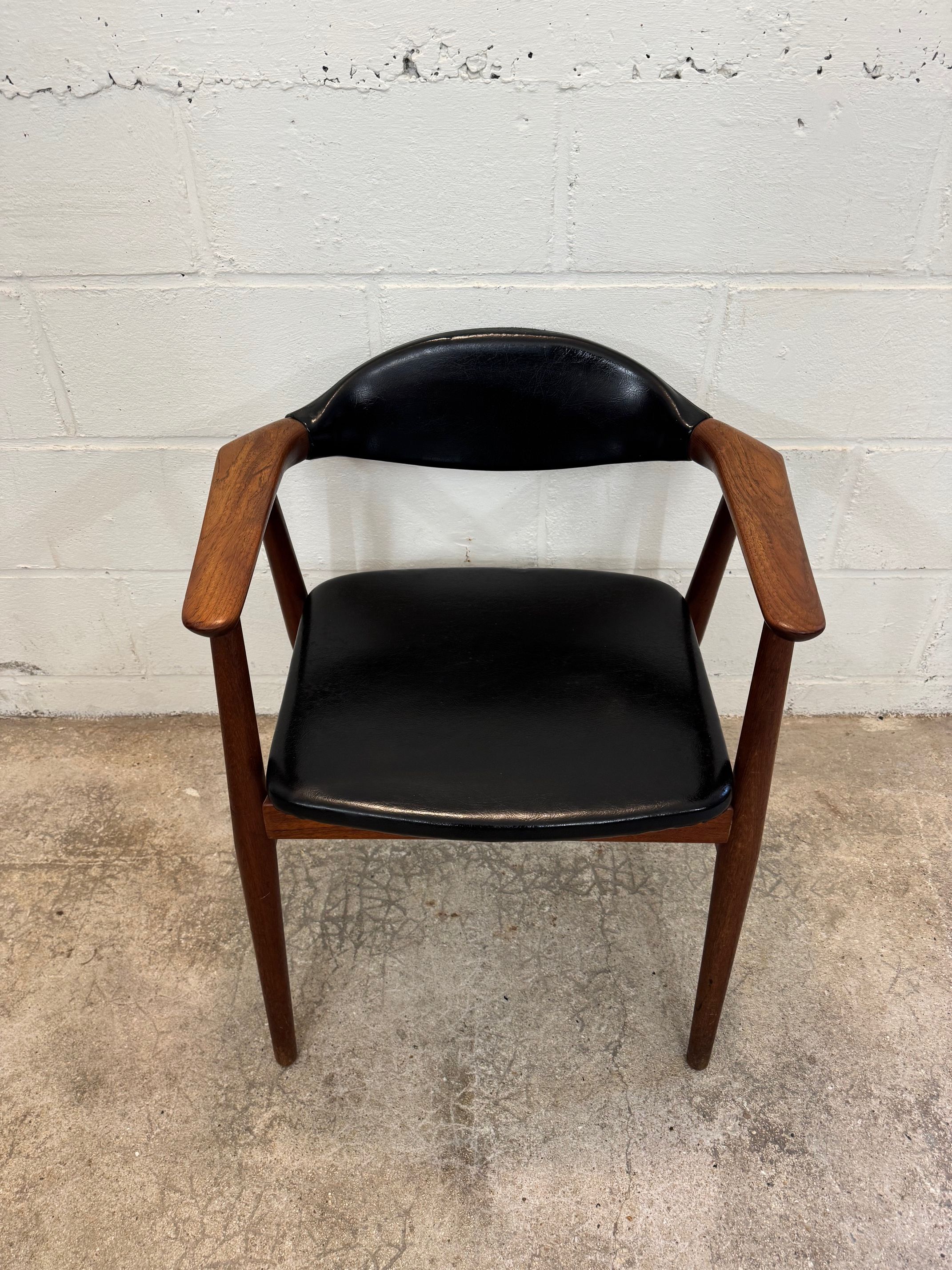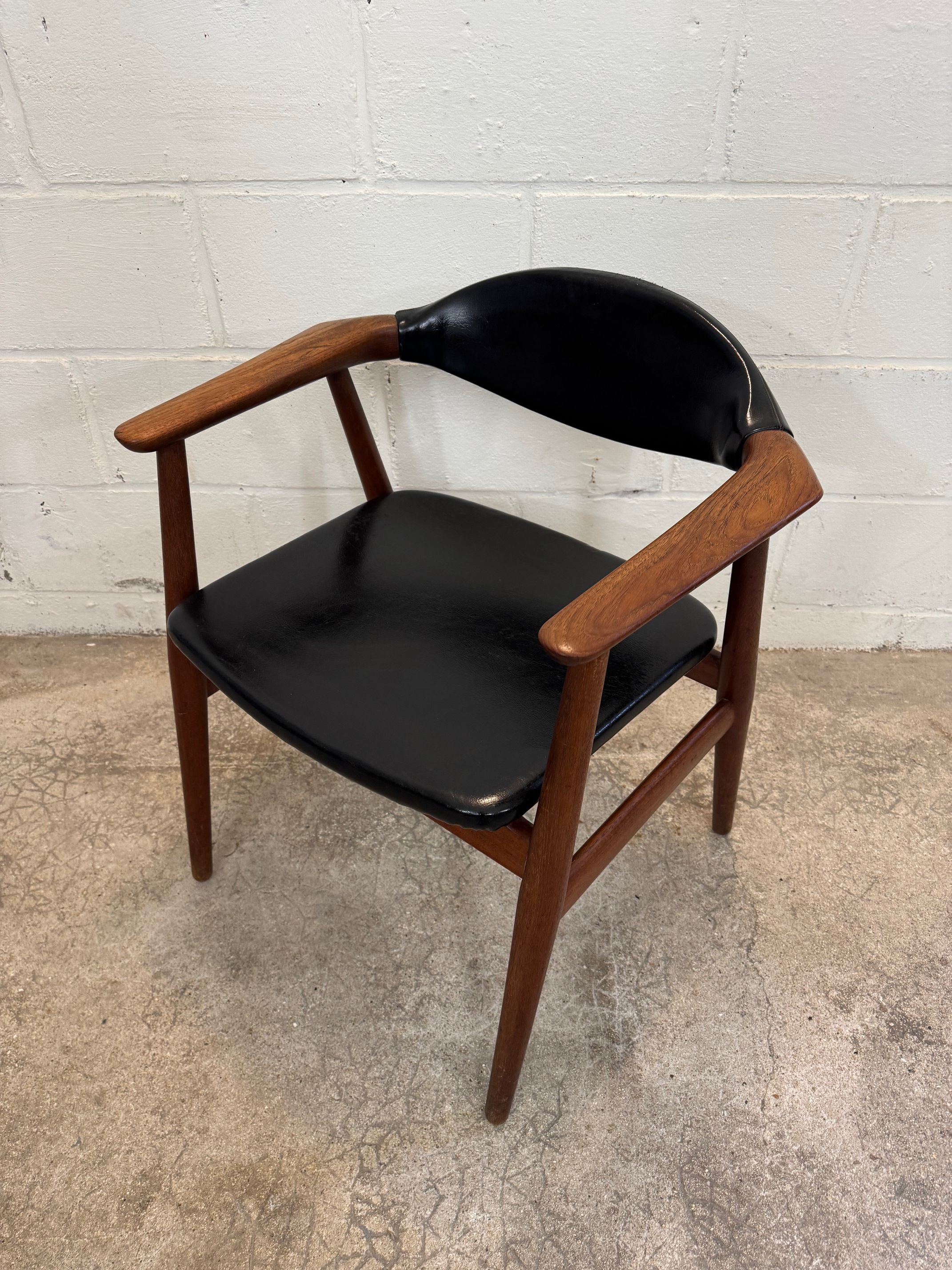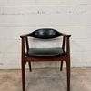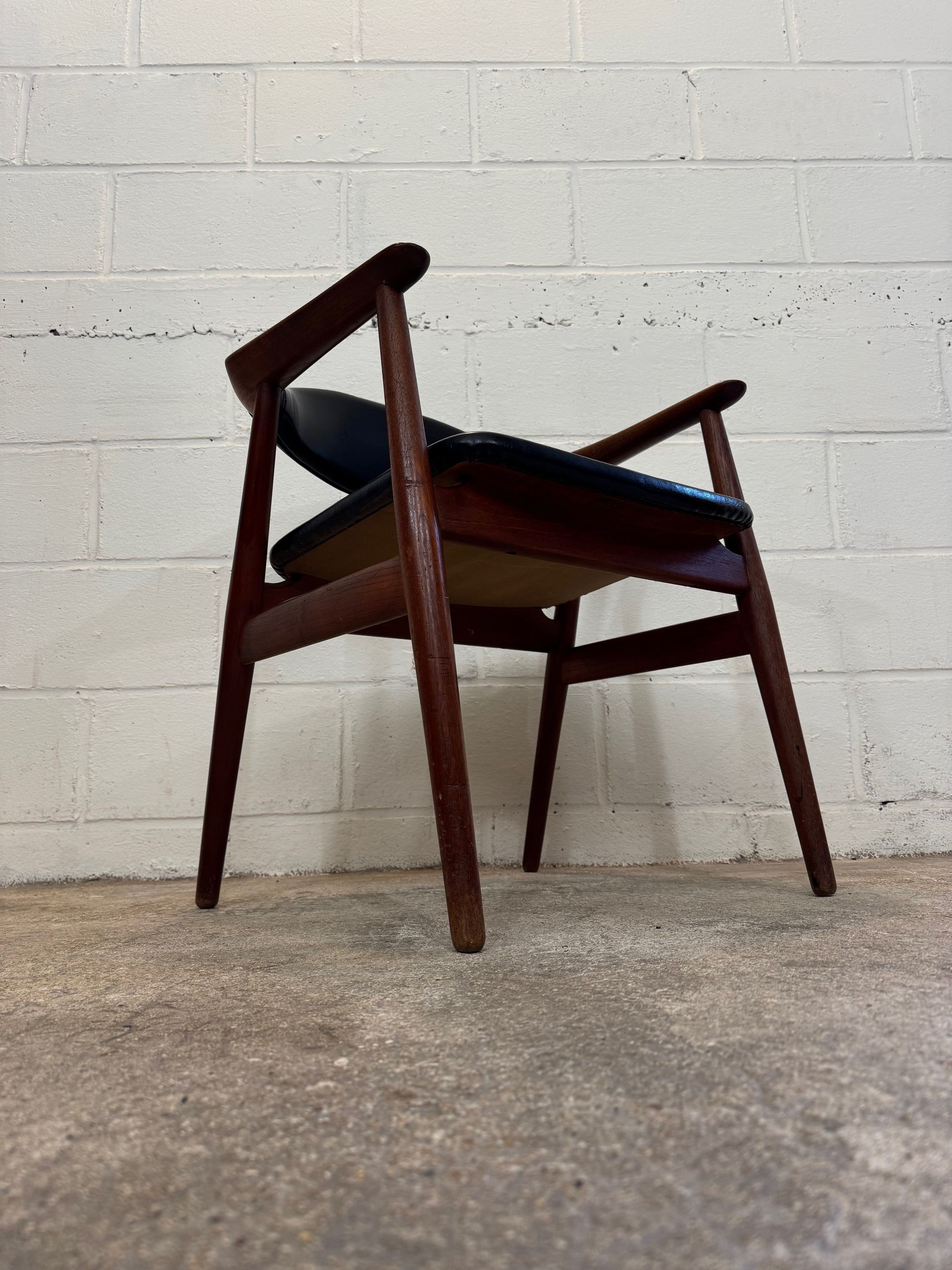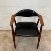 Fauteuil en teck et skaï noir, modèle GM11 de Svend Aage Eriksen pour Glostrup, édité au Danemark dans les années 1960. Une ligne très élégante avec des accoudoirs en flèche.