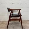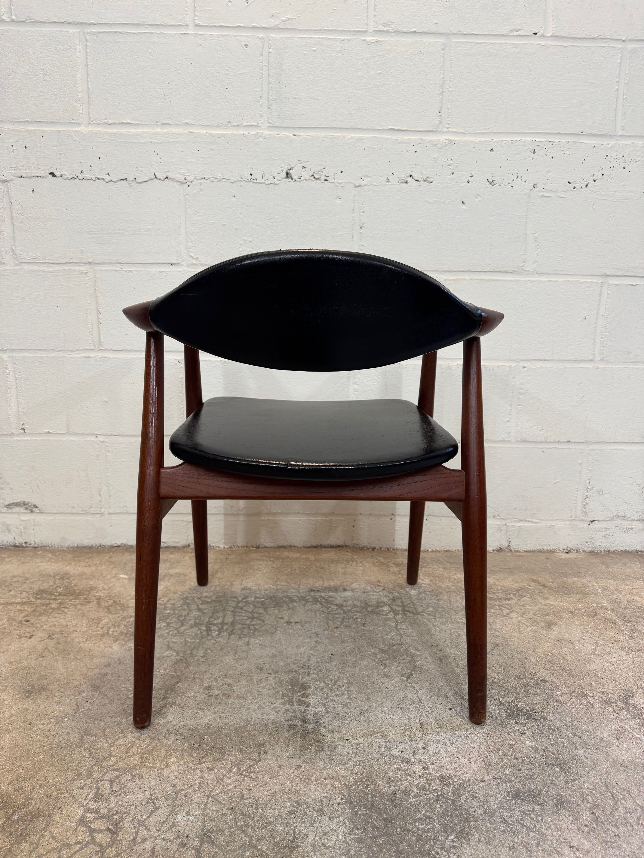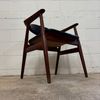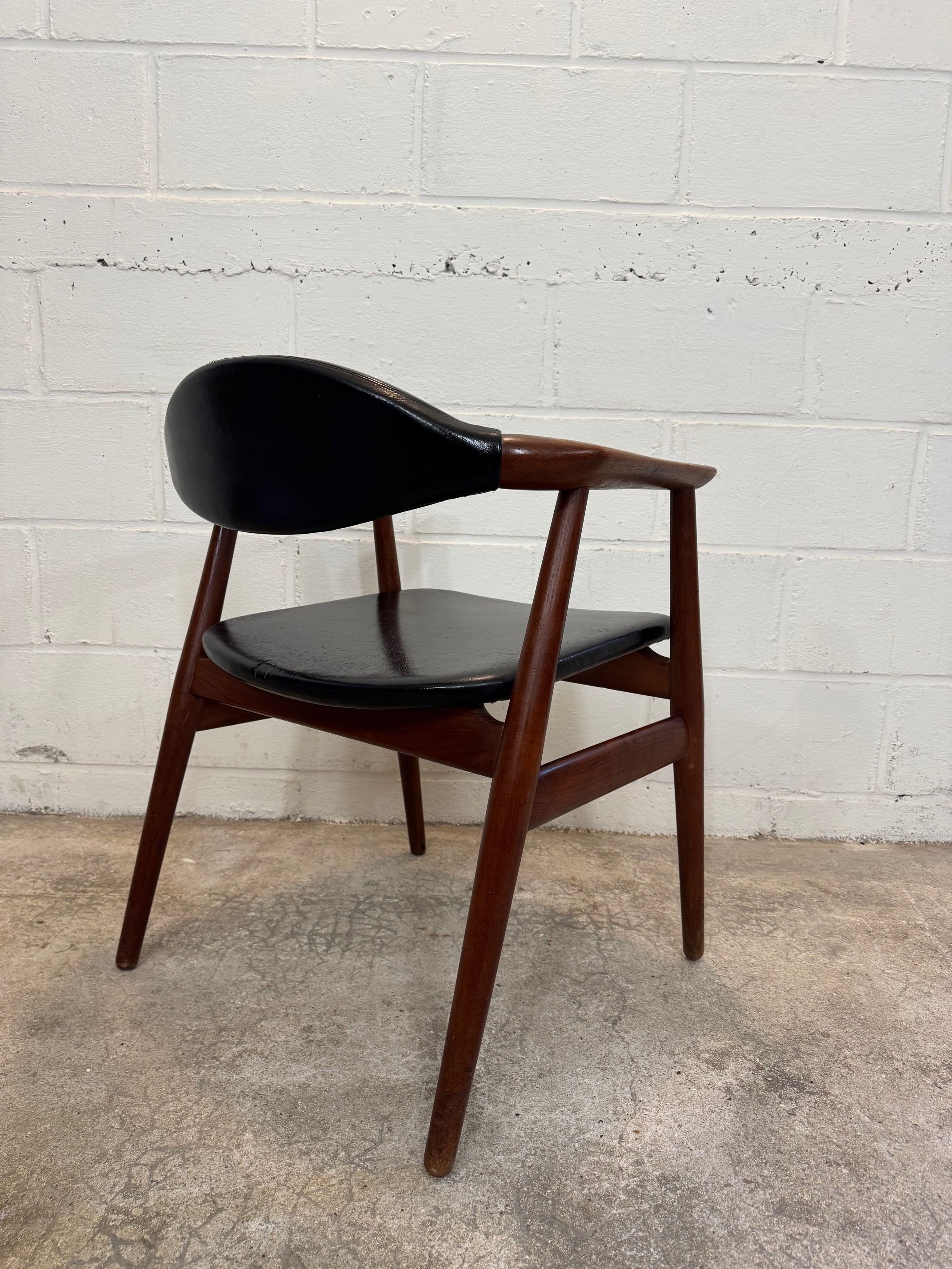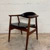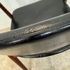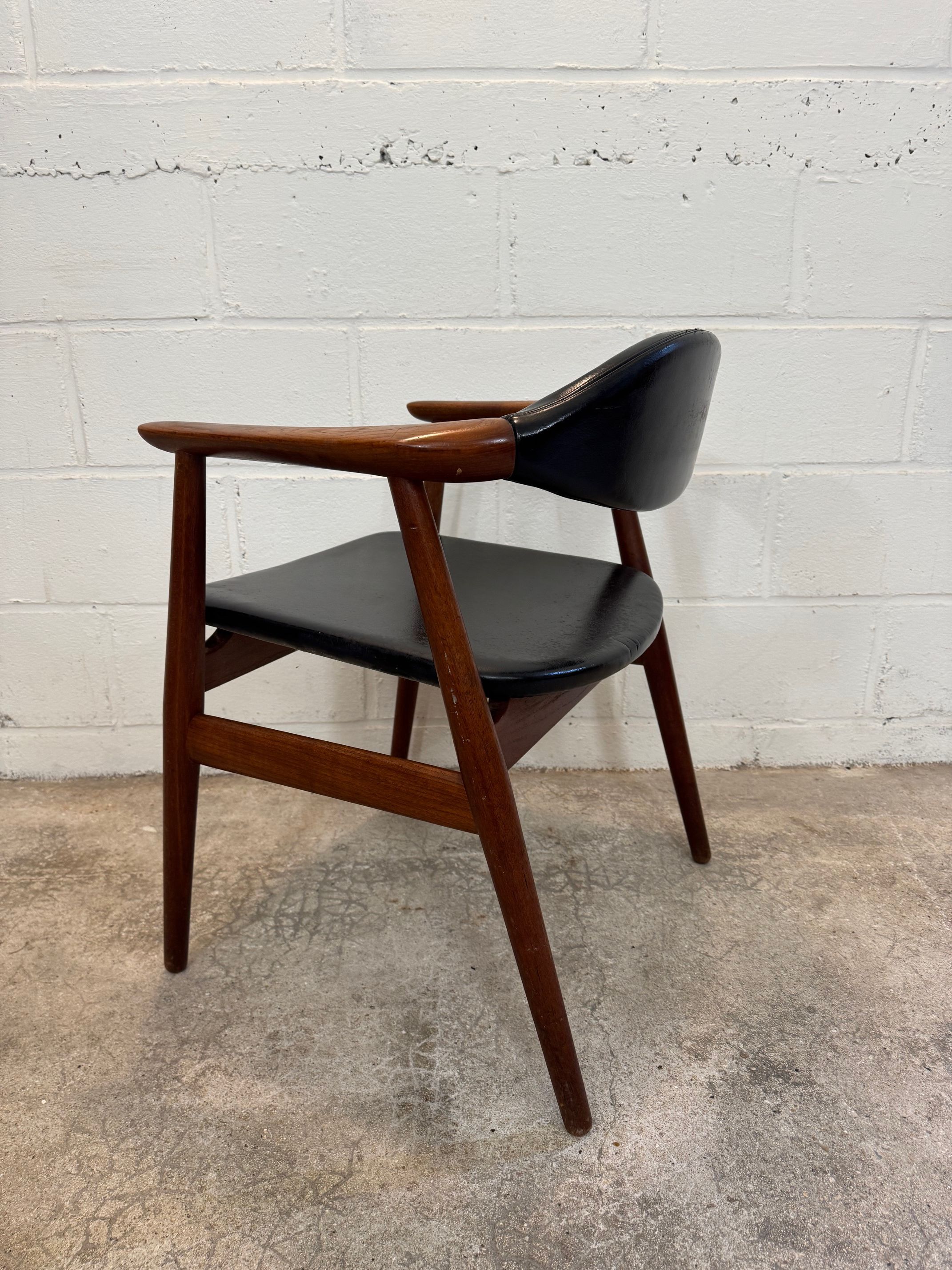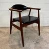 Fauteuil en teck et skaï noir, modèle GM11 de Svend Aage Eriksen pour Glostrup, édité au Danemark dans les années 1960. Une ligne très élégante avec des accoudoirs en flèche.