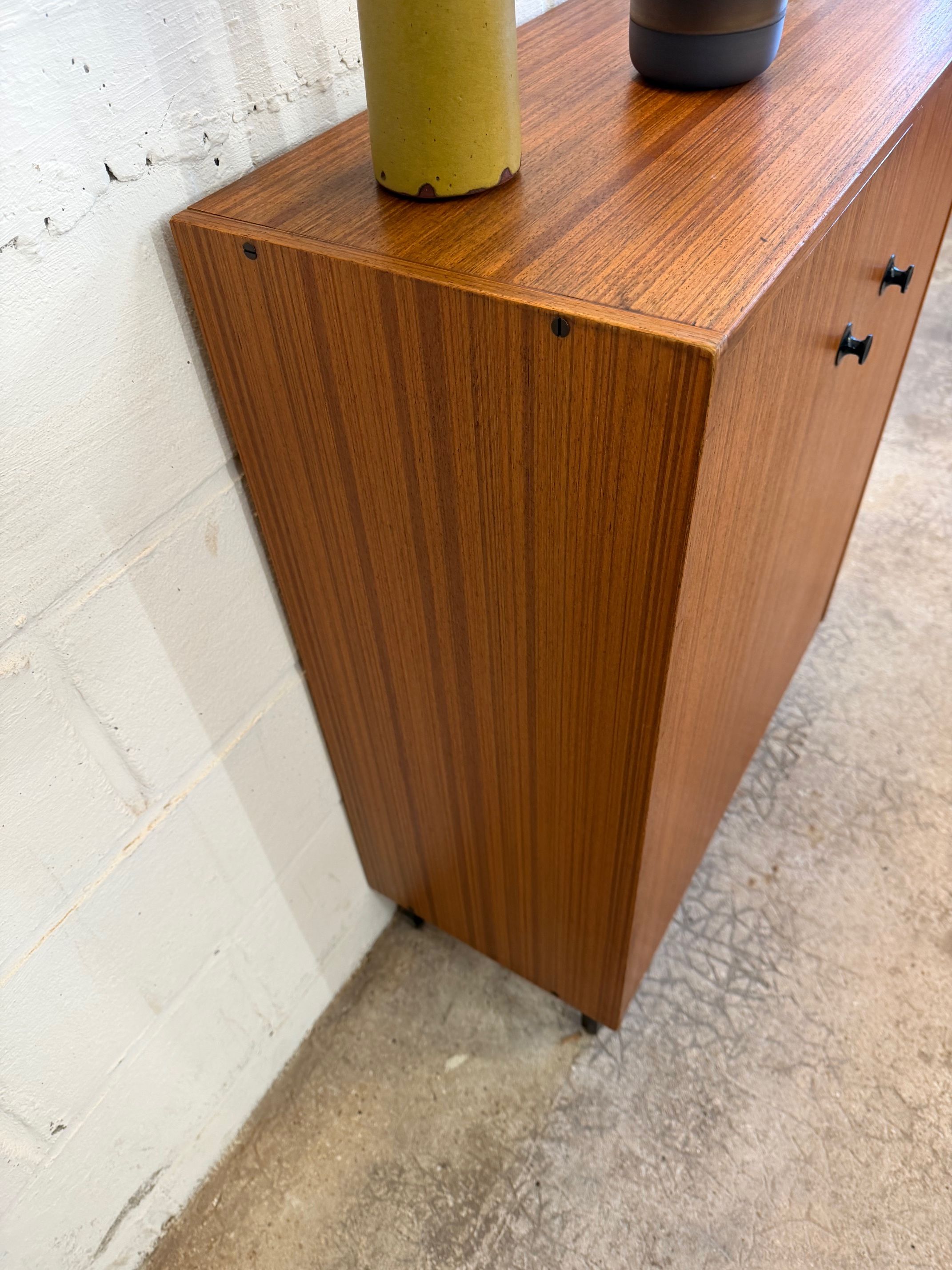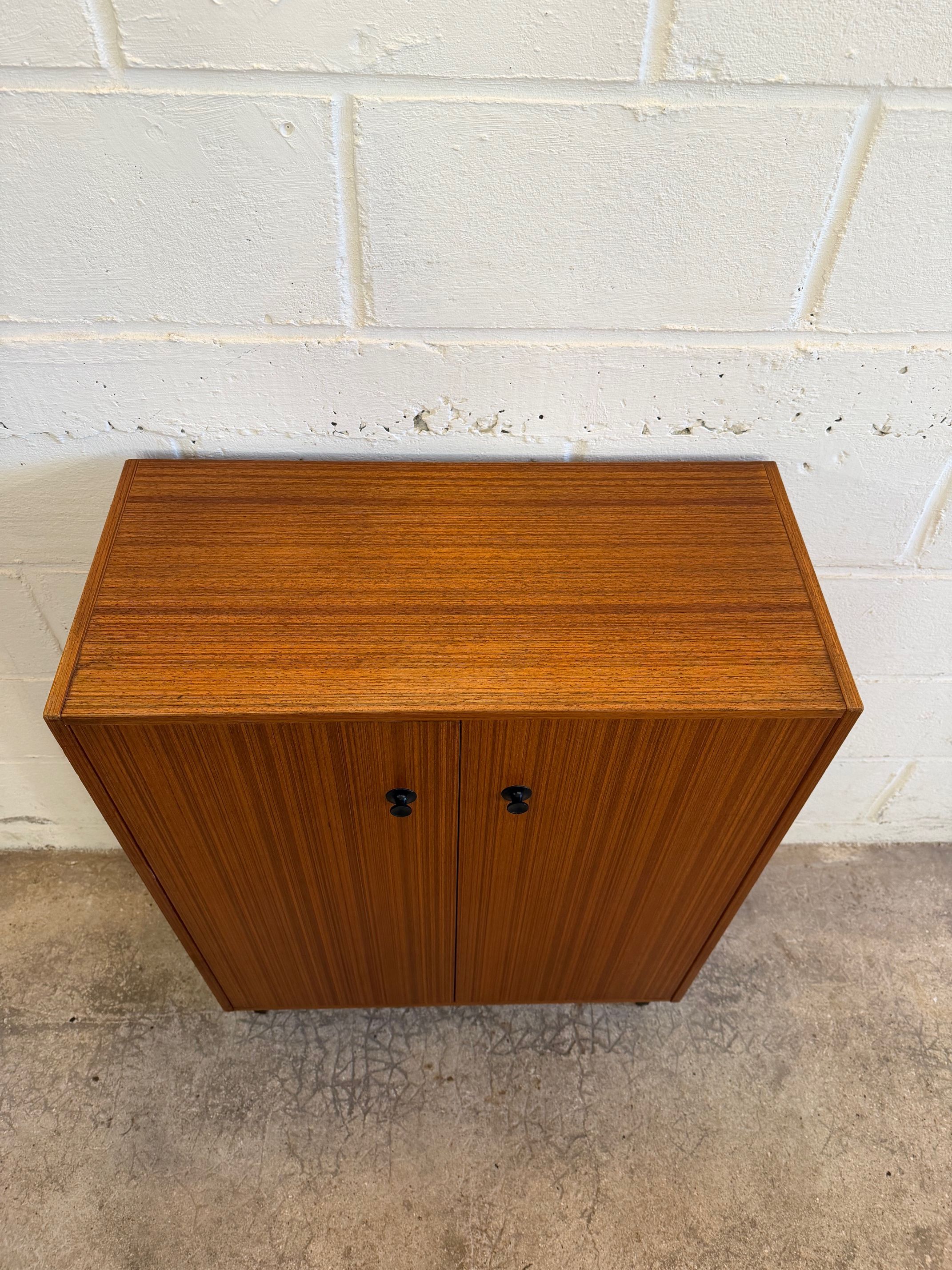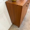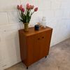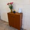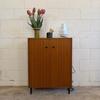Un meuble à chaussures en teck, années 70 en très bon état.