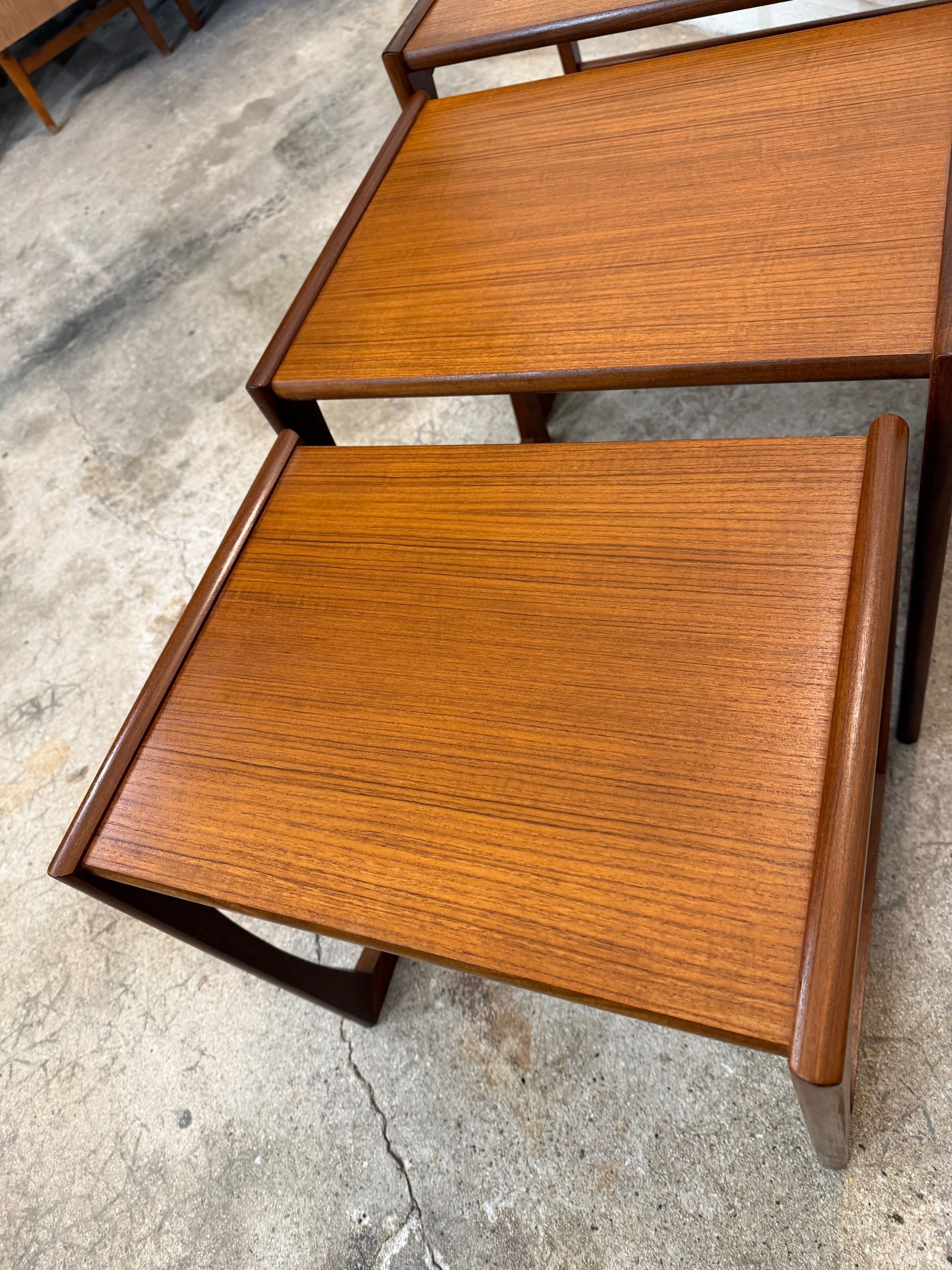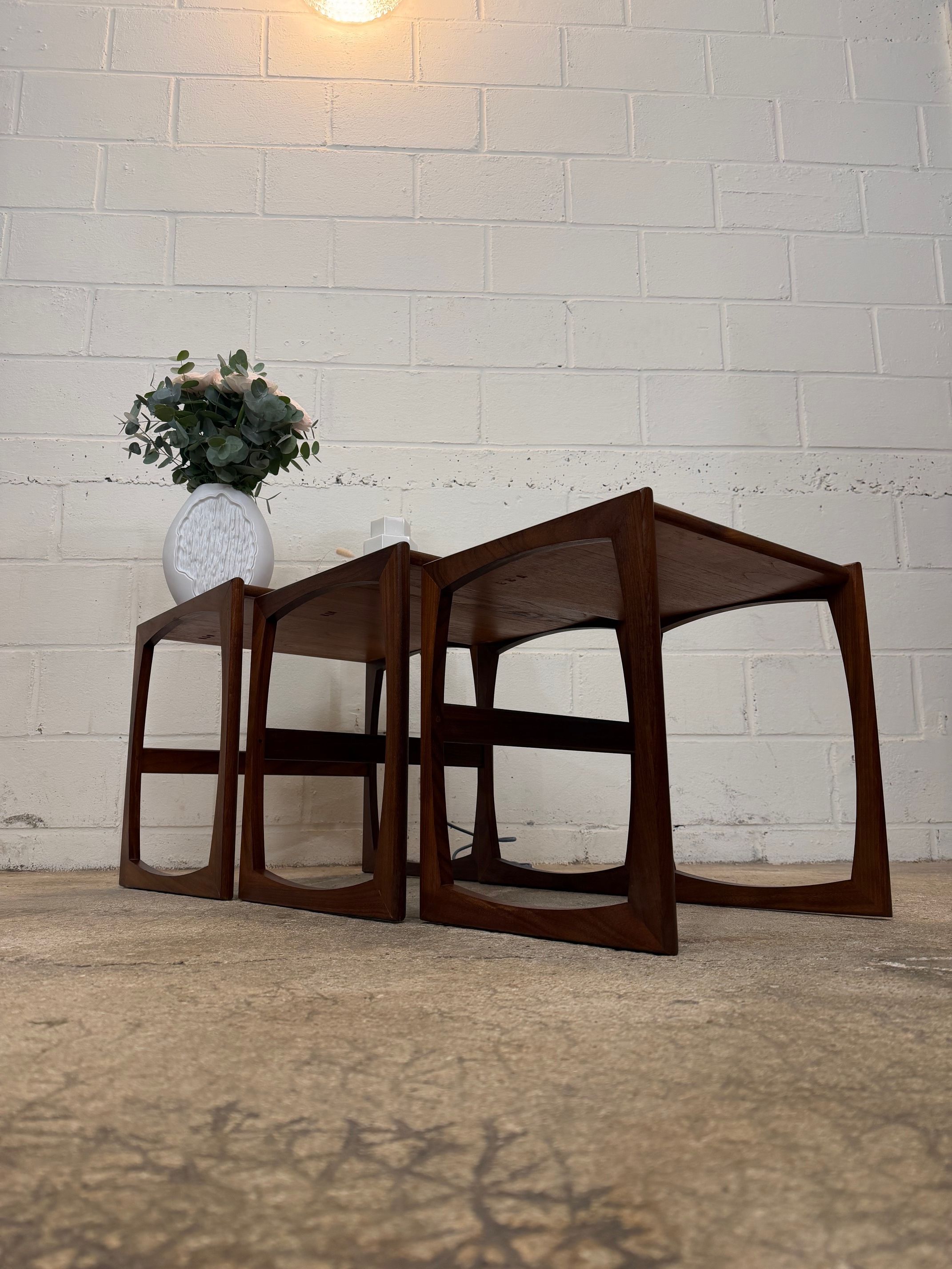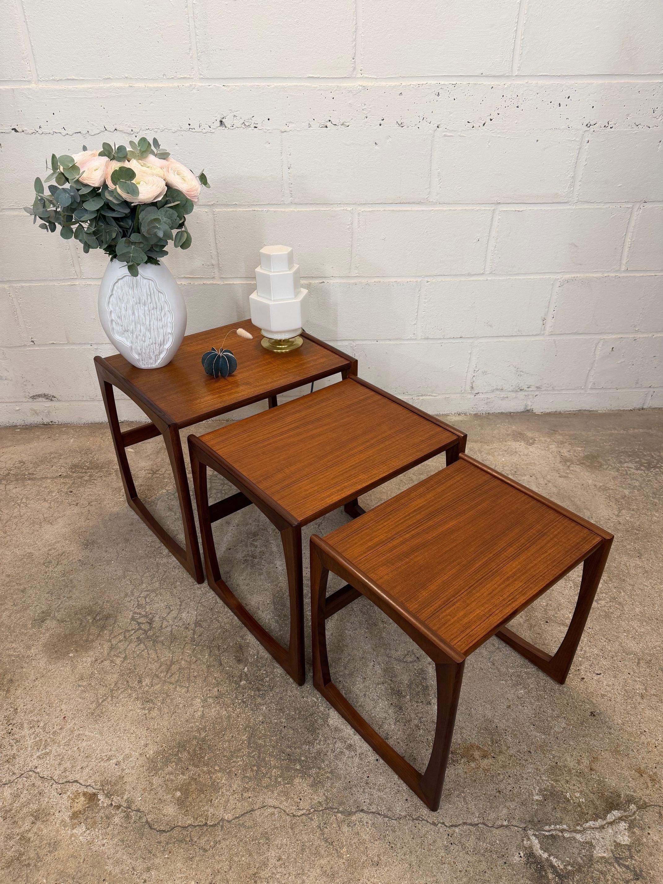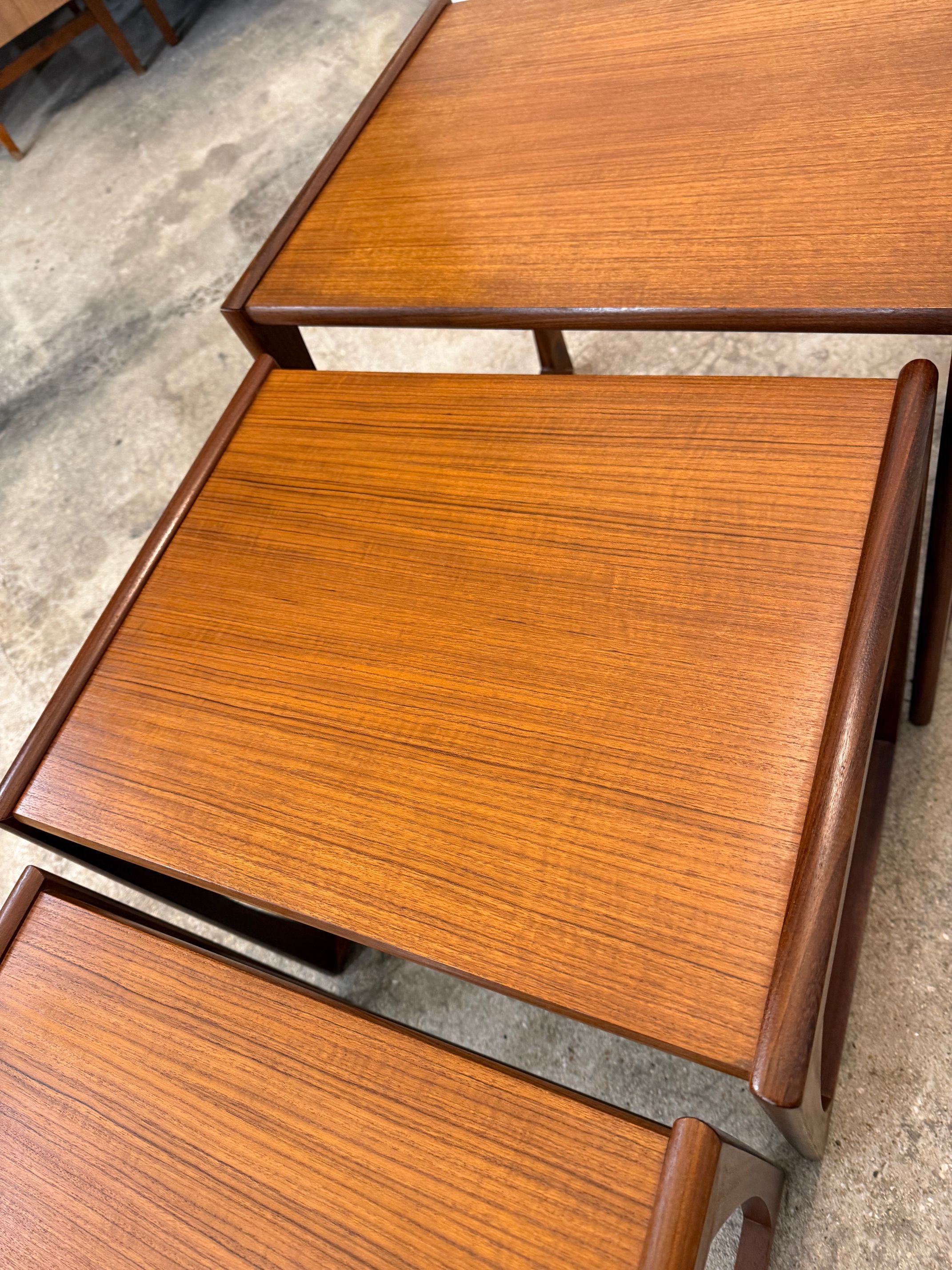 Trio de tables gigognes en teck, modèle Quadrille édité par G-Plan au Royaume-Uni dans les années 60.