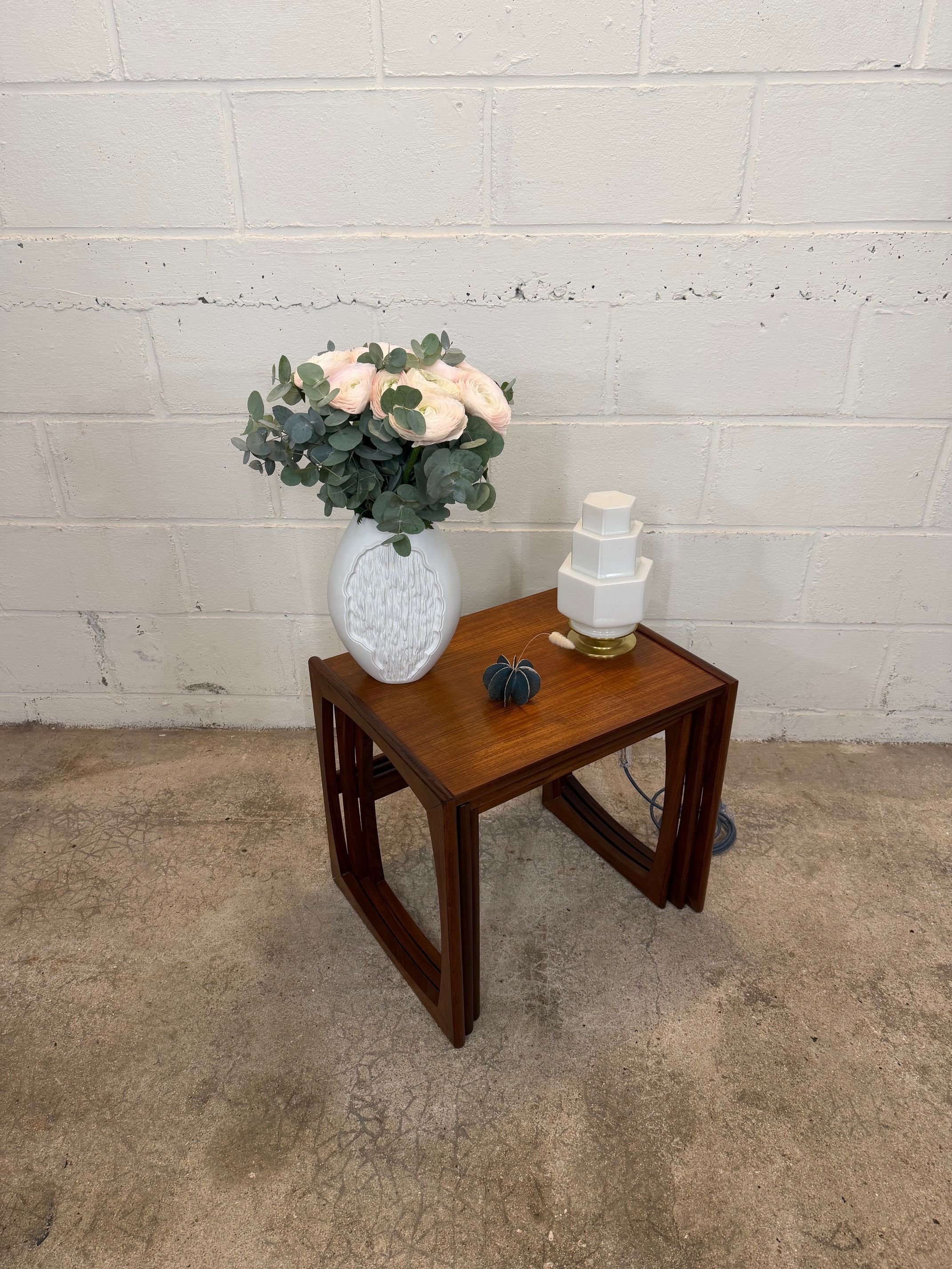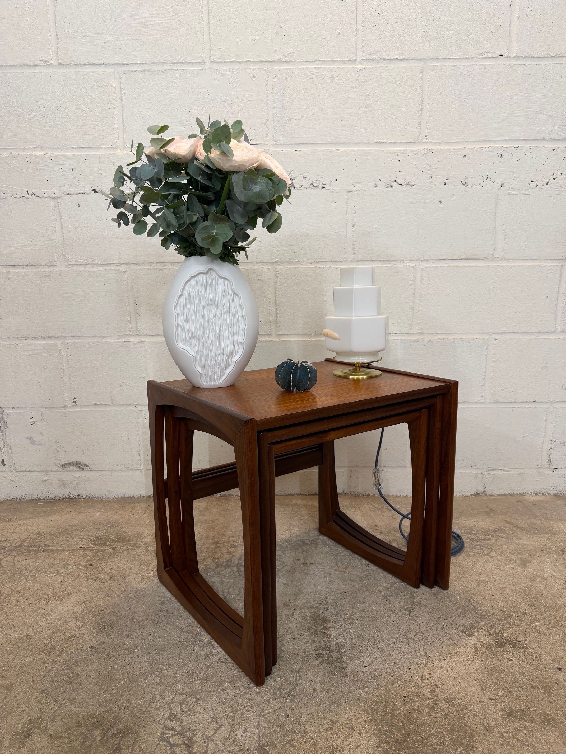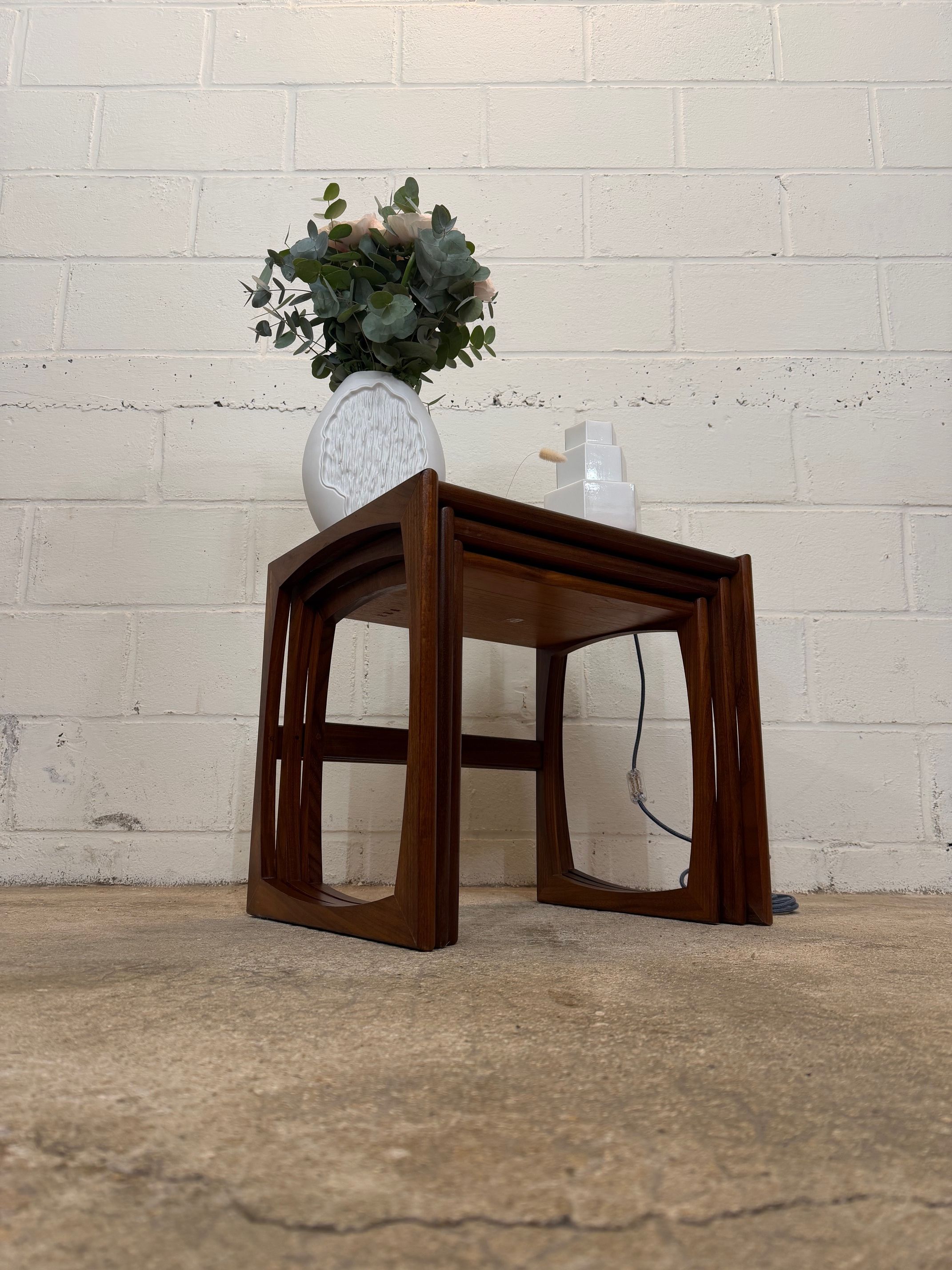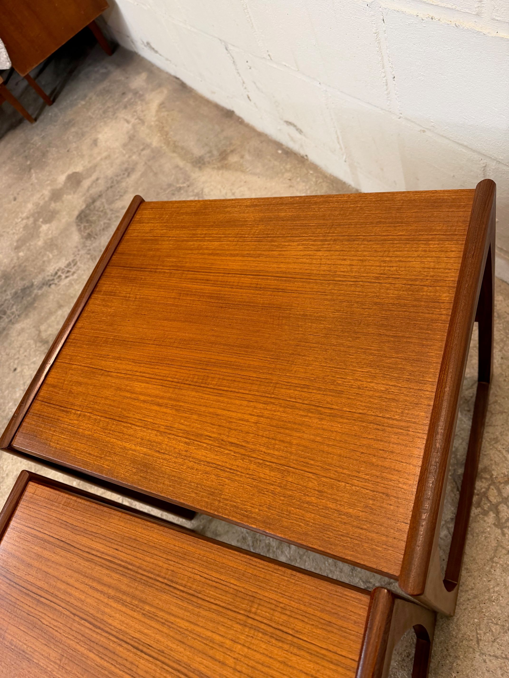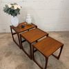 Trio de tables gigognes en teck, modèle Quadrille édité par G-Plan au Royaume-Uni dans les années 60.