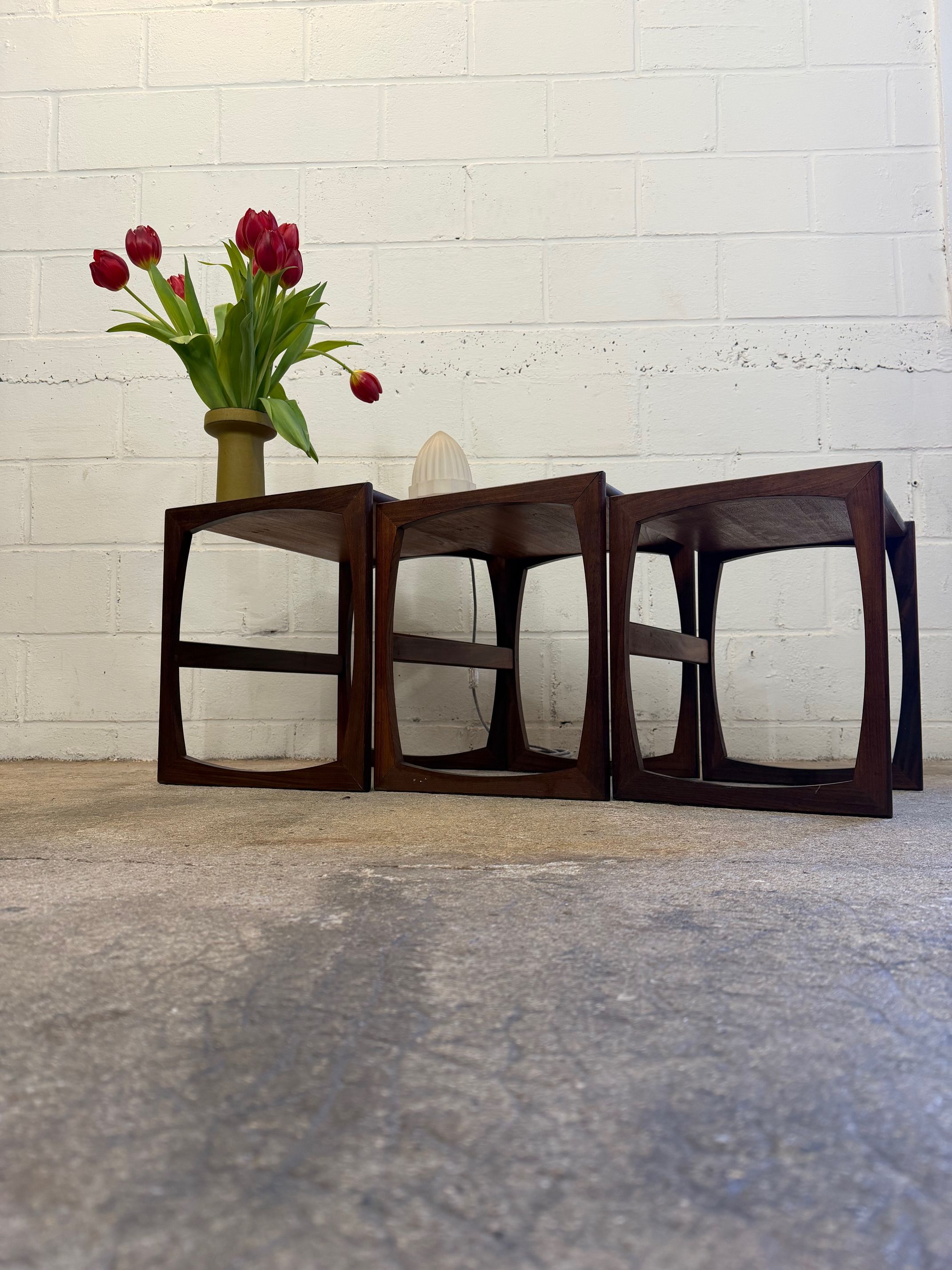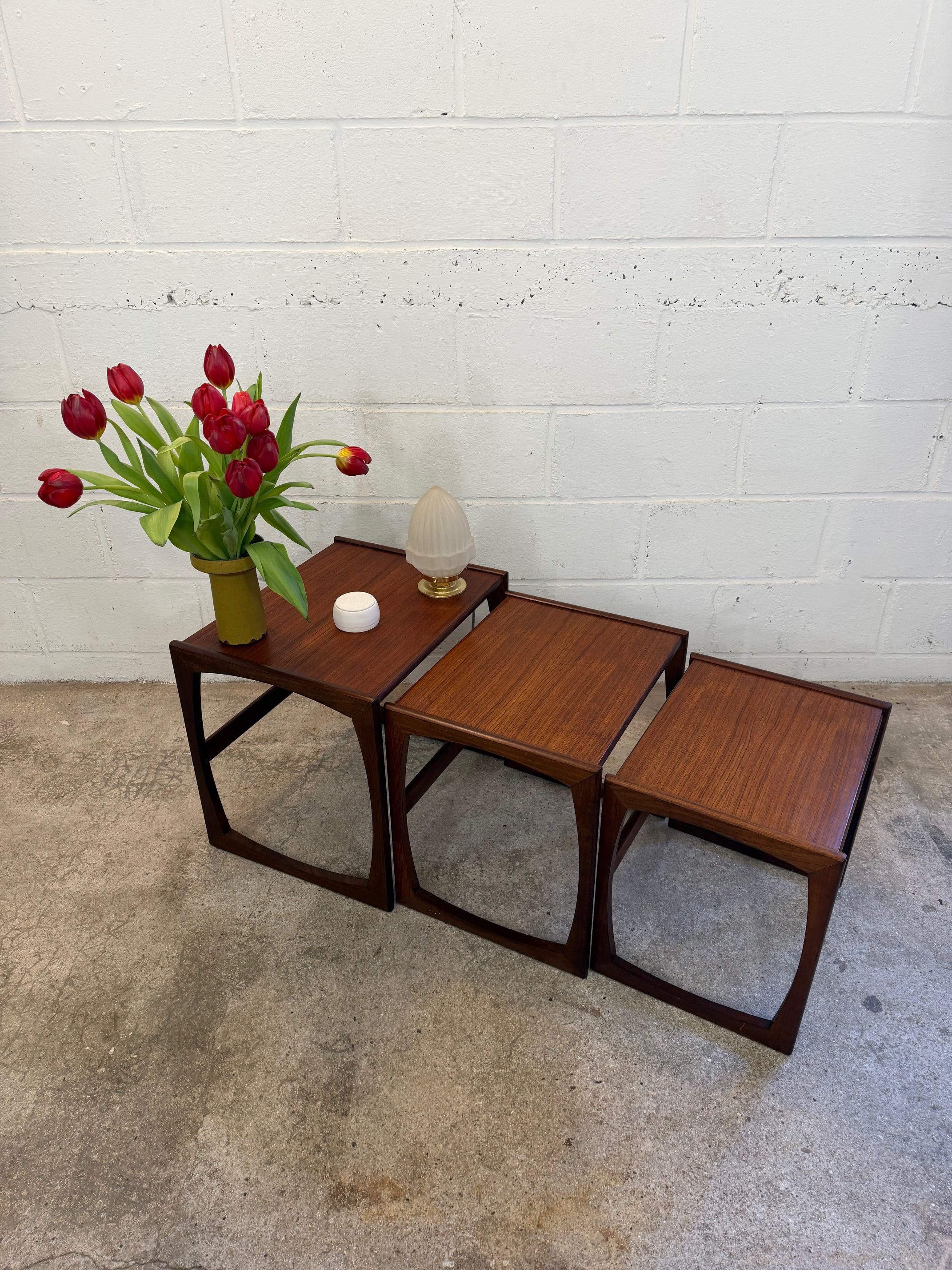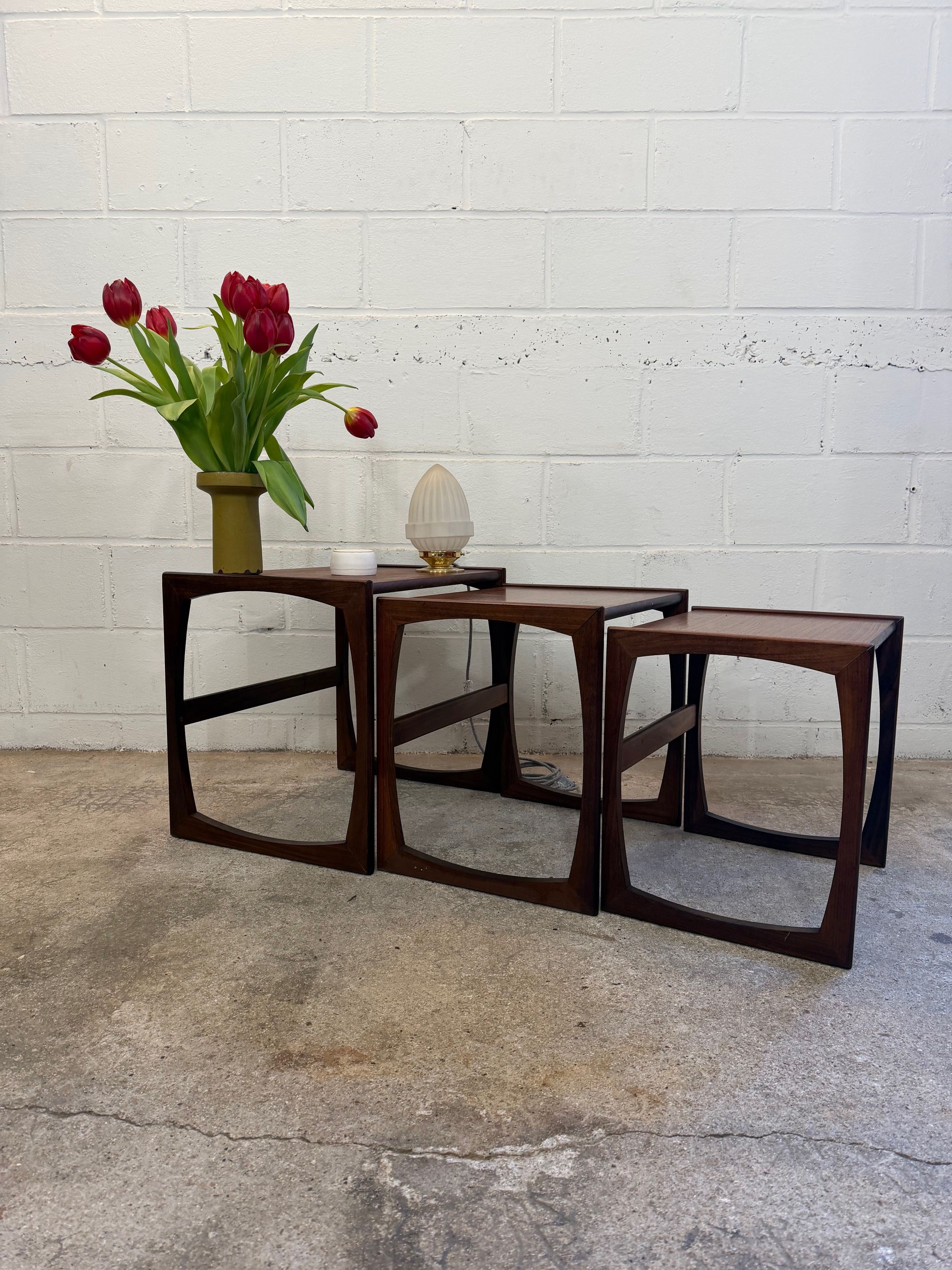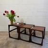 Trois tables gigognes en teck, modèle Quadrille de chez G-Plan dans les années 60 au Royaume-Uni.