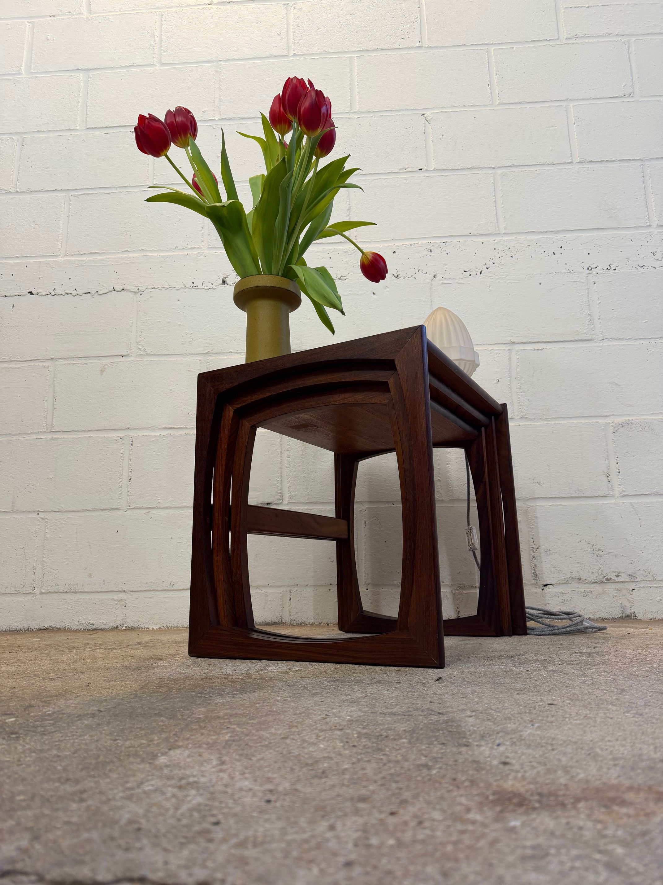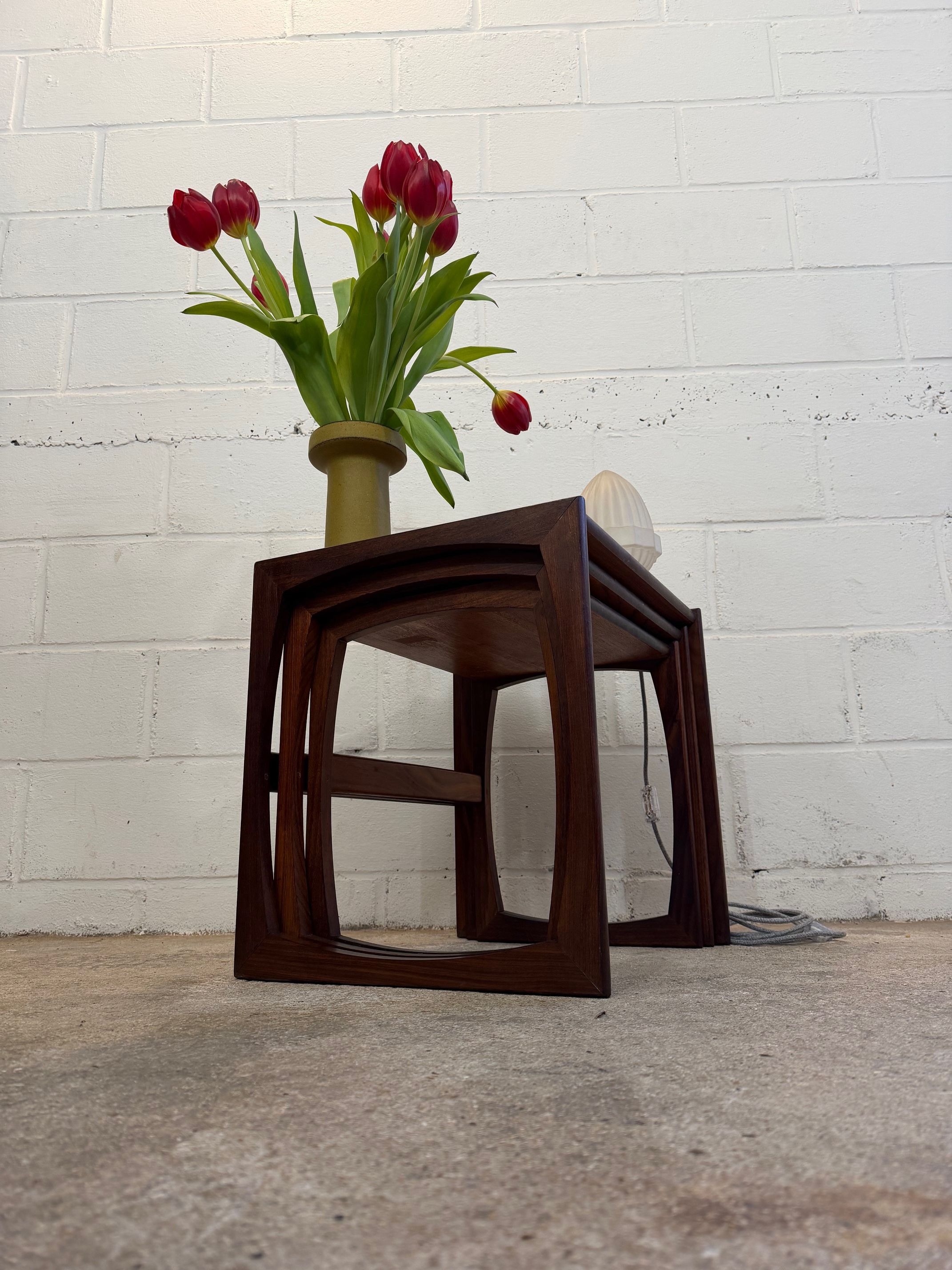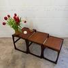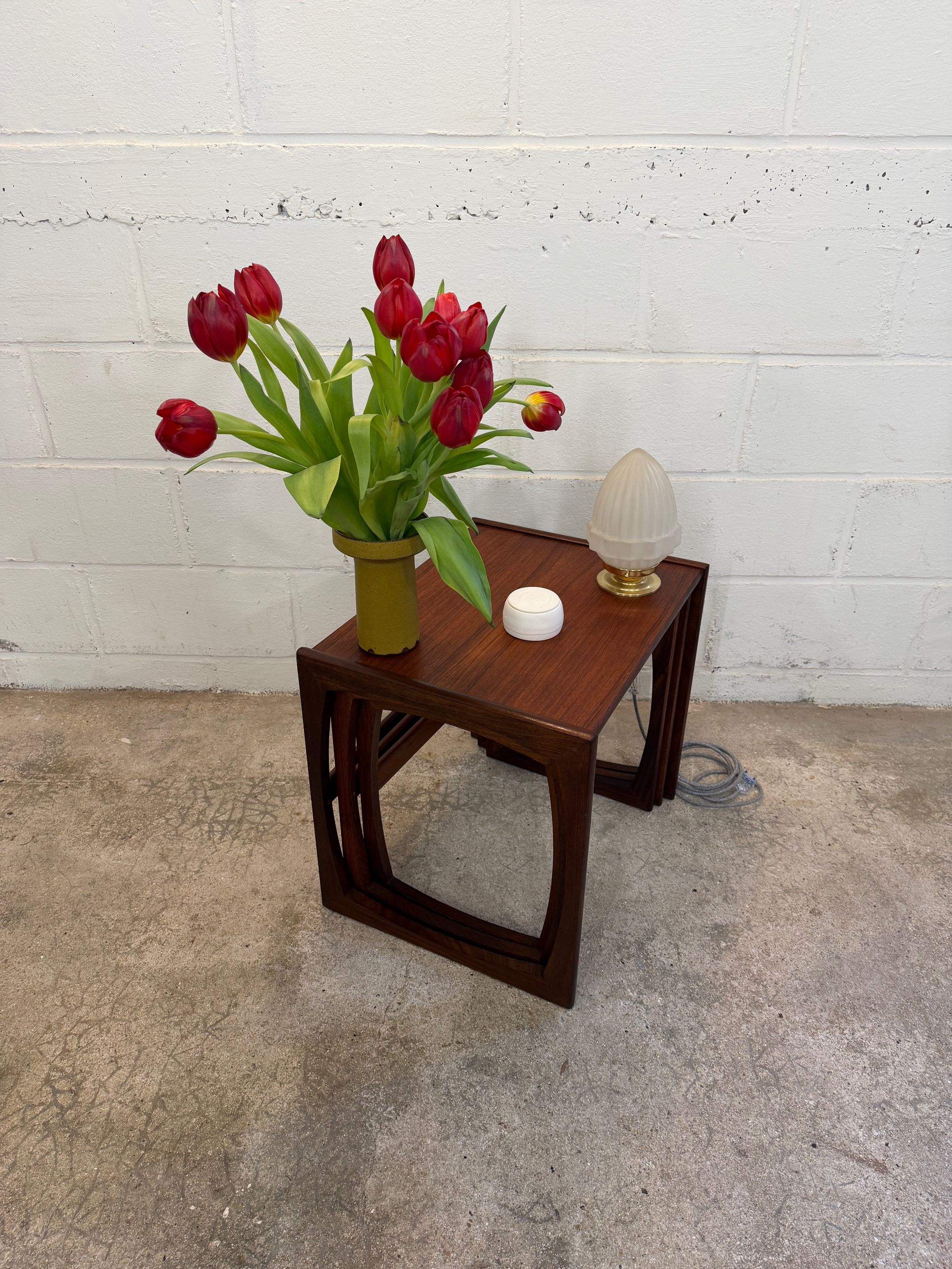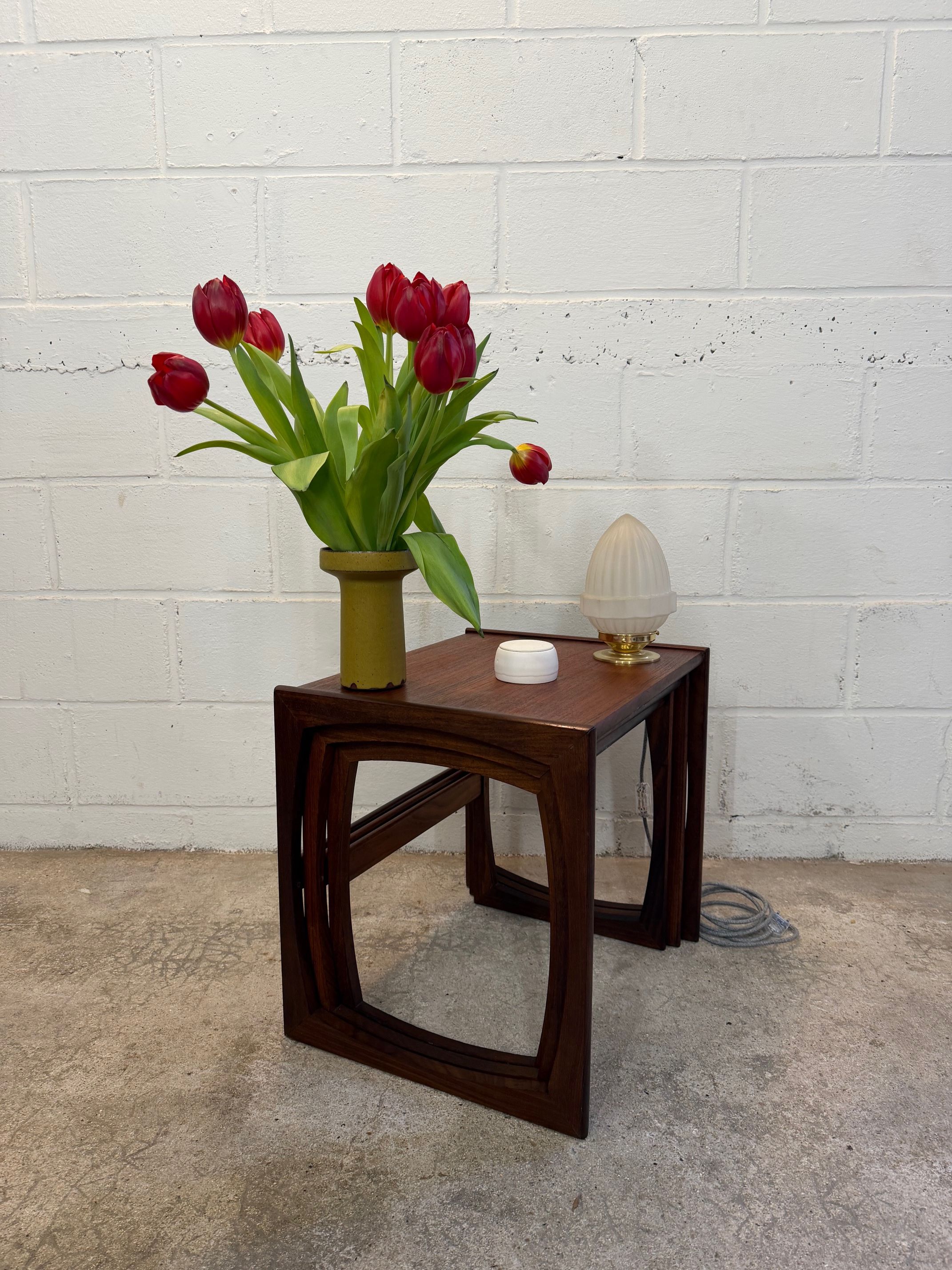 Trois tables gigognes en teck, modèle Quadrille de chez G-Plan dans les années 60 au Royaume-Uni.